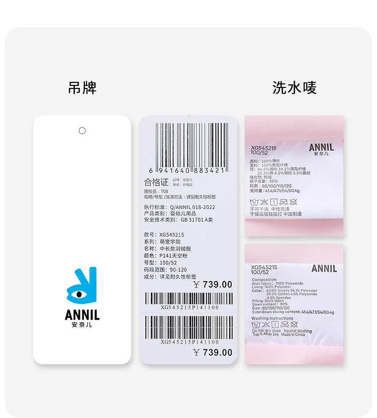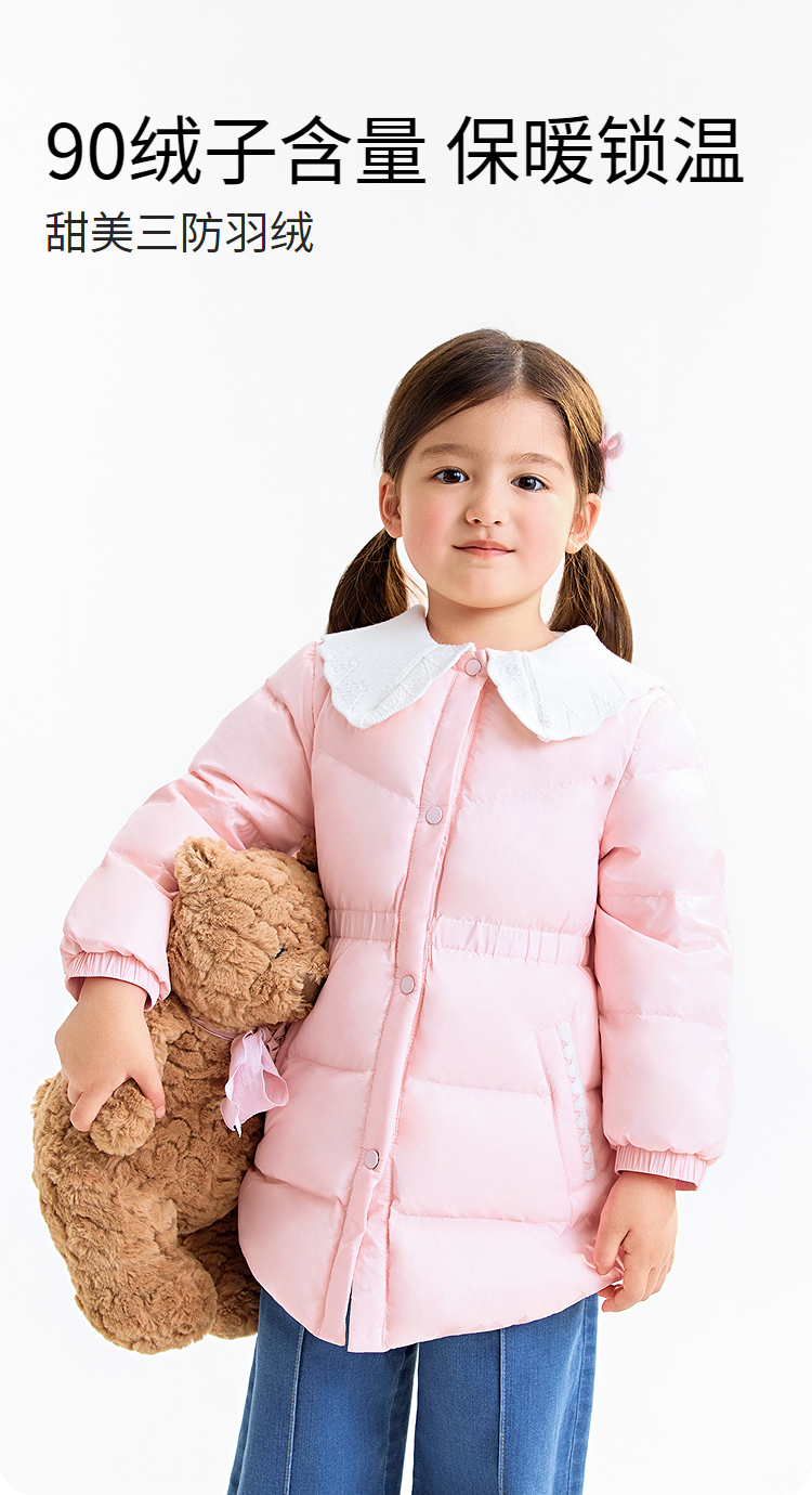 【实体店同款】女童中长款羽绒服冬季新款安奈儿童装XG545215