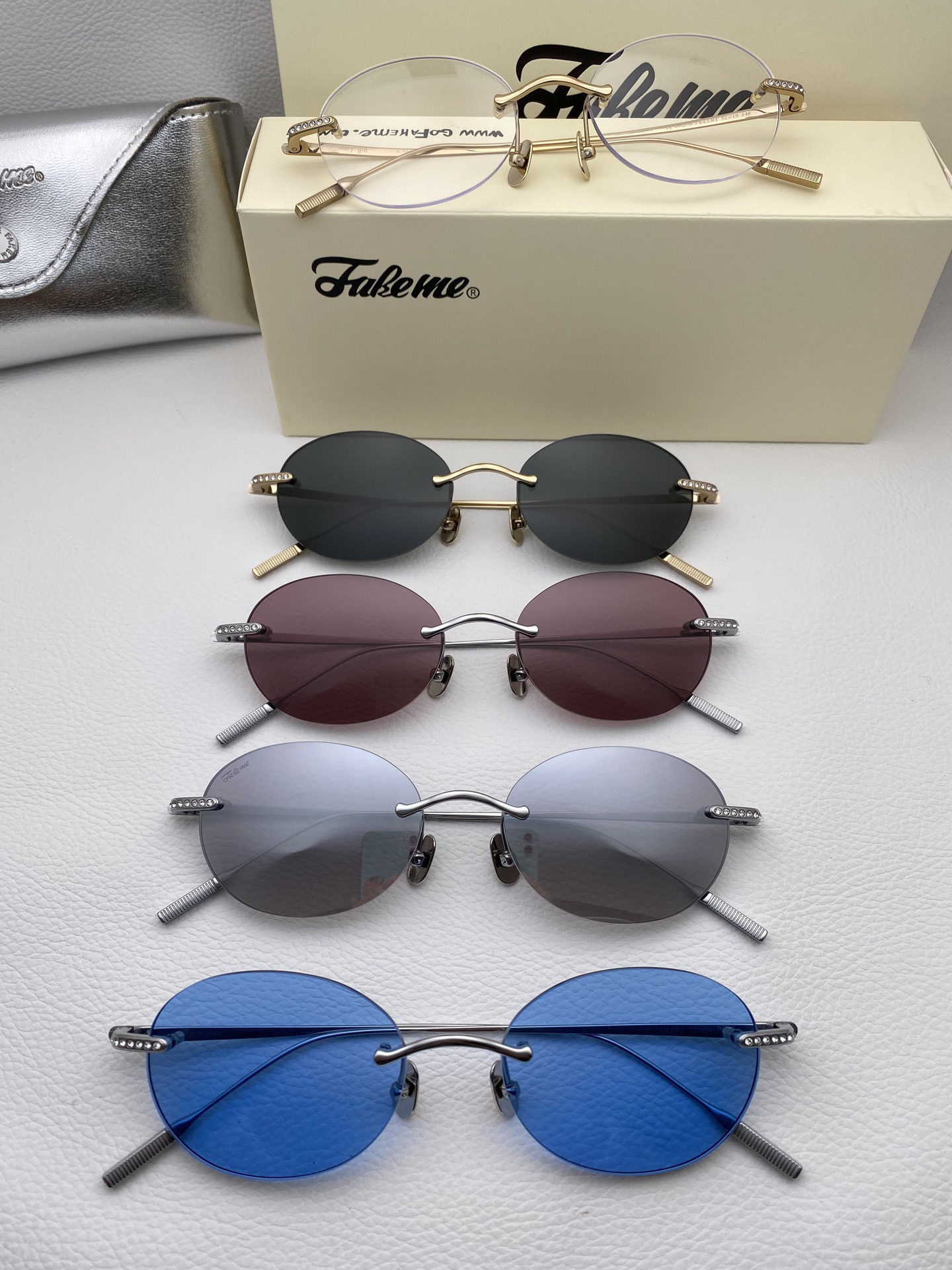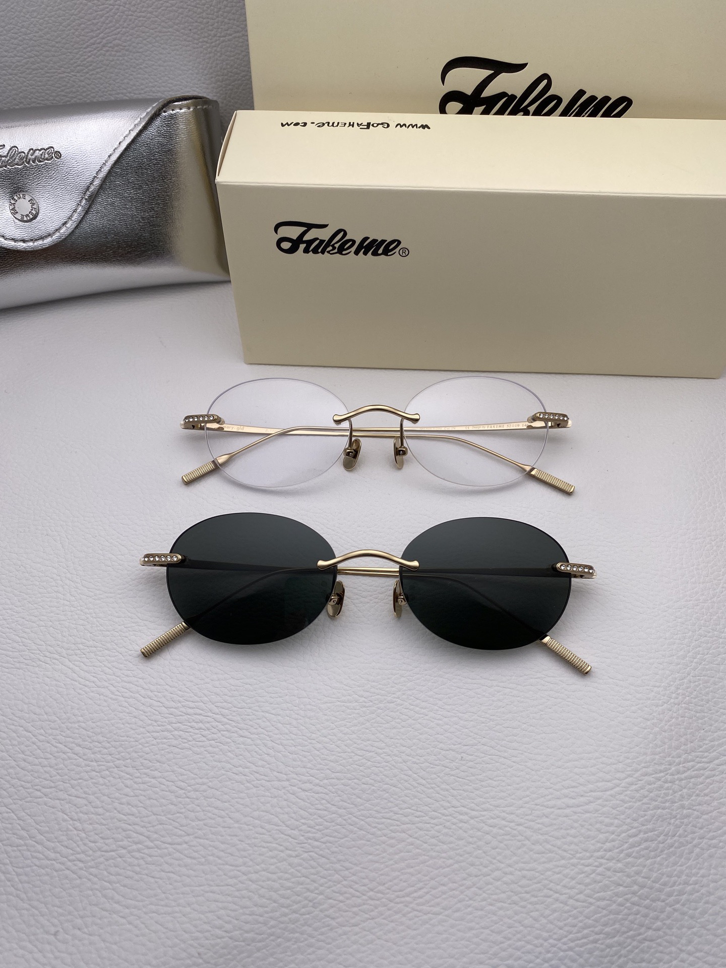 FAKEME,mary.bsv,尺码:52口19-146 钻石镜腿 高品质超轻纯钛无框复古圆形时尚太阳镜 光学眼镜架同步