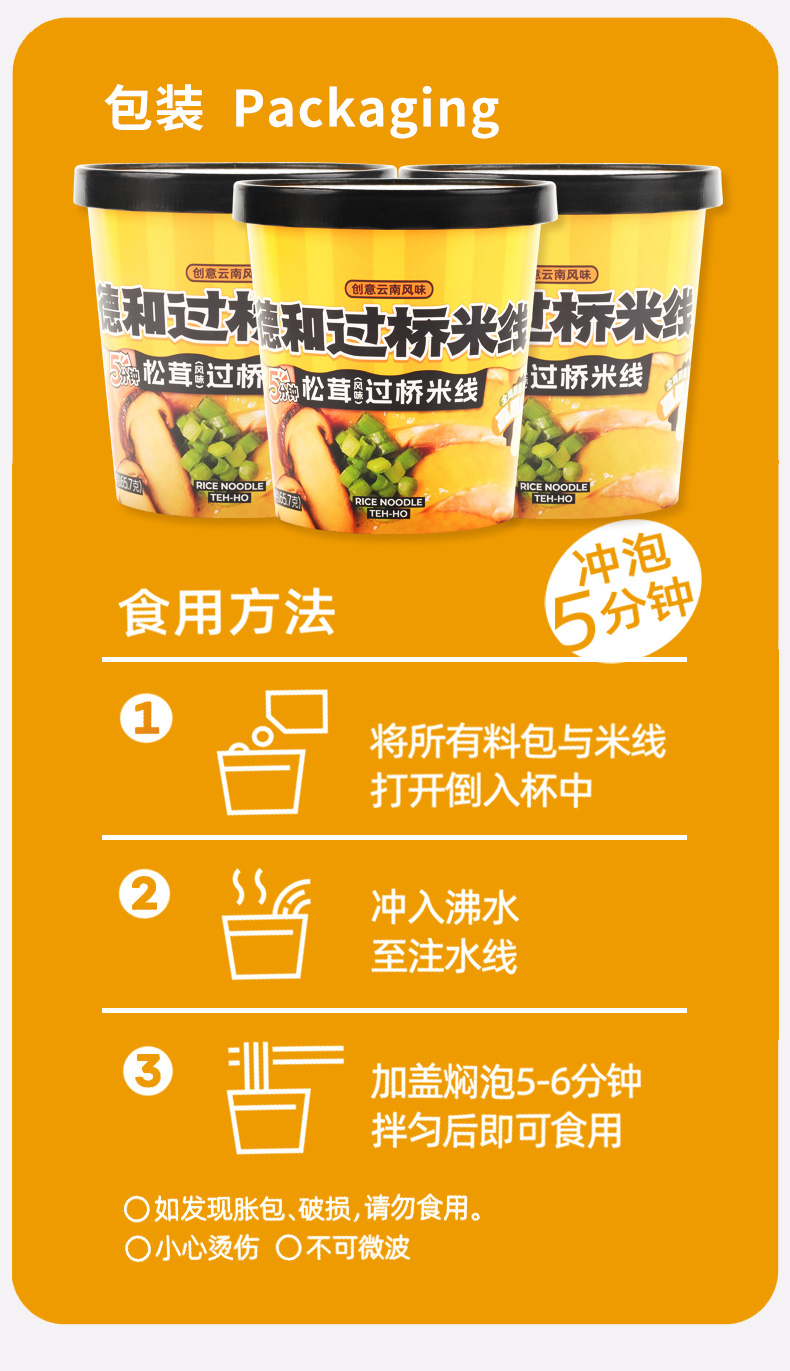 【超值囤货装】 德和桶装云南过桥米线6桶香辣小锅/松茸/野山椒泡椒/山花椒 #米线