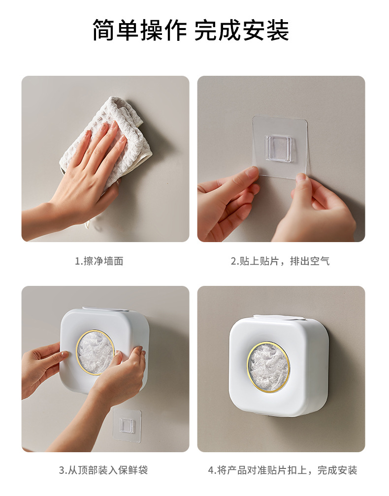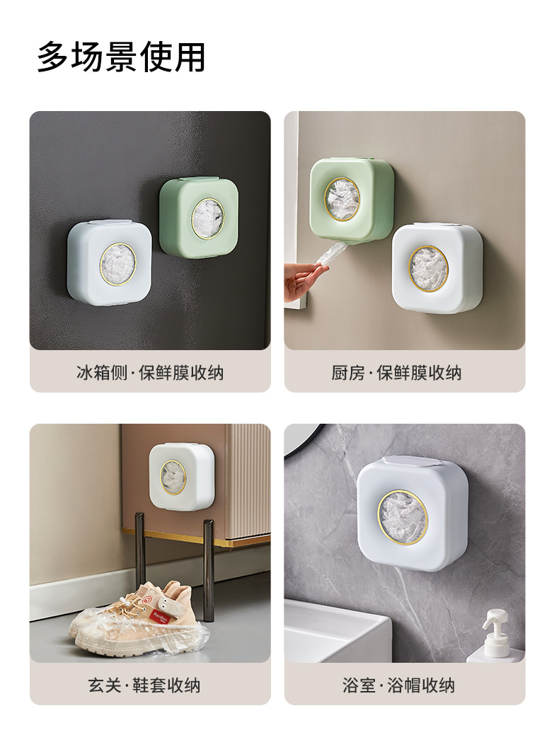 壁挂保鲜膜套收纳盒厨房免打孔抽取式储物盒浴室浴帽收纳盒鞋套盒-M仓