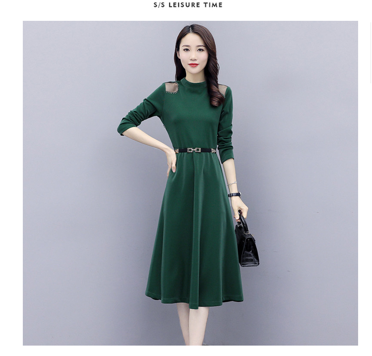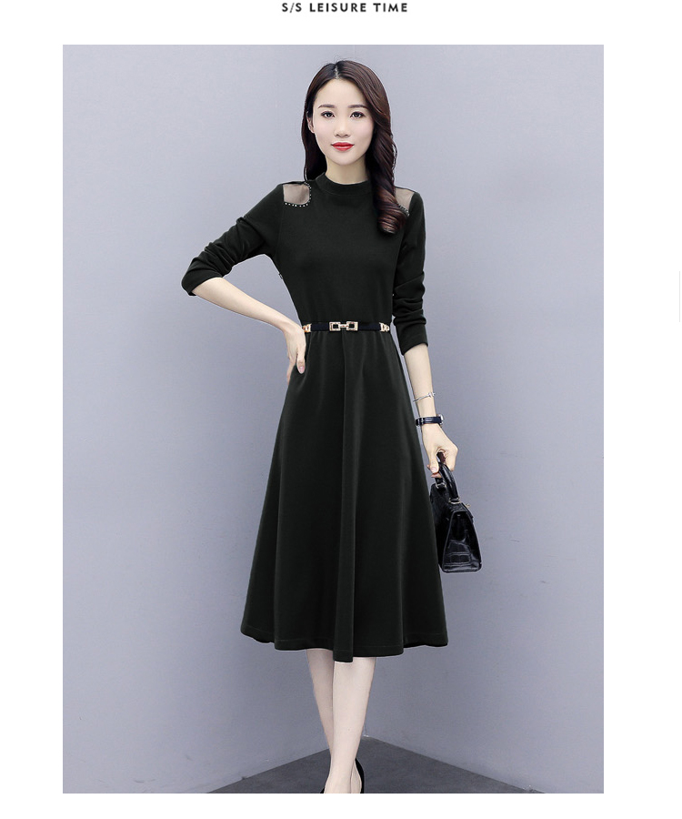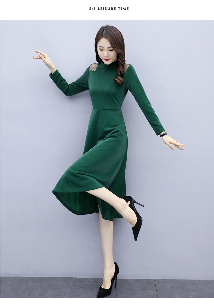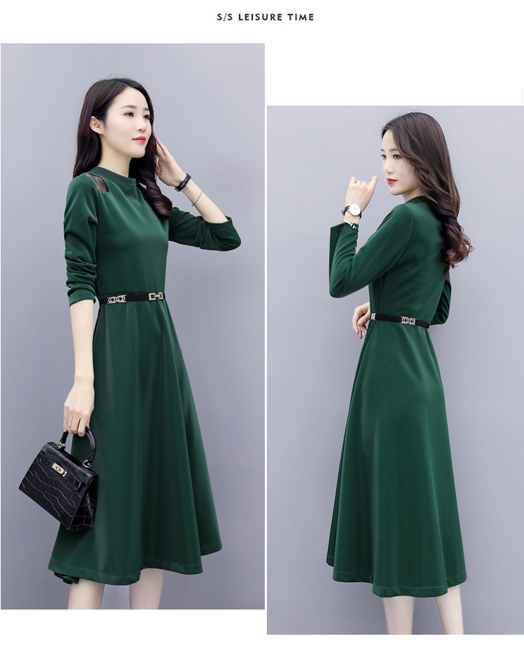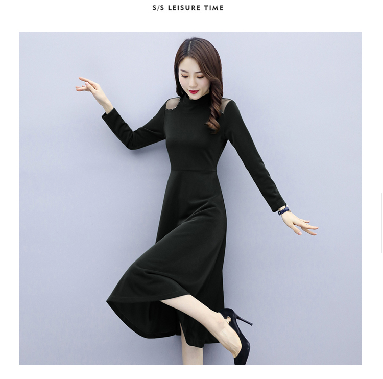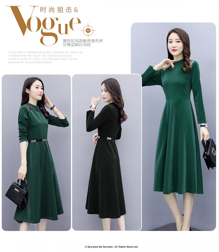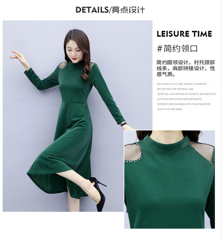 WZNH-LY2006大摆型2020年秋季长袖长裙拉链拼接时尚连衣裙