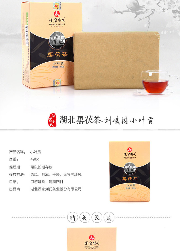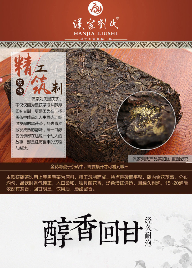 汉家刘氏 正宗黑茶 小叶贡 五年陈放 金花黑茶 茯砖茶 湖北砖茶 490g