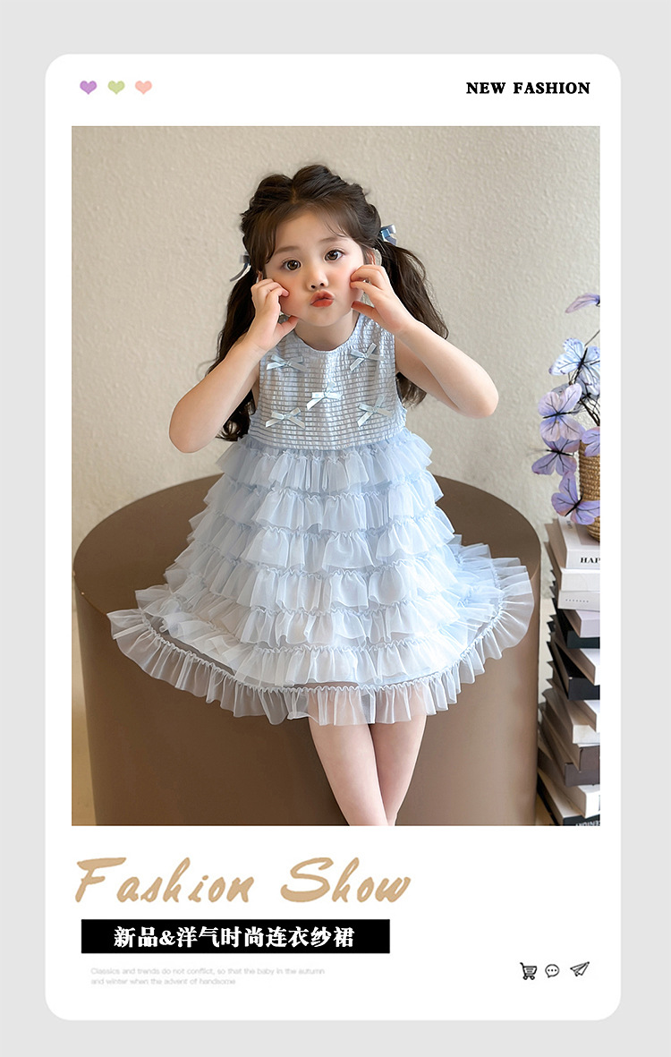 【夏季新品!洋气时尚连衣纱裙】女童蝴蝶结连衣纱裙 夏季新款时尚小女孩 洋气公主裙 中小童裙子-QQ