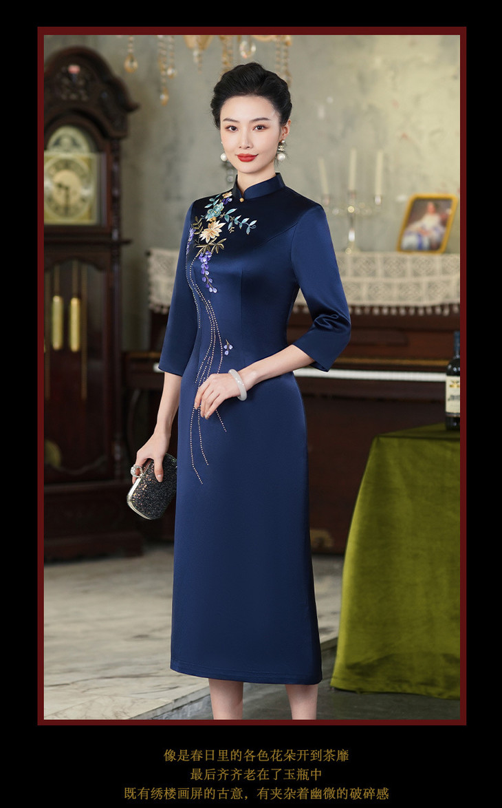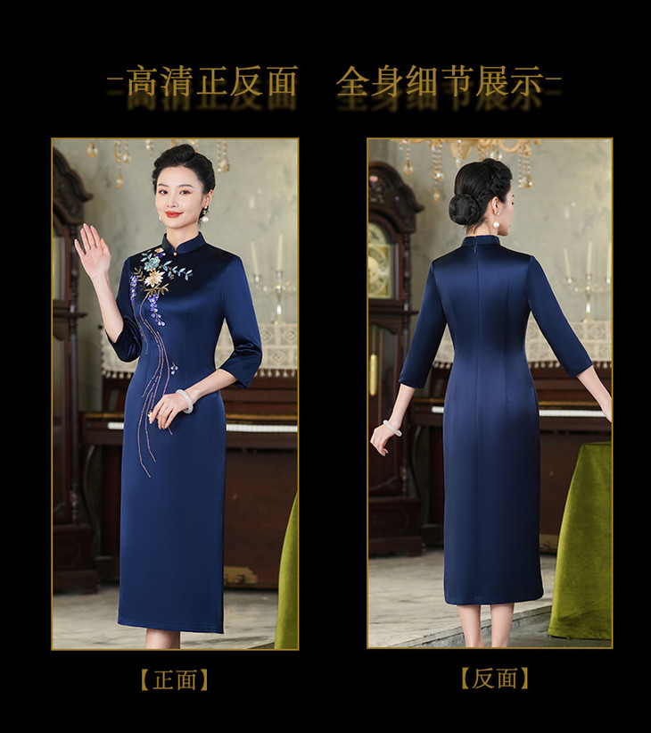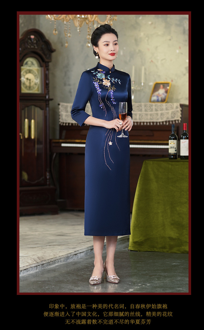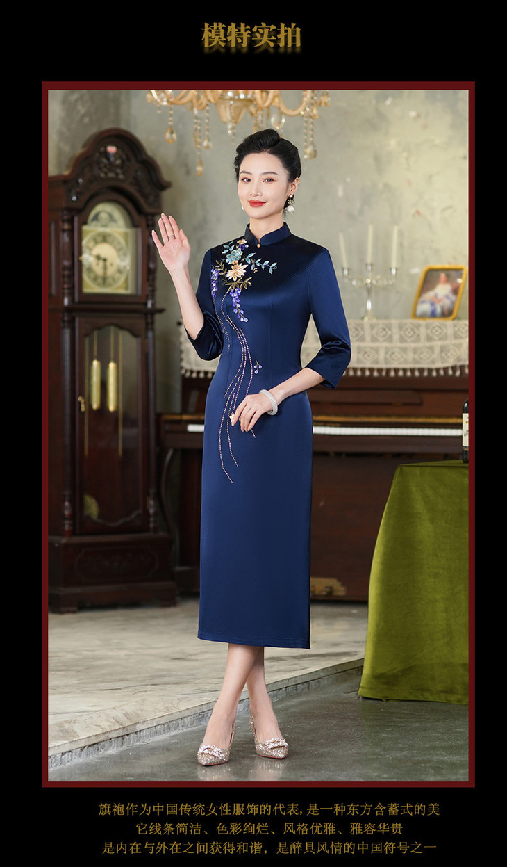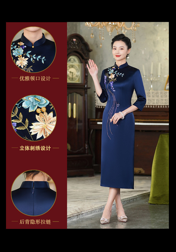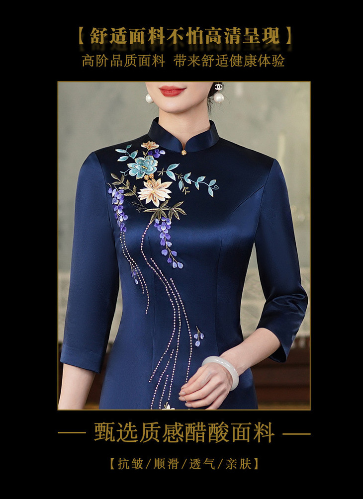 上海旗袍厂【9949】高贵喜婆婆婚宴装礼服气质年轻妈妈喜服醋酸旗袍平时可穿