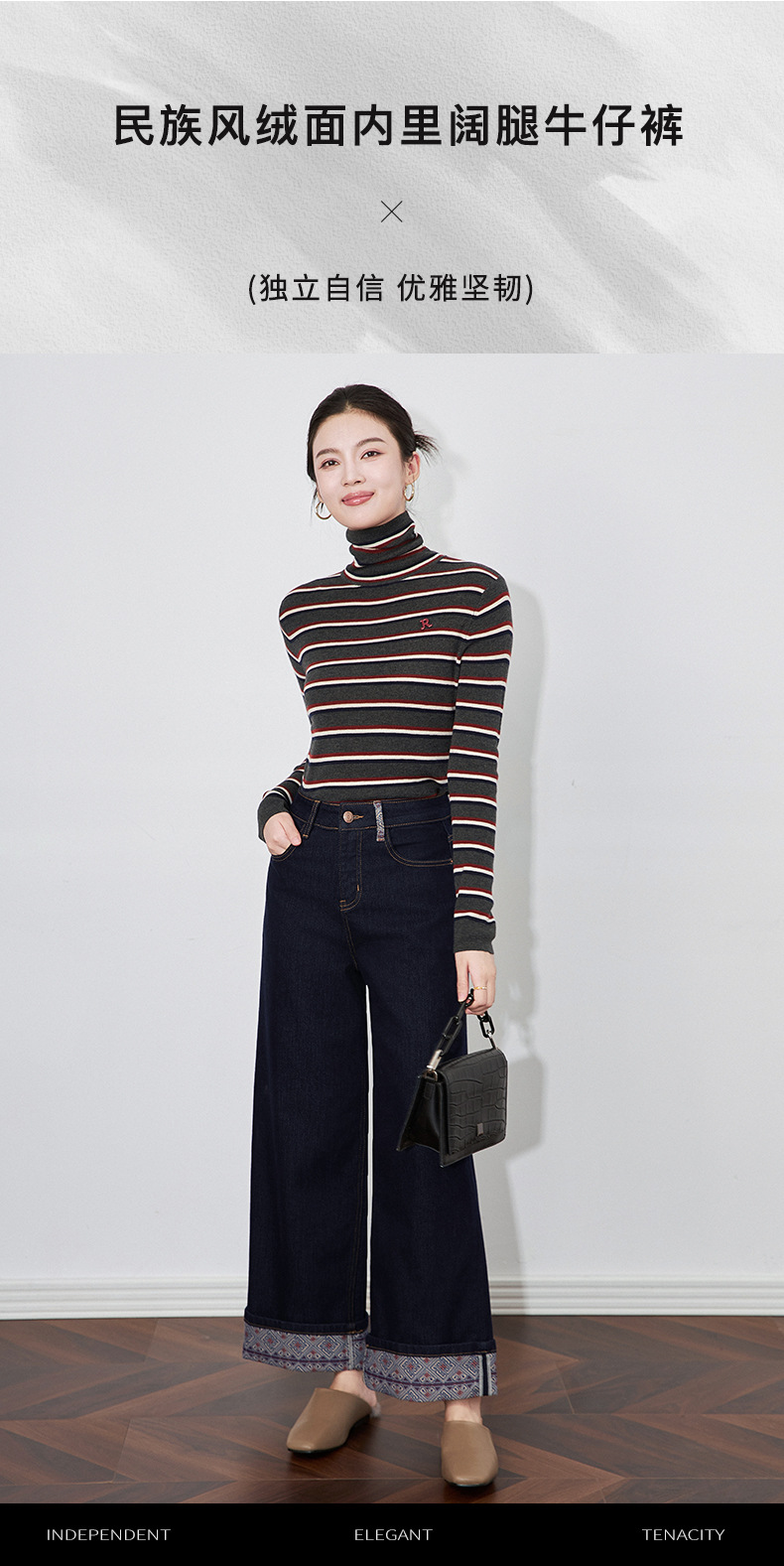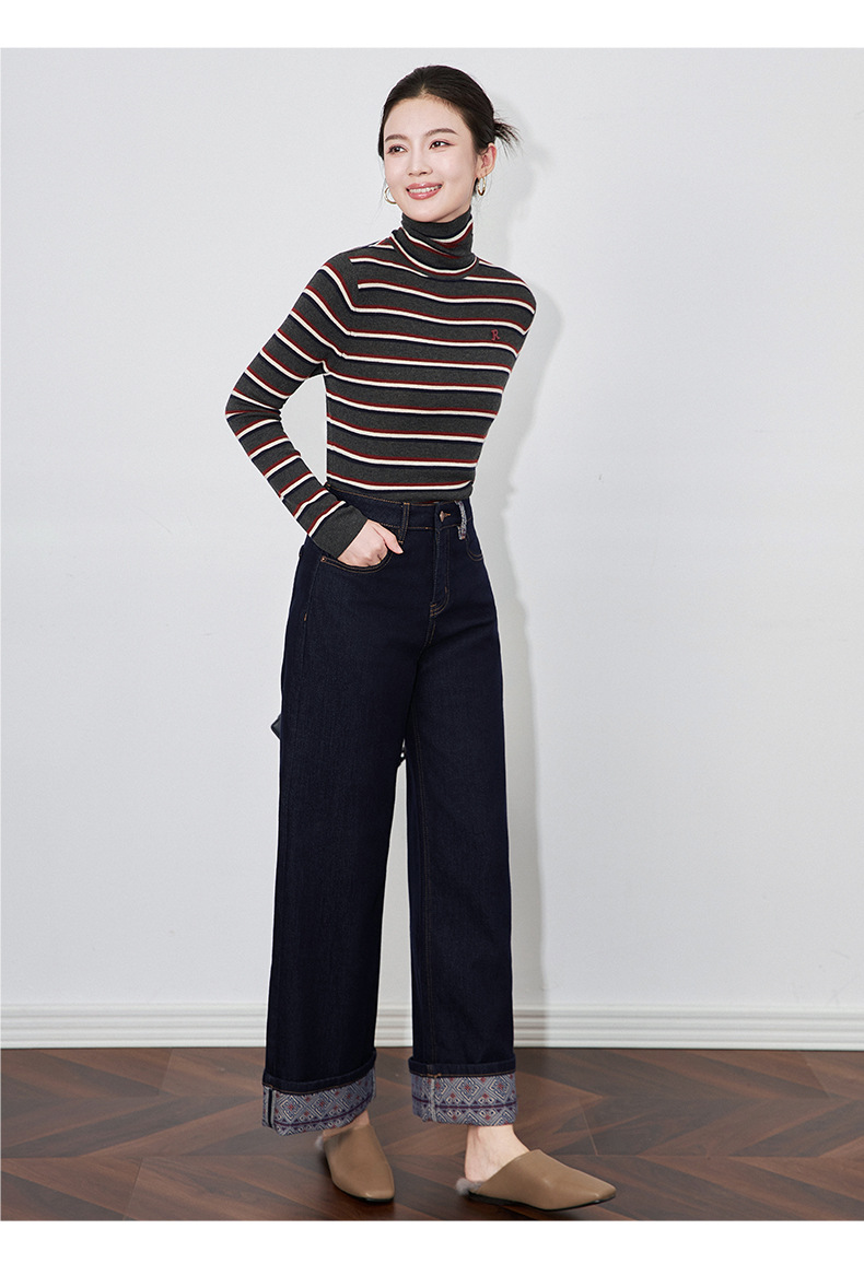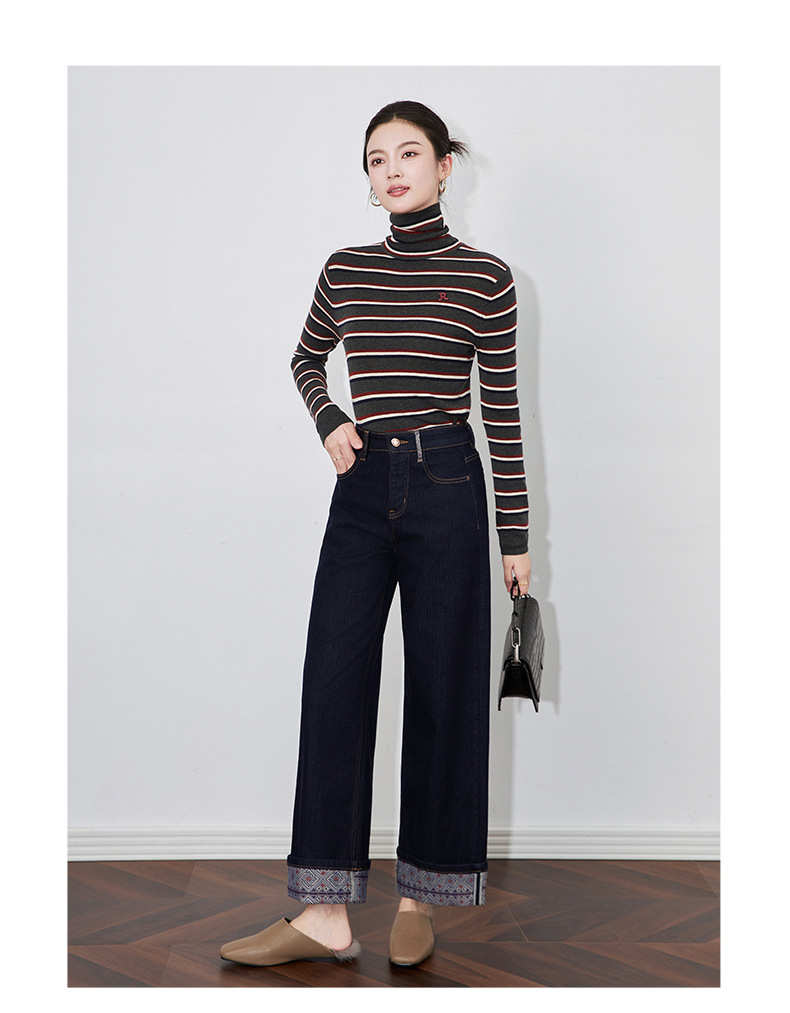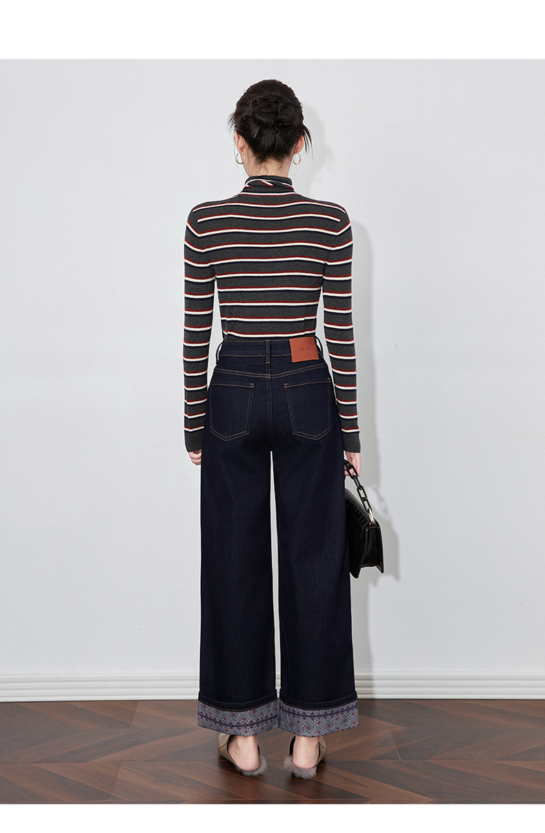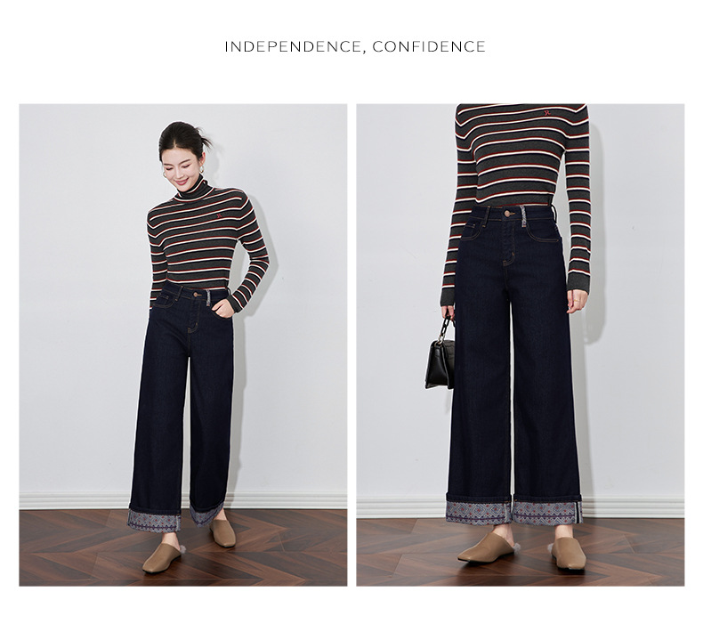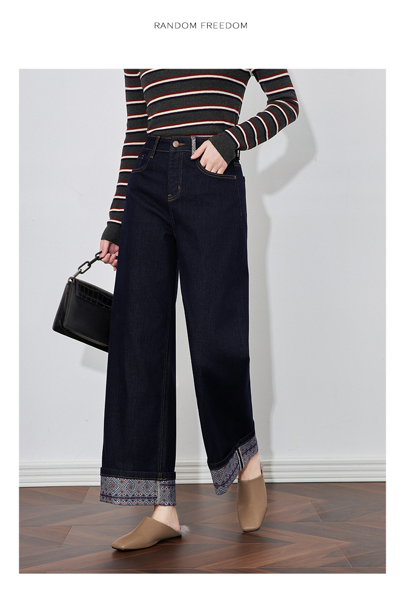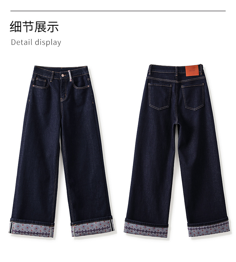 【高货wl】全新升级【铂金会员220/天猫289/差价69】(04202) 洛诗琳新款法式复古印花拼接牛仔裤显瘦垂坠感蓝色阔腿裤