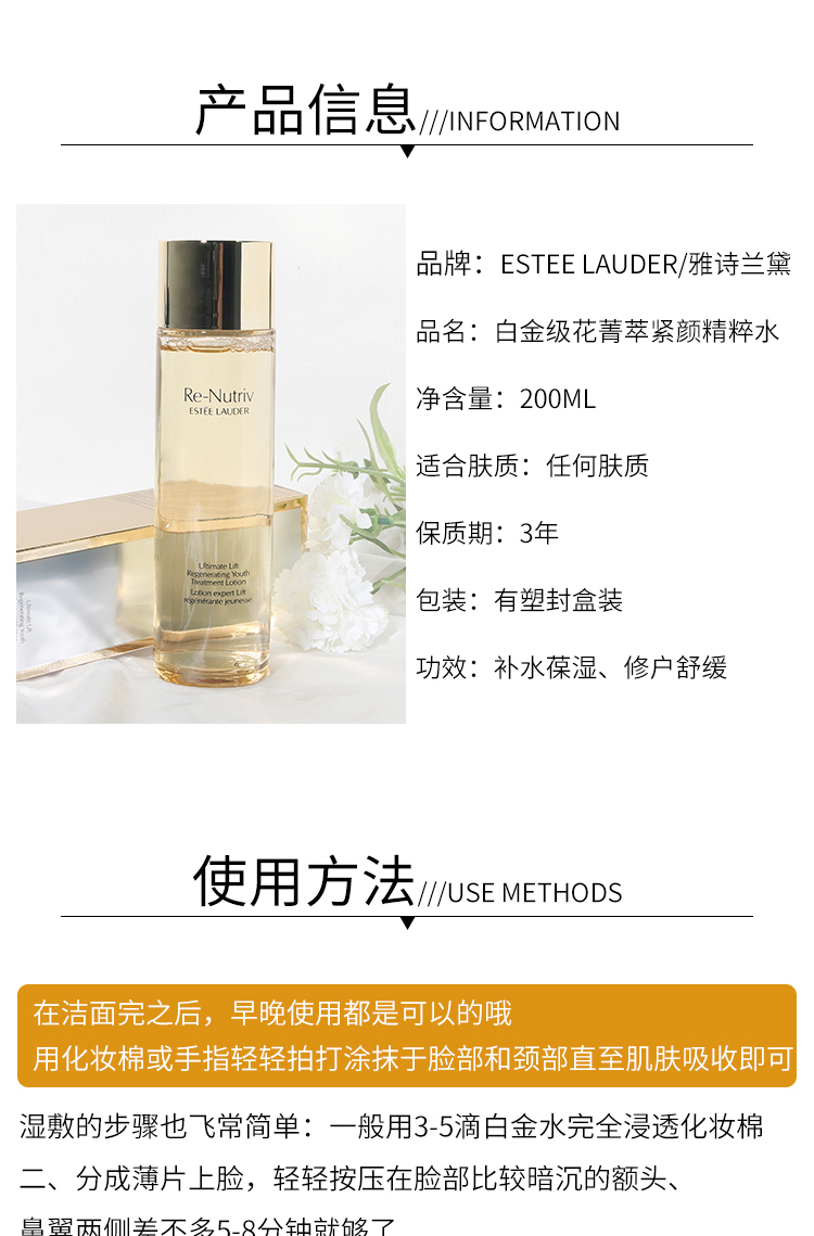原价1120 雅诗兰黛白金级花菁萃紧颜精粹水200ml
