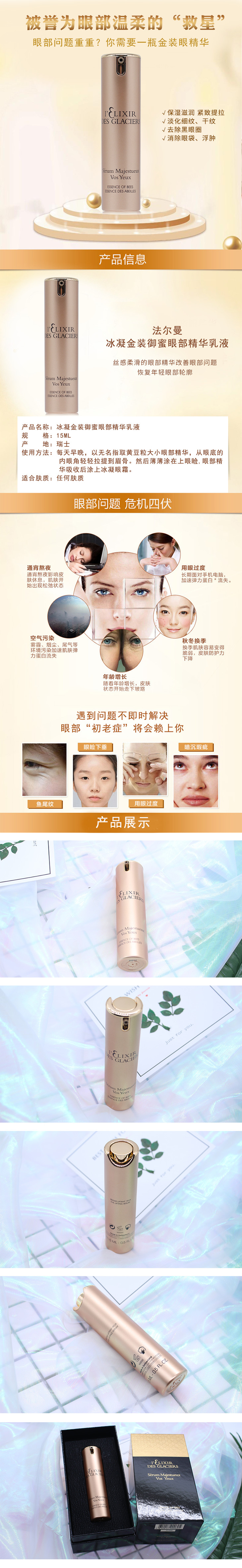 法尔曼 冰凝金装御蜜眼部精华乳液 15ml