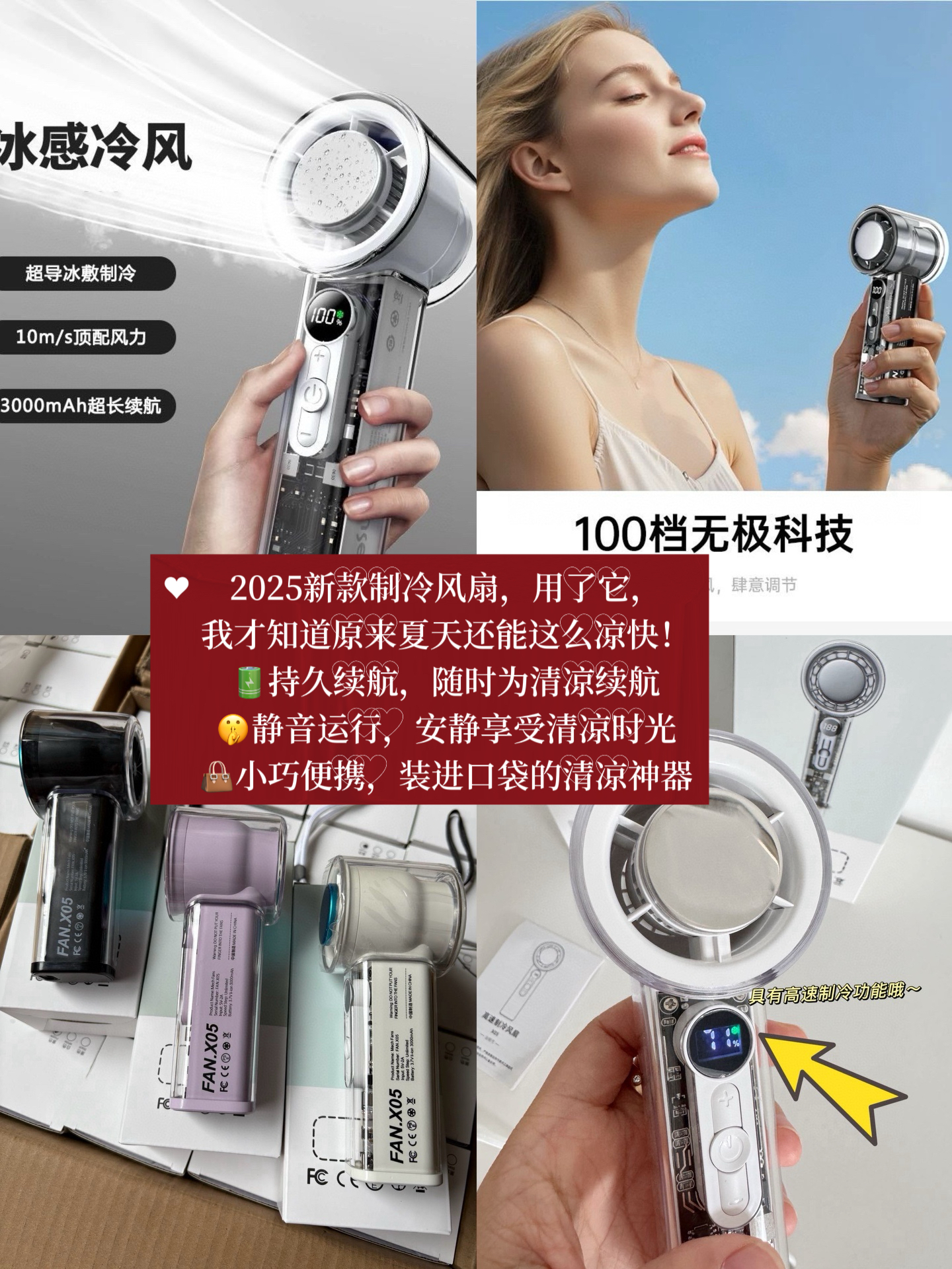 更多细节实拍:如果你也受够了夏天的炎热,不想再被汗水浸湿,那就别犹豫了,赶紧把这款2025新款制冷风扇带回家吧!让它陪你轻松度过这个炎炎夏日,享受清凉一夏某宝售价150+,原单尾货!我们清凉价出!普通风扇吹的风都是热乎乎的,这款完全不一样!它采用先进的制冷技术,吹出来的风冰冰凉凉,就像把脸凑近空调出风口,每一丝风都带着十足的凉意,瞬间把燥热感都赶跑。不管是在办公室、宿舍,还是出门逛街、运动,只要打开它,立马置身清凉小世界。被同事追着问的小风扇!冰爽一夏全靠它