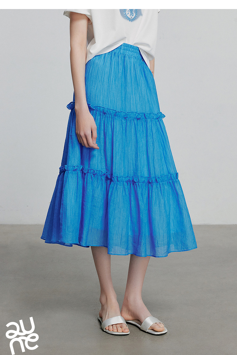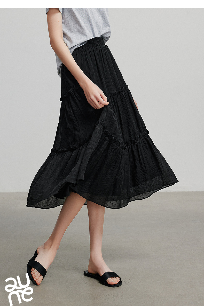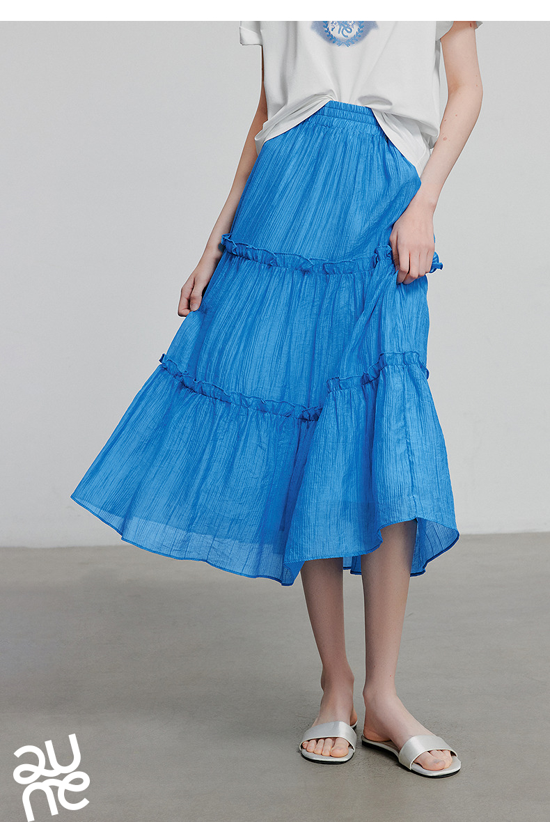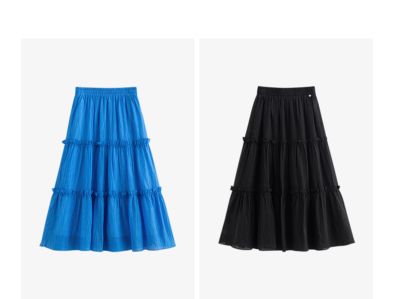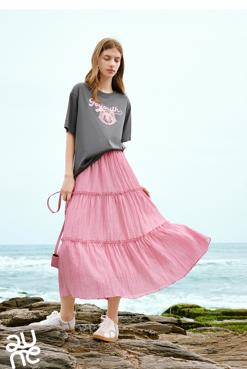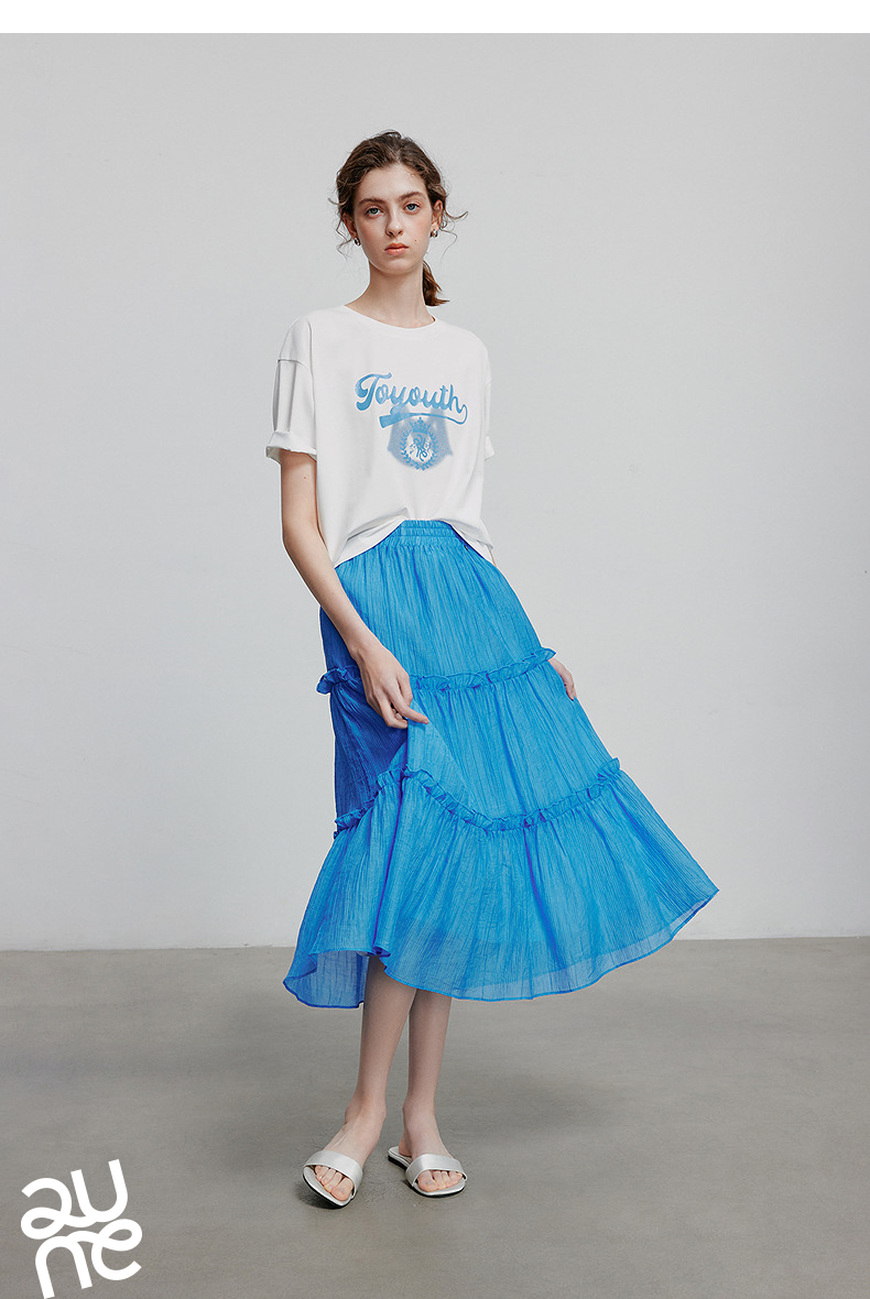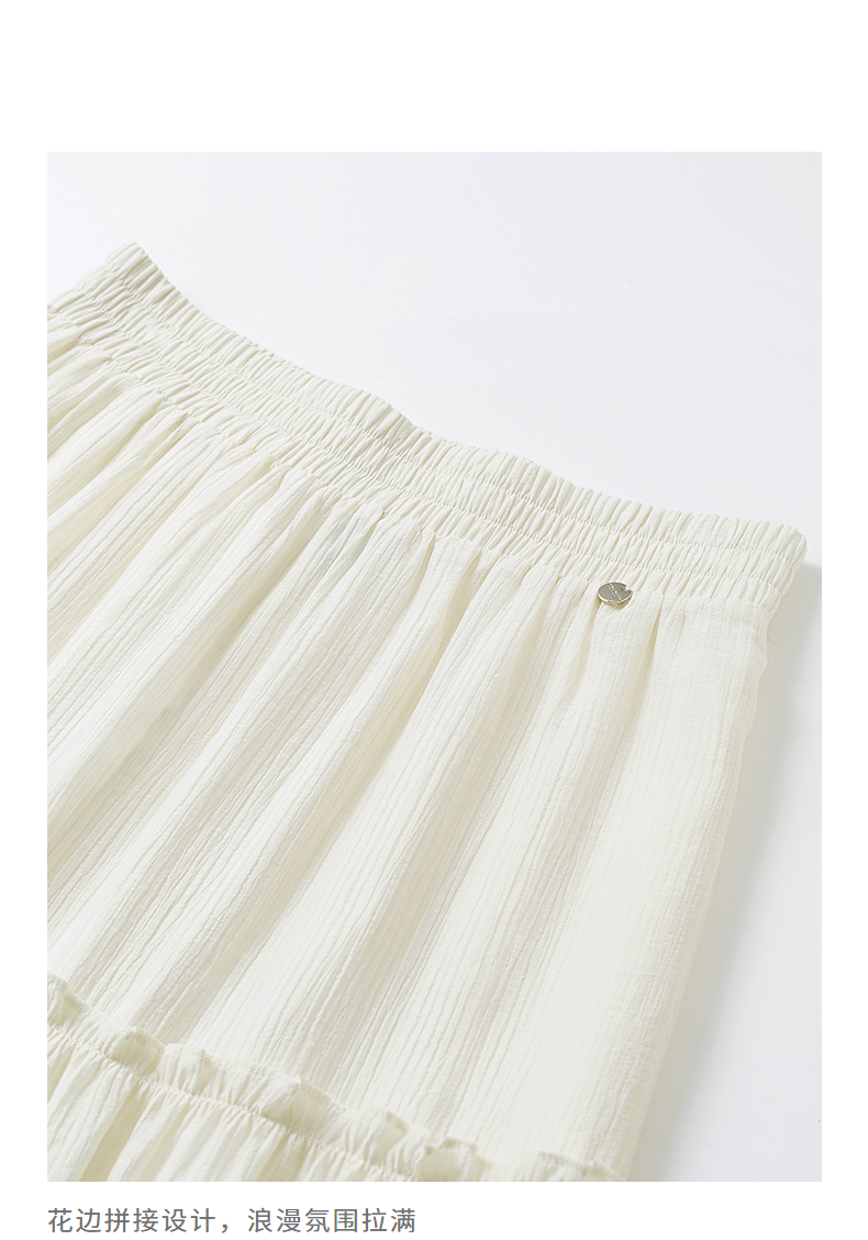 TOYOUTH初语拼接花边蛋糕裙女松紧A型中长款半身裙
