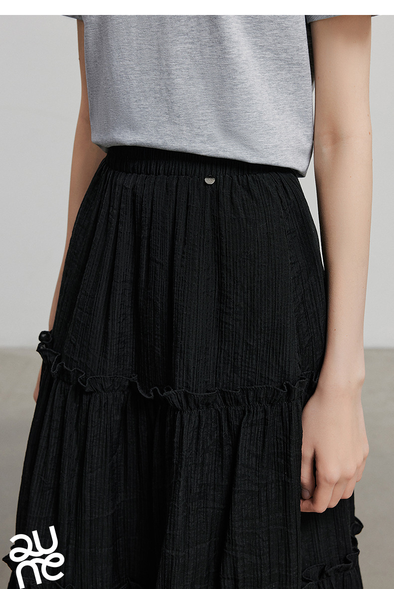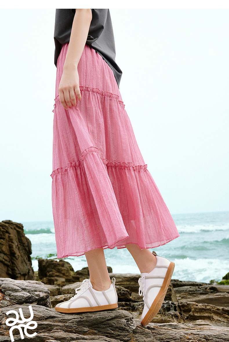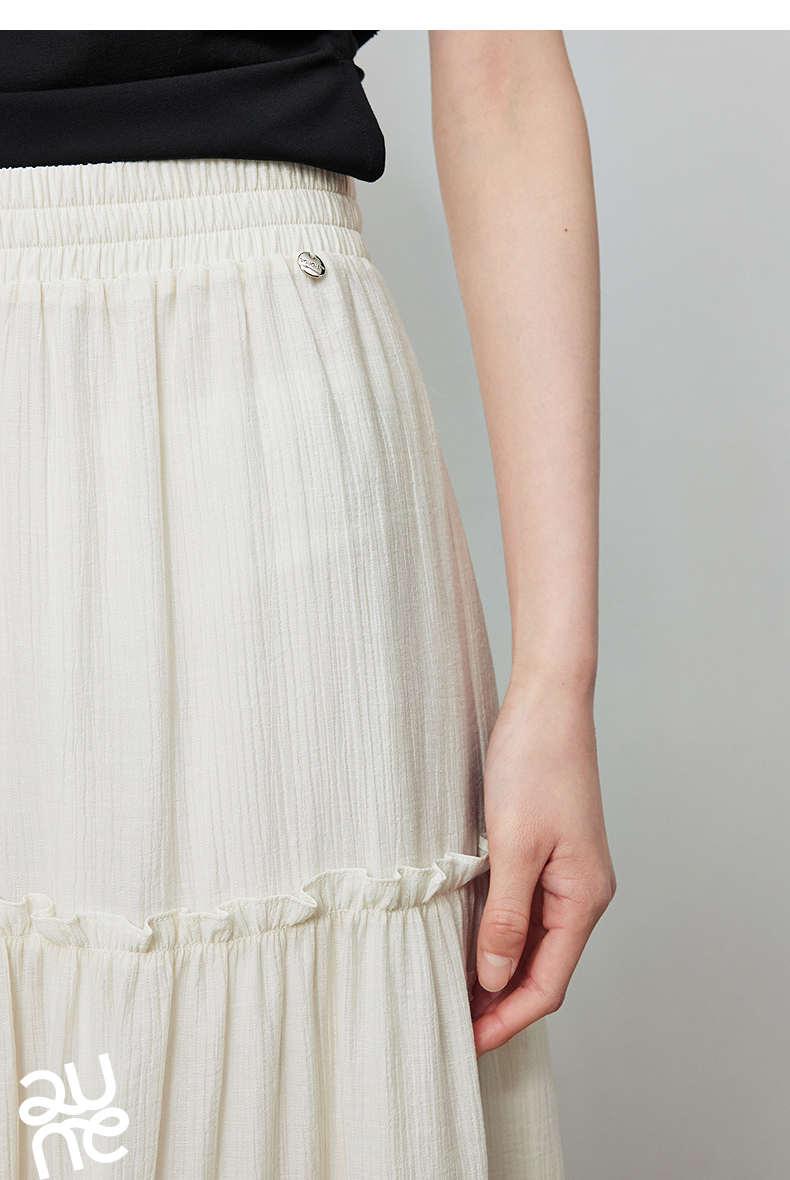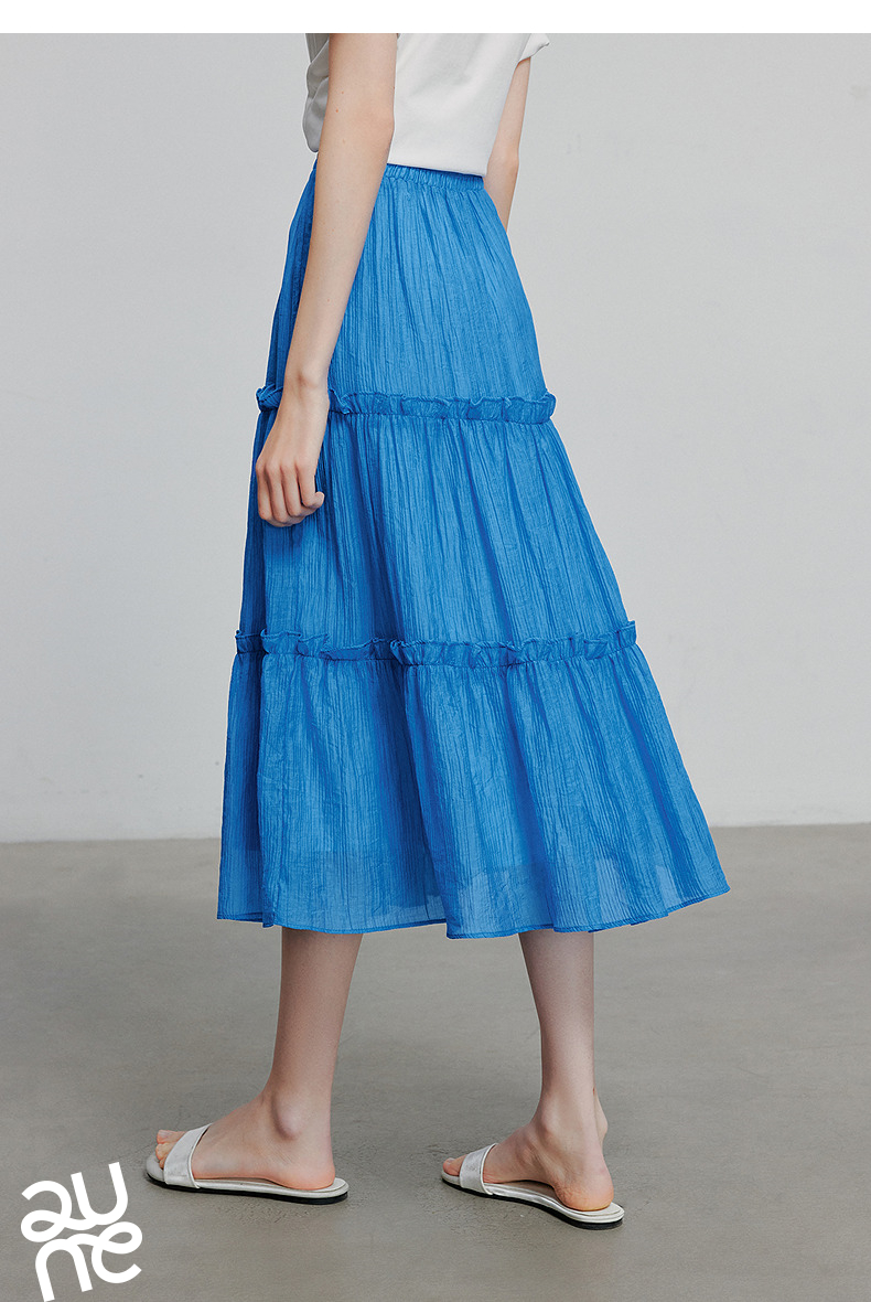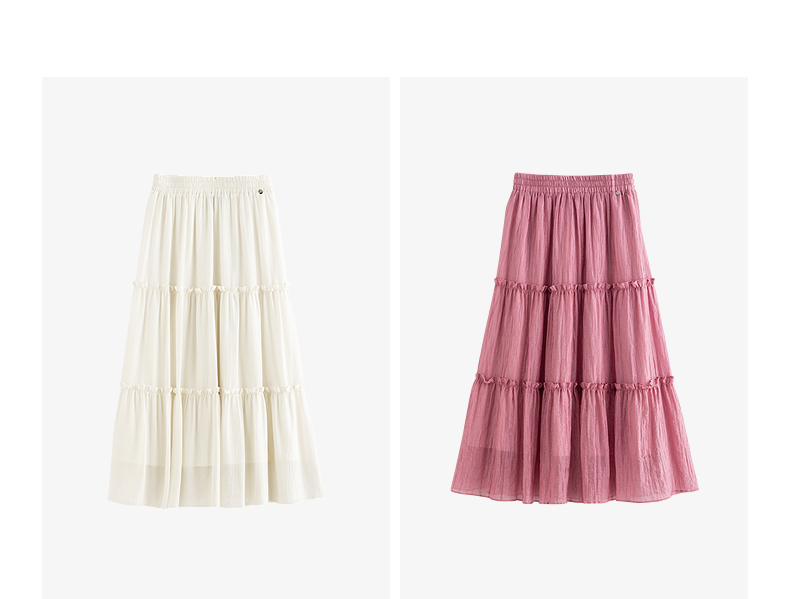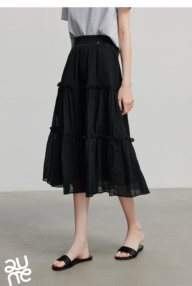 TOYOUTH初语拼接花边蛋糕裙女松紧A型中长款半身裙