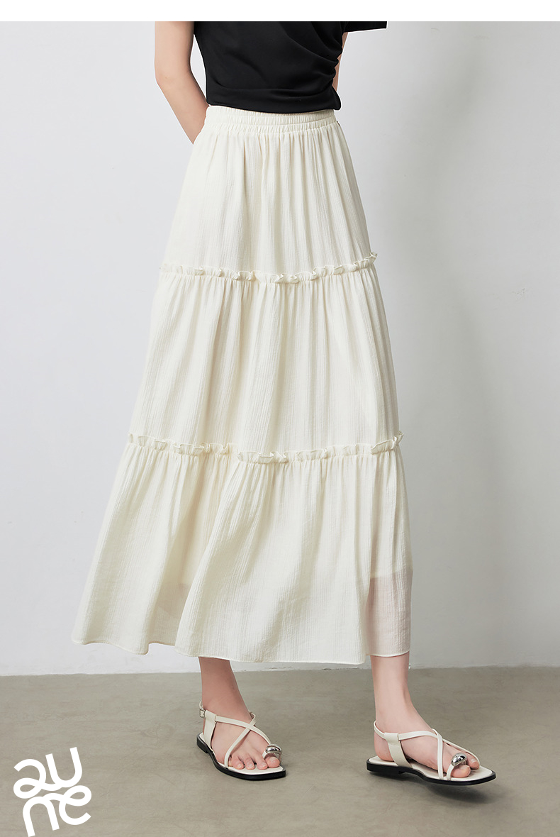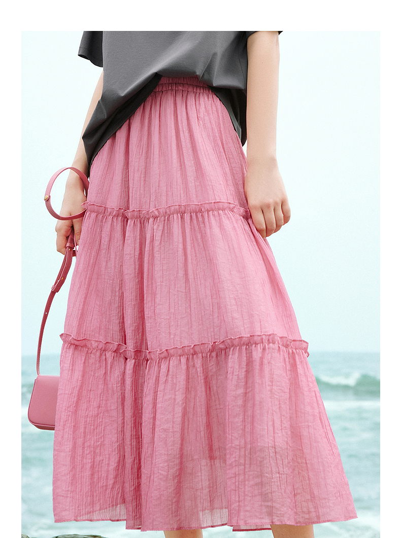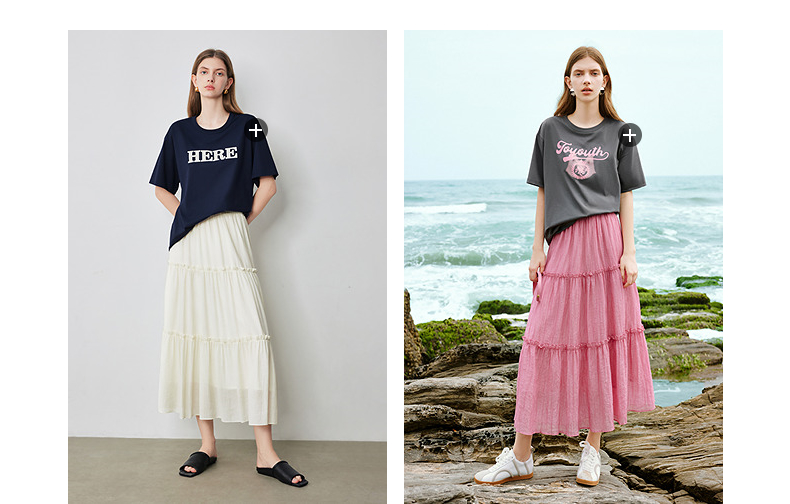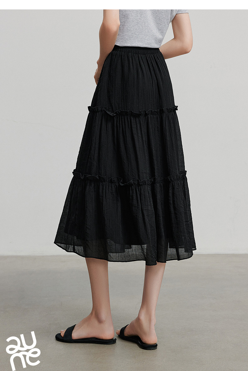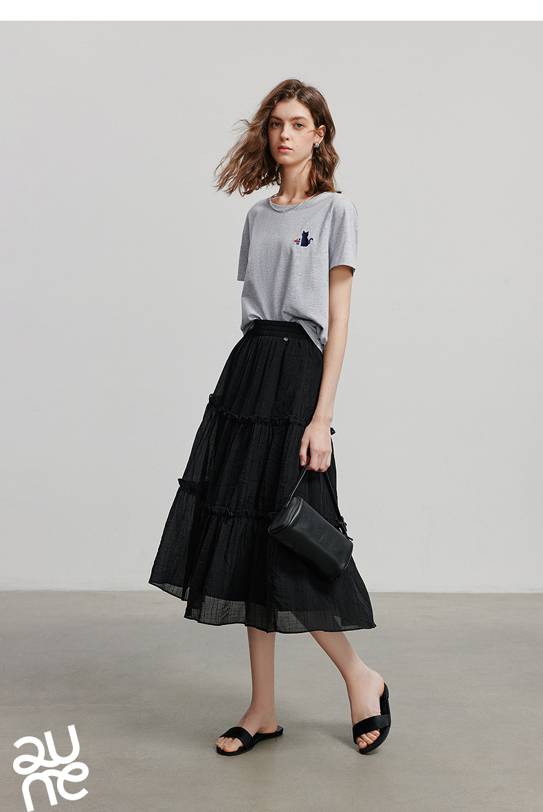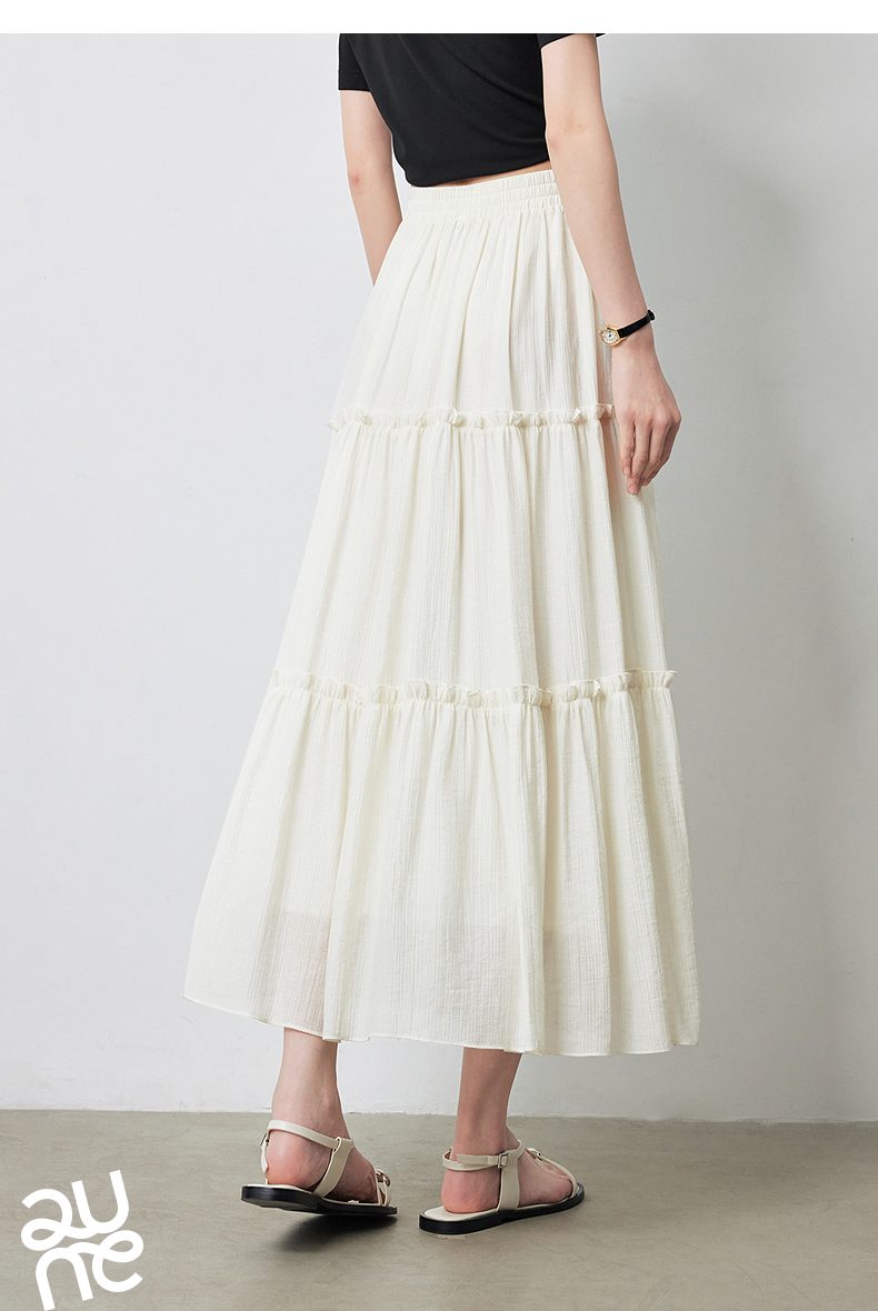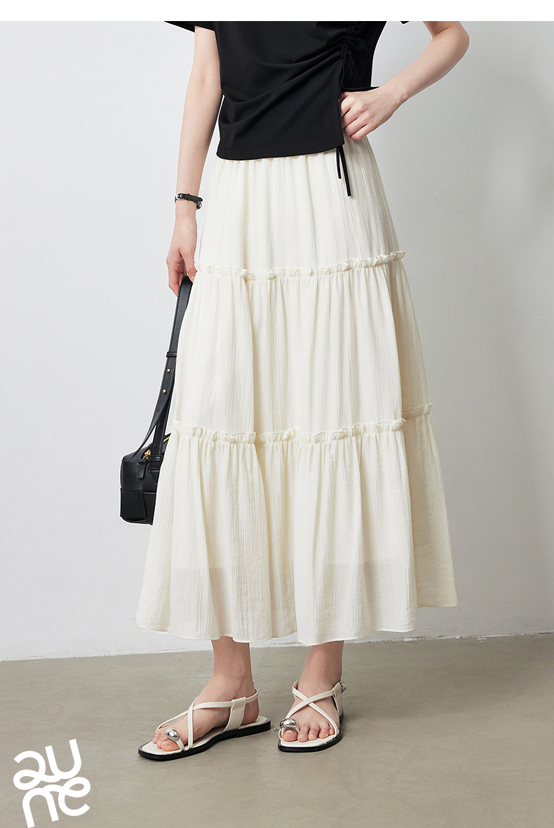 TOYOUTH初语拼接花边蛋糕裙女松紧A型中长款半身裙