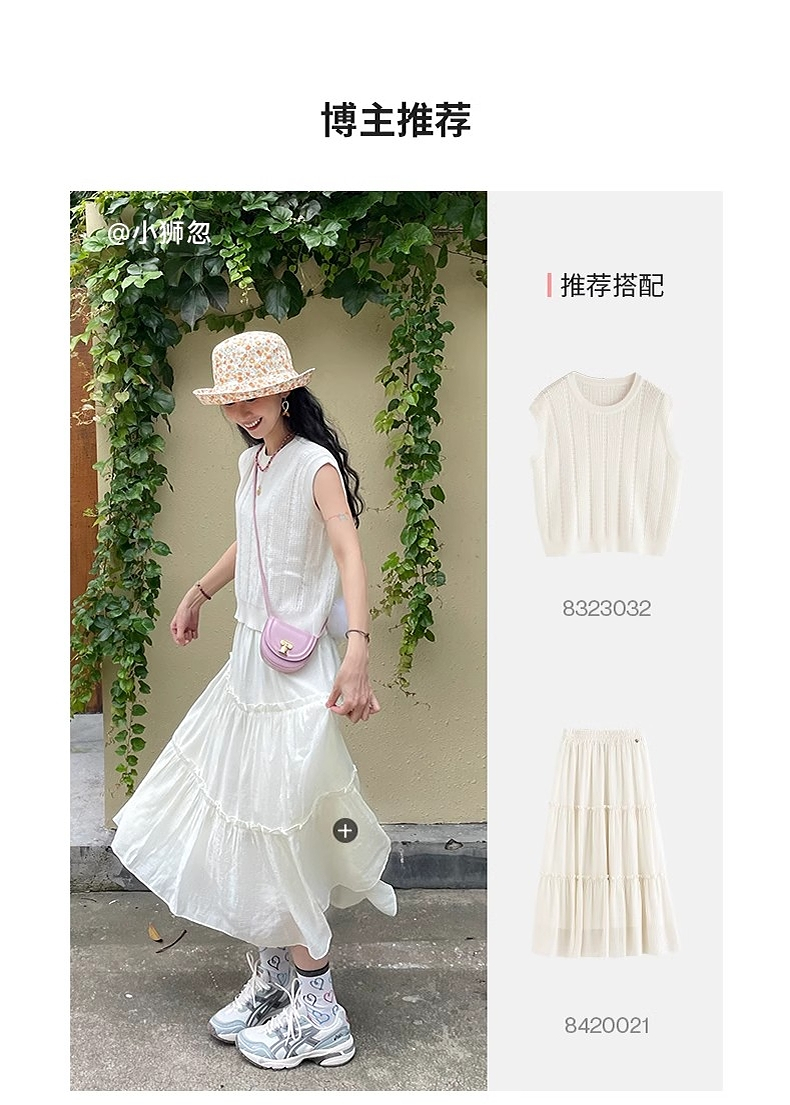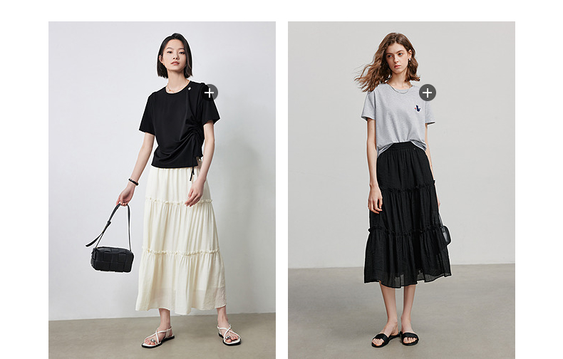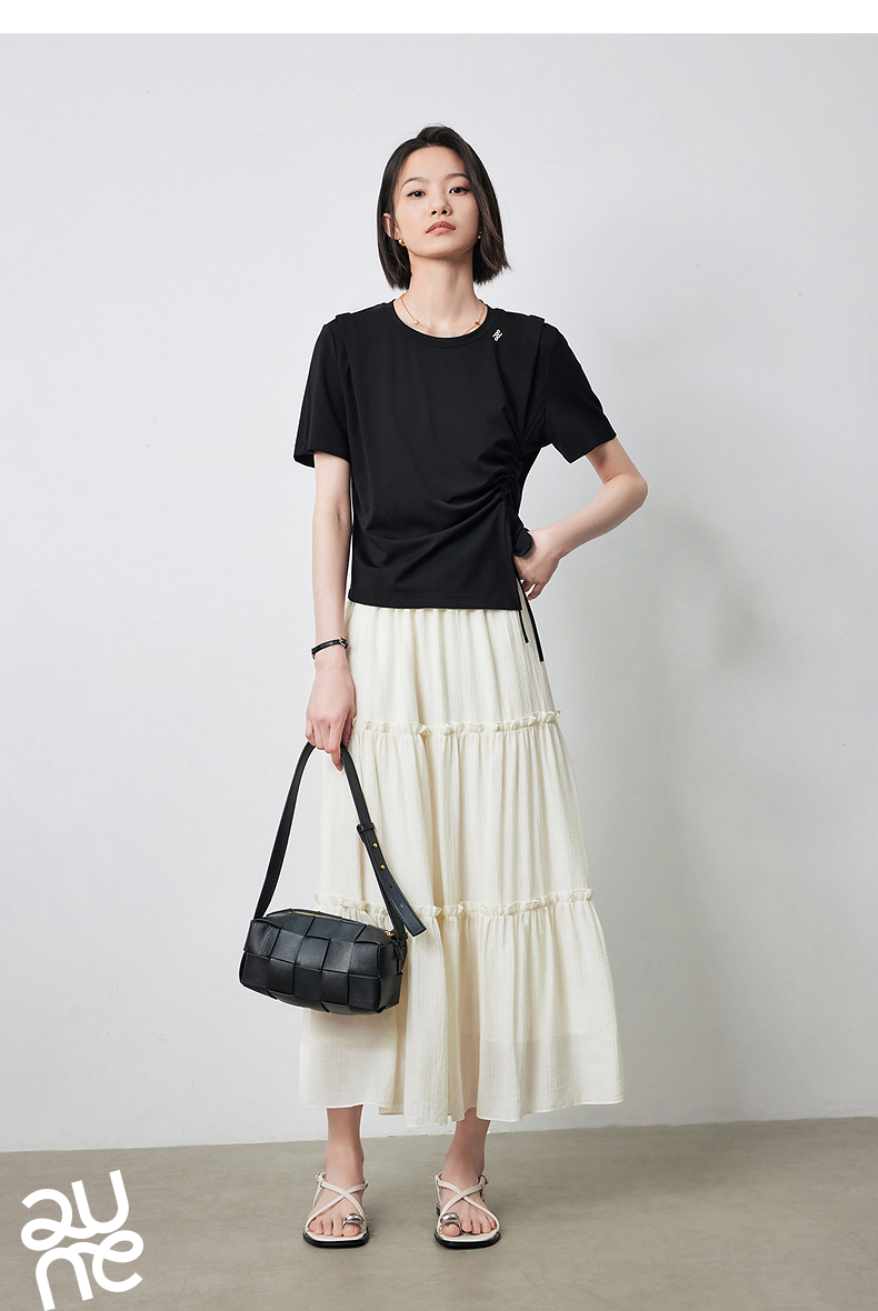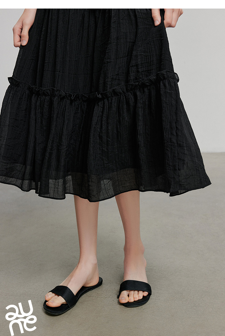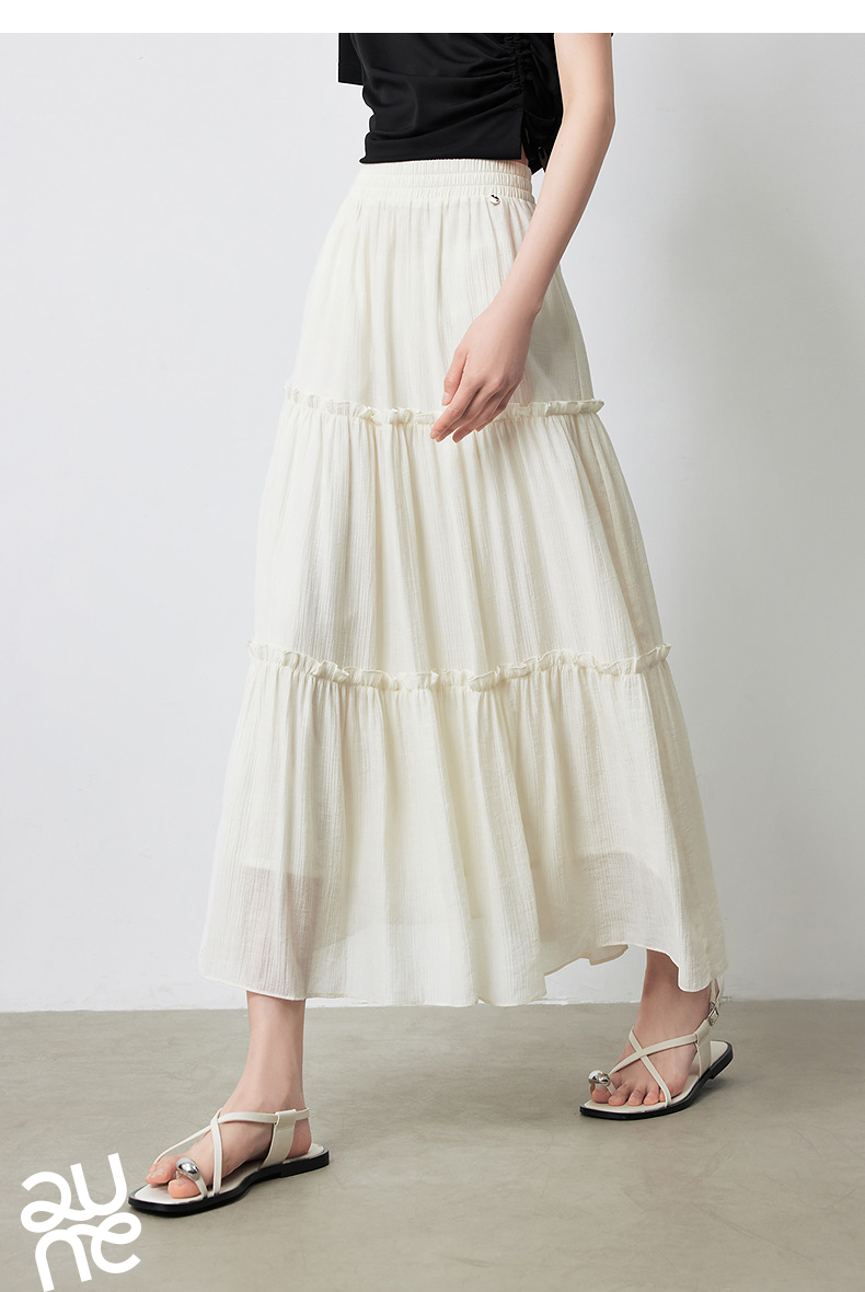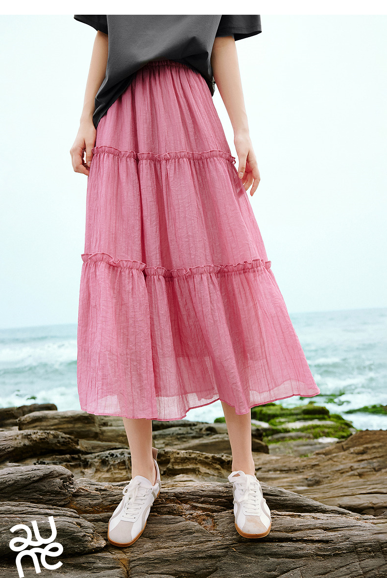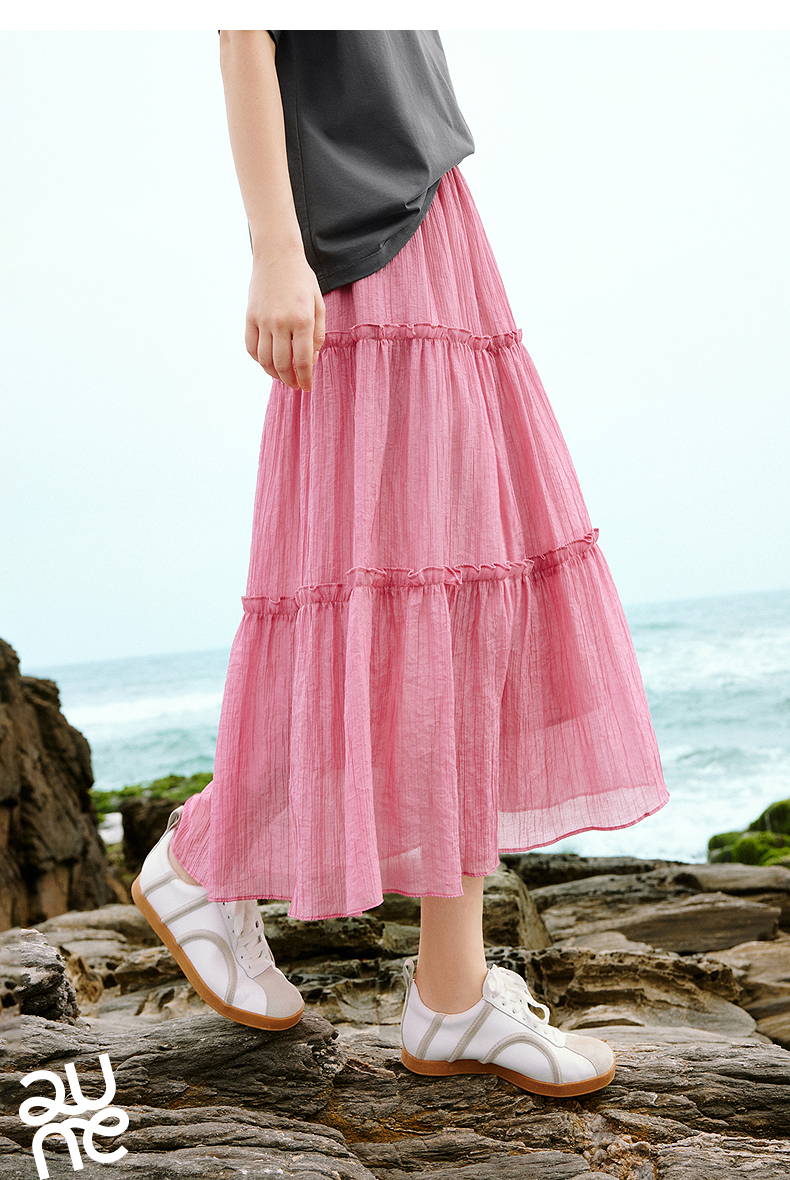 TOYOUTH初语拼接花边蛋糕裙女松紧A型中长款半身裙
