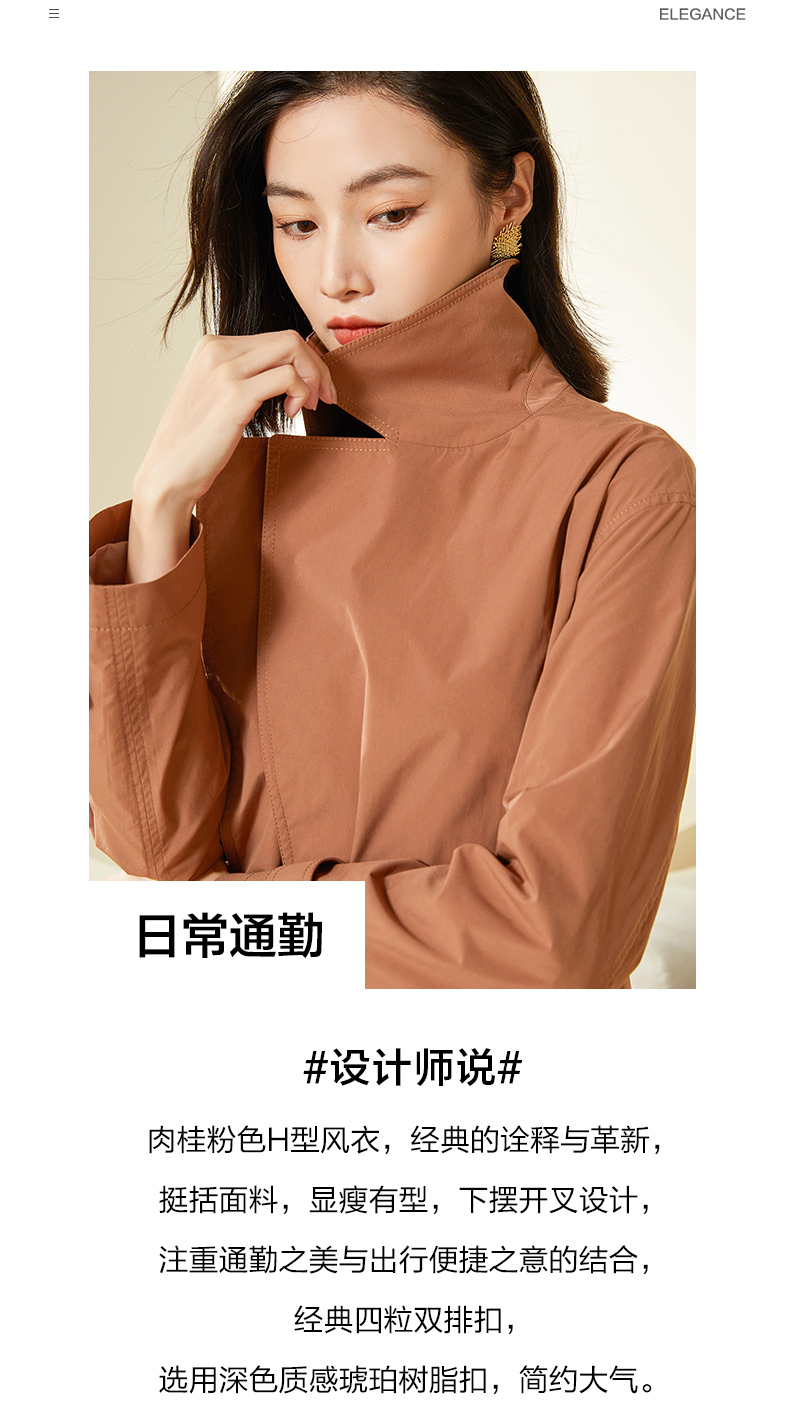 乔万尼风衣女新款韩系风格穿搭高级感收腰中长款EF3A843