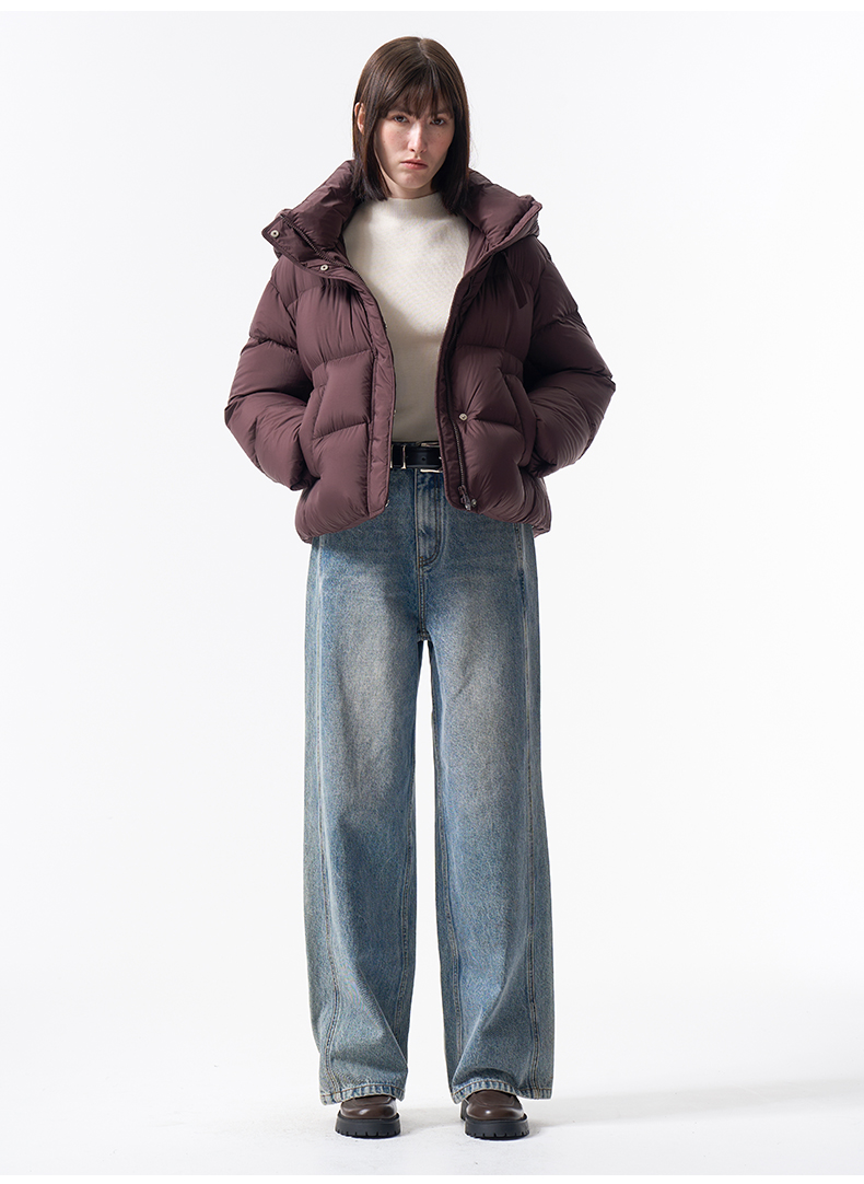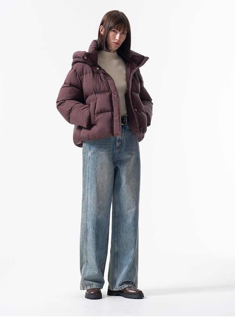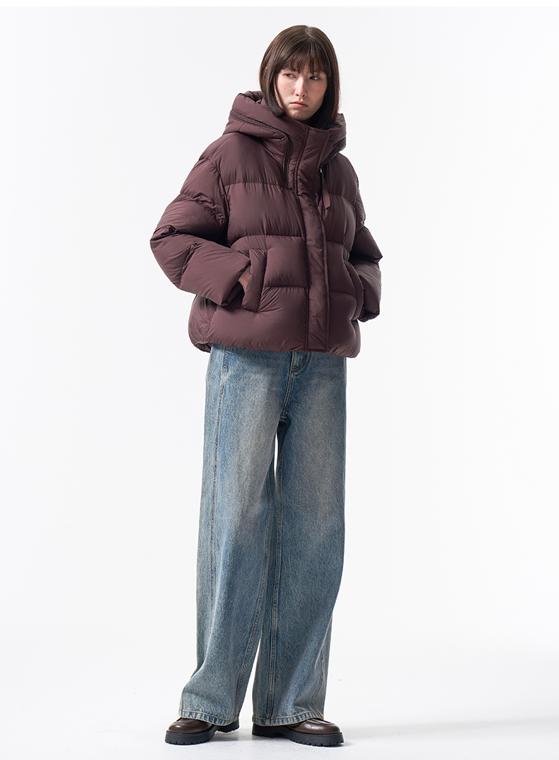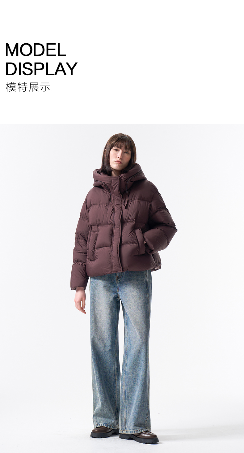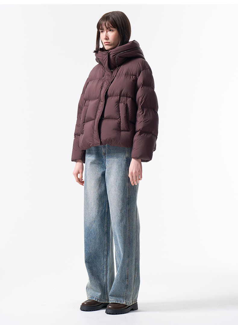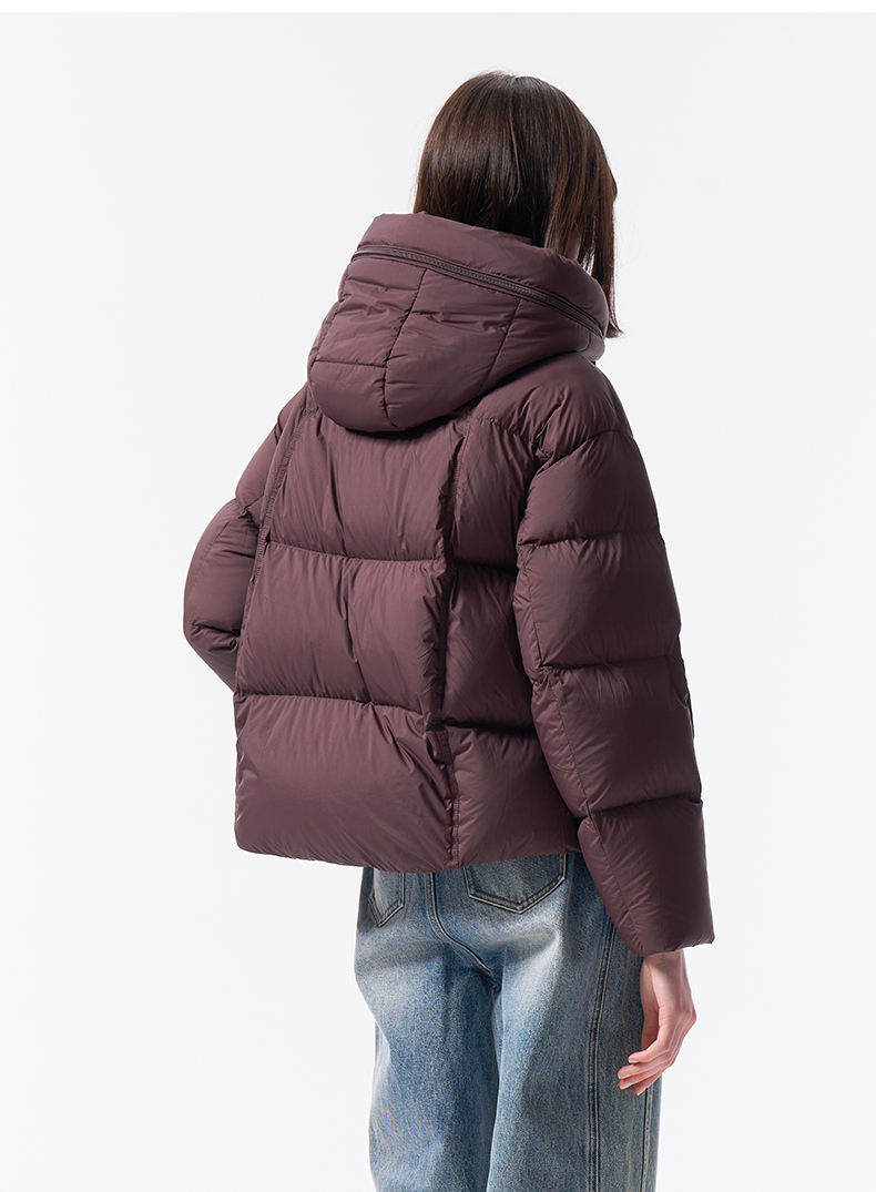 VIMAGE纬漫纪巧克力色精致立体显瘦2025冬季新款短款羽绒服V2411104