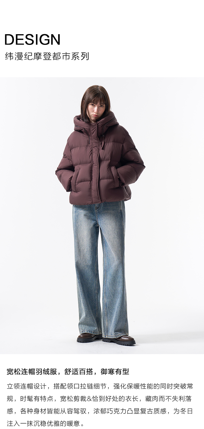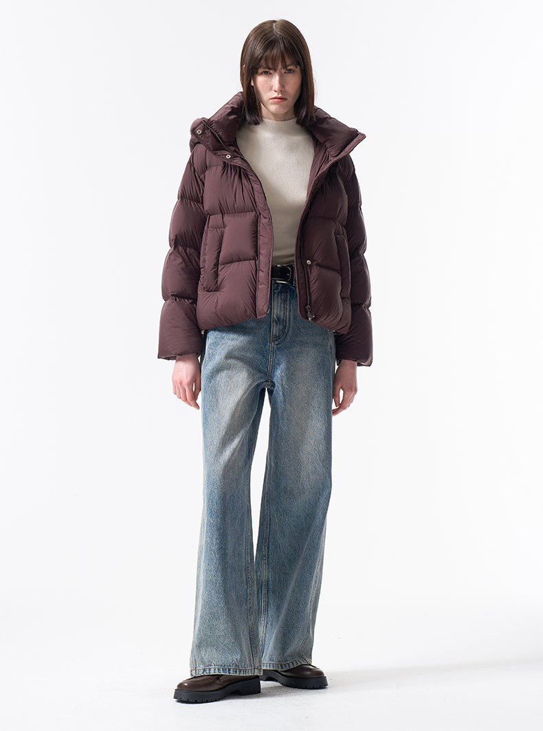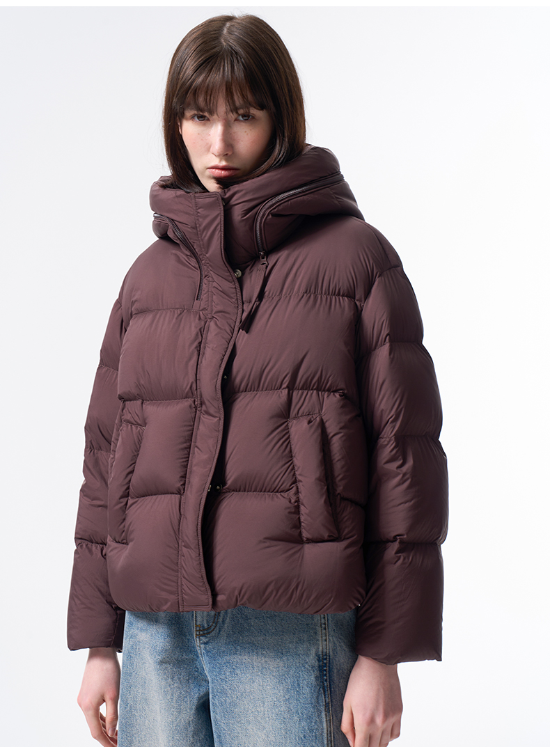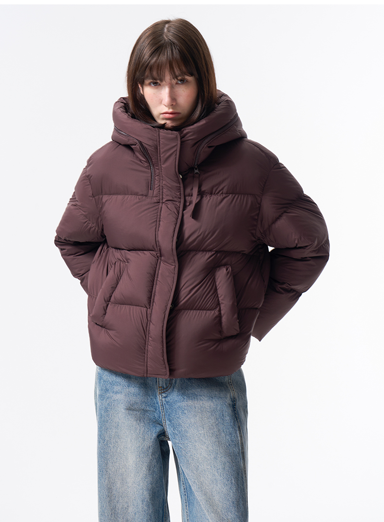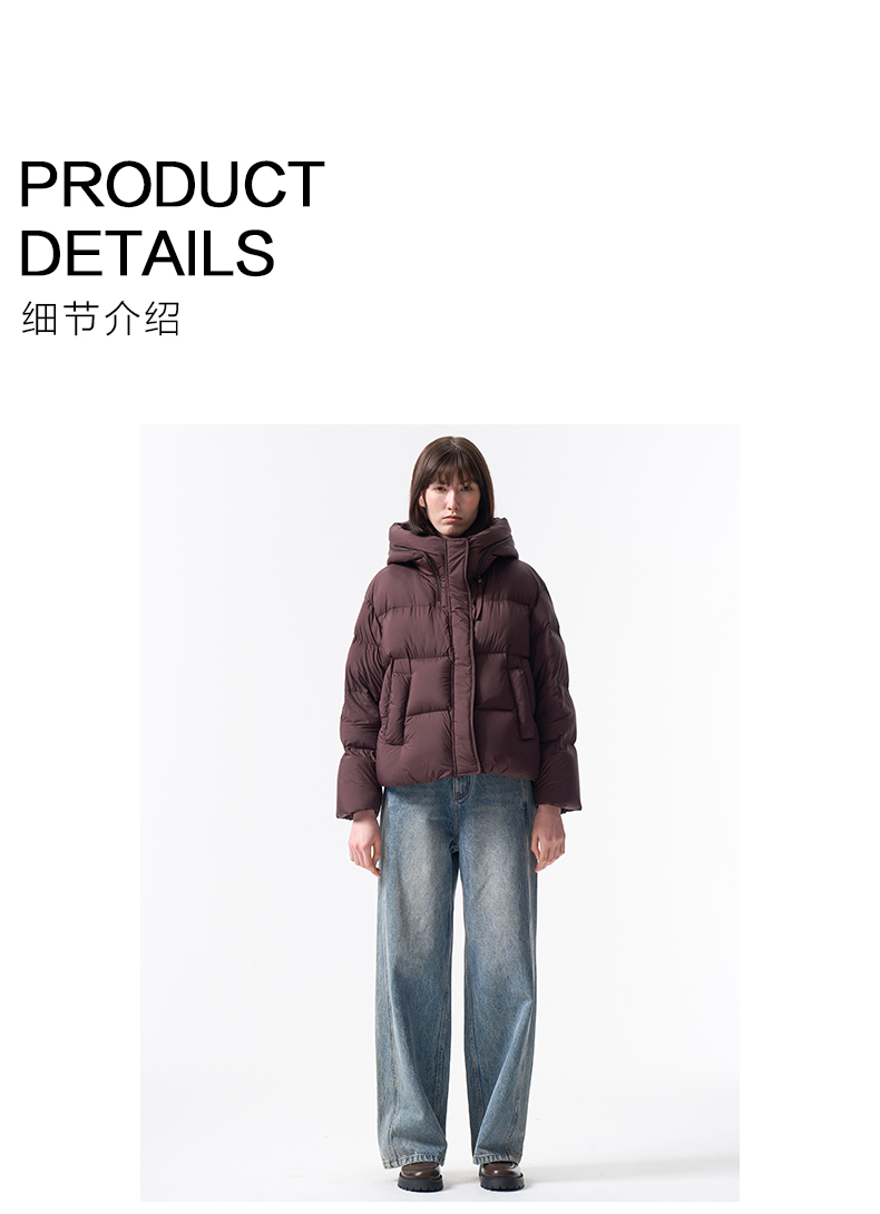 VIMAGE纬漫纪巧克力色精致立体显瘦2025冬季新款短款羽绒服V2411104