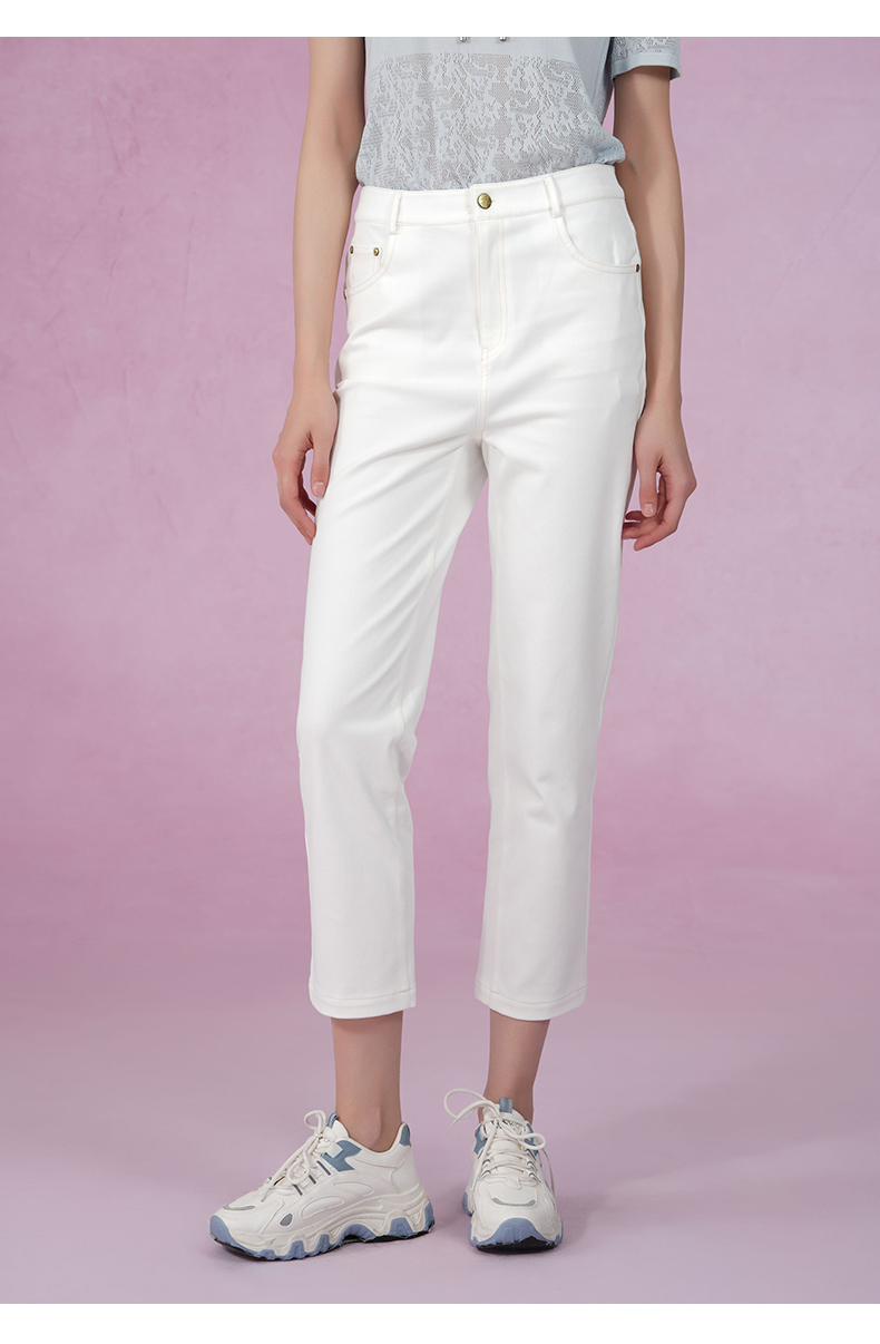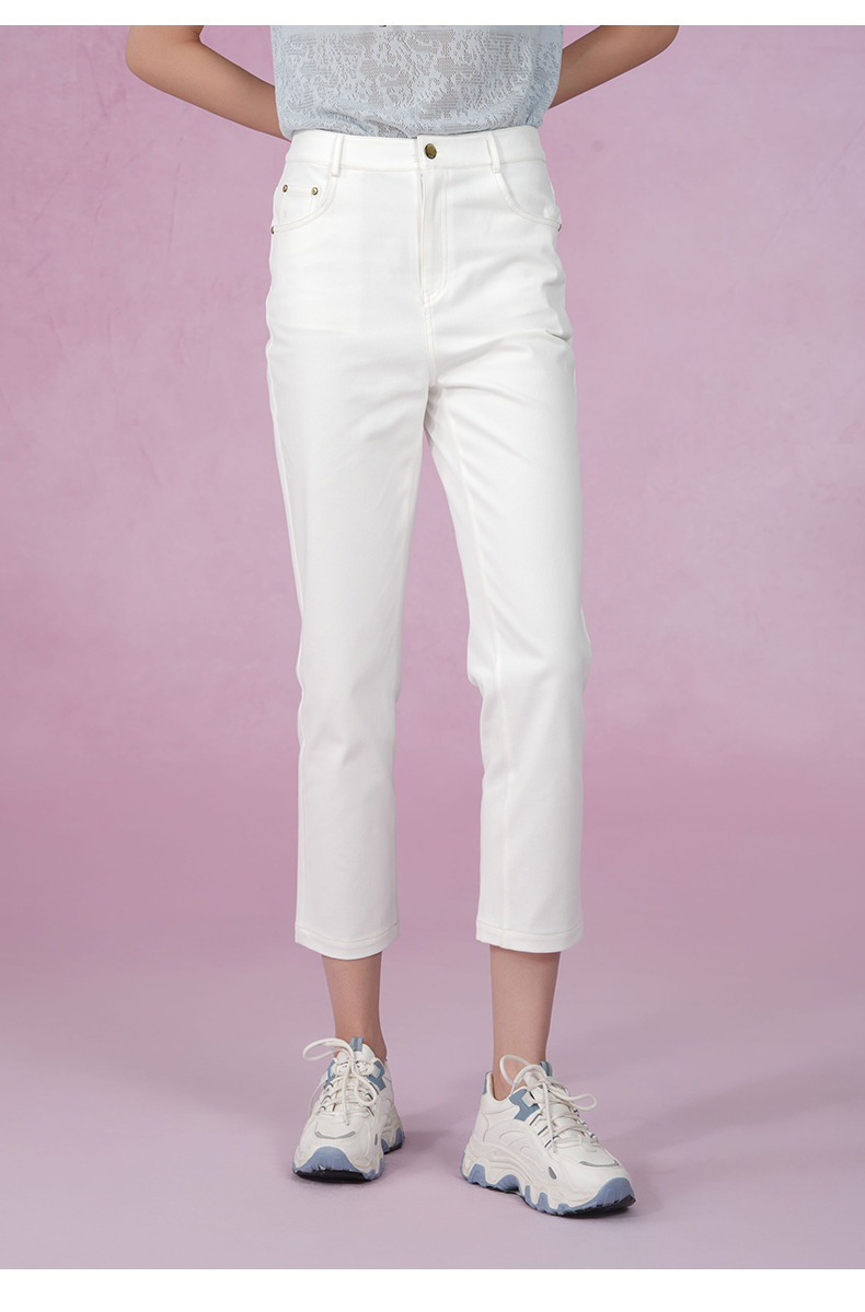 乔万尼夏季新品白色牛仔裤通勤显瘦裤子EM2F861
