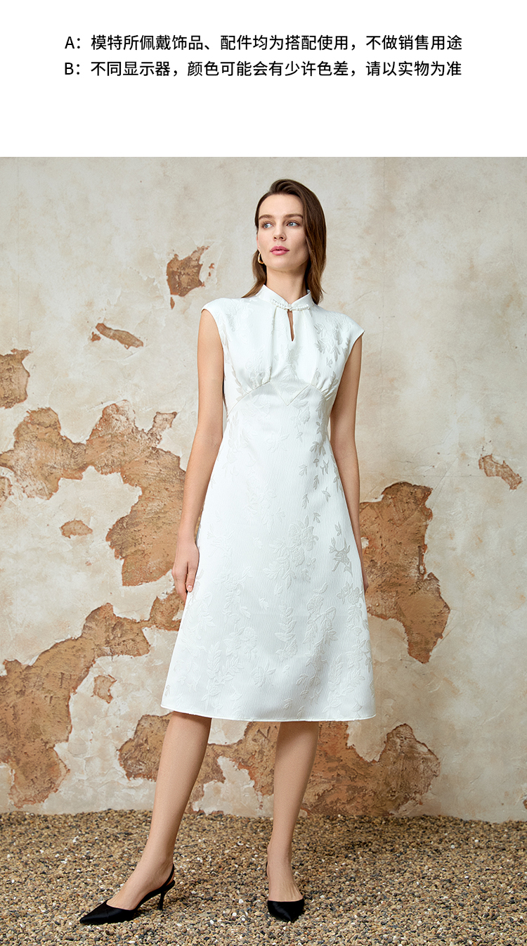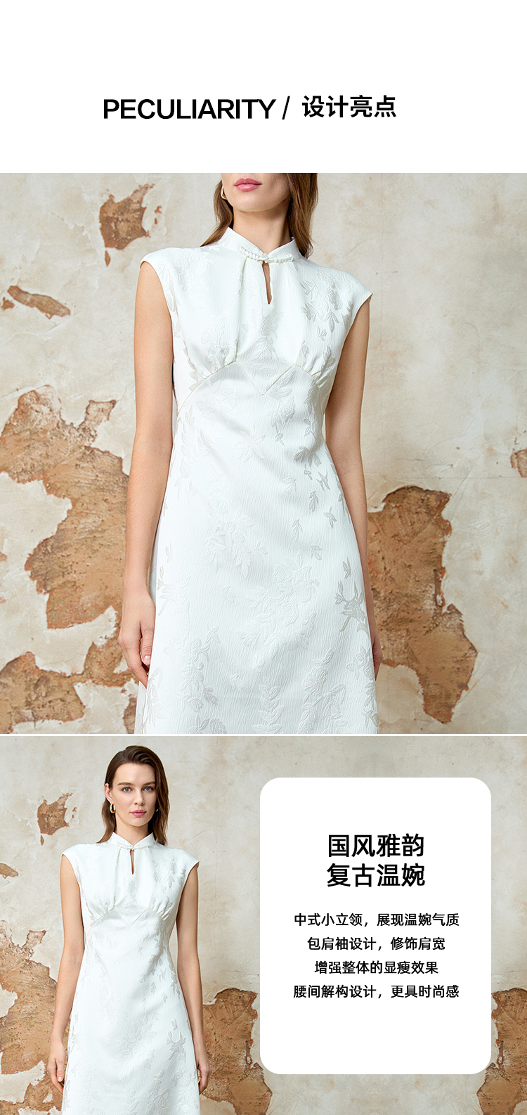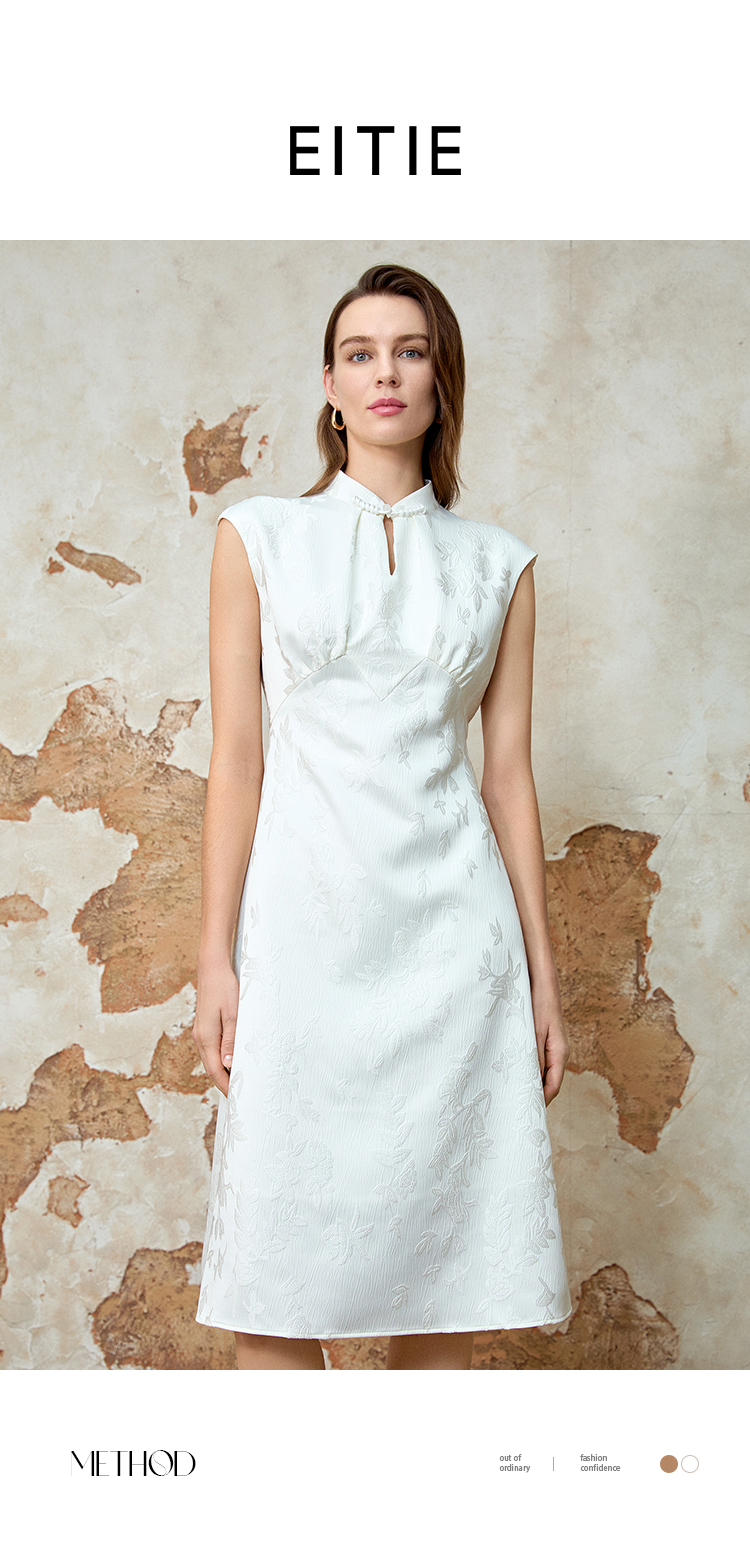 EITIE爱特爱气质新中式立领暗纹收腰显瘦连衣裙春季新款8107828