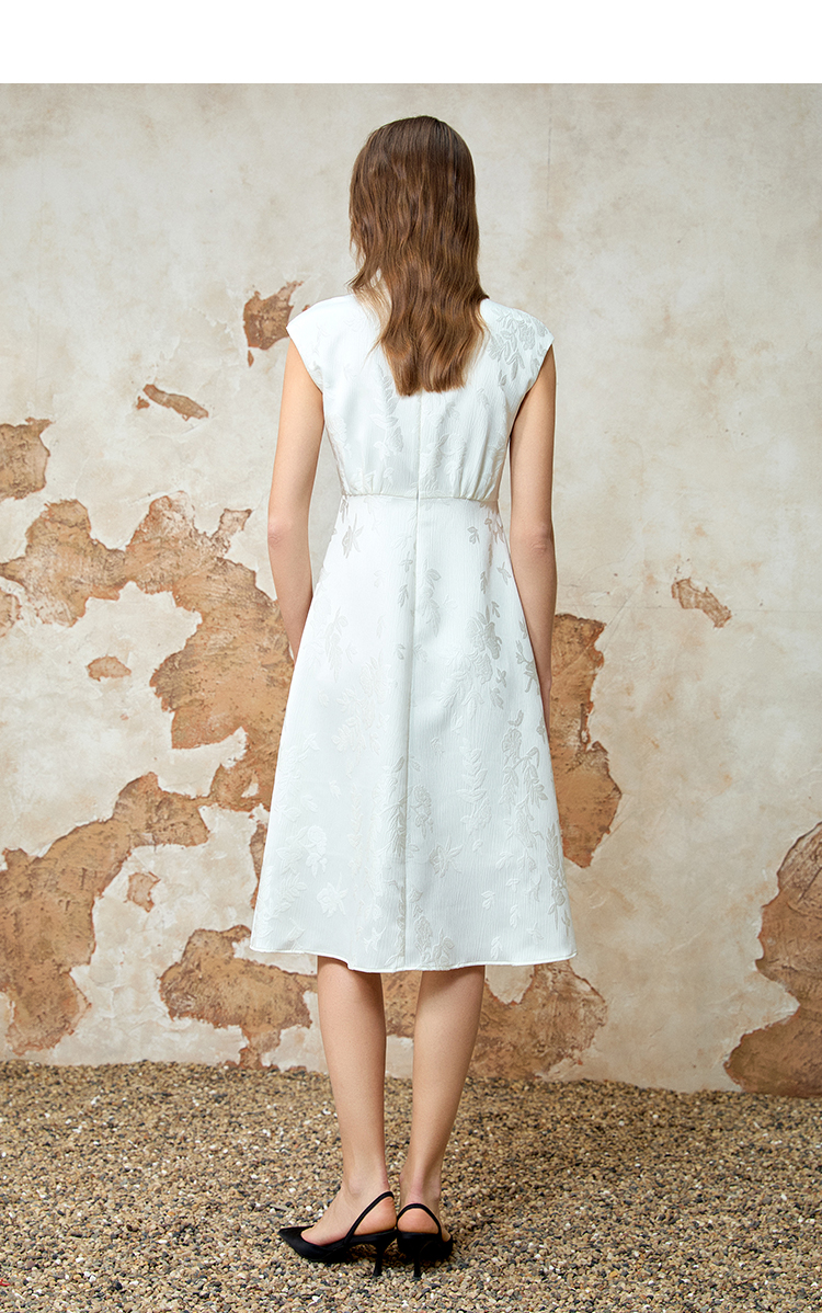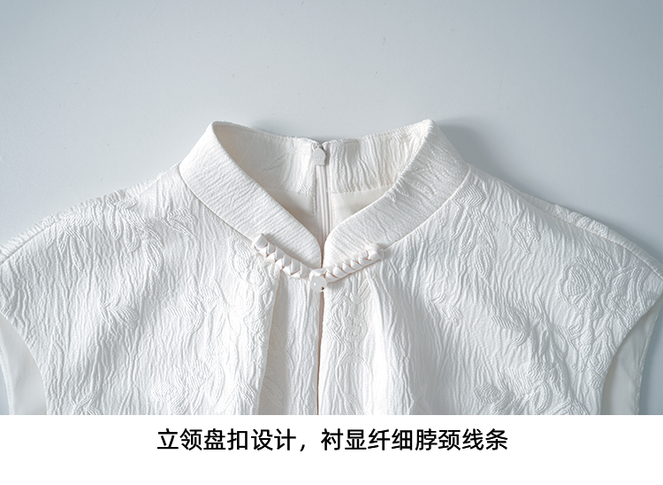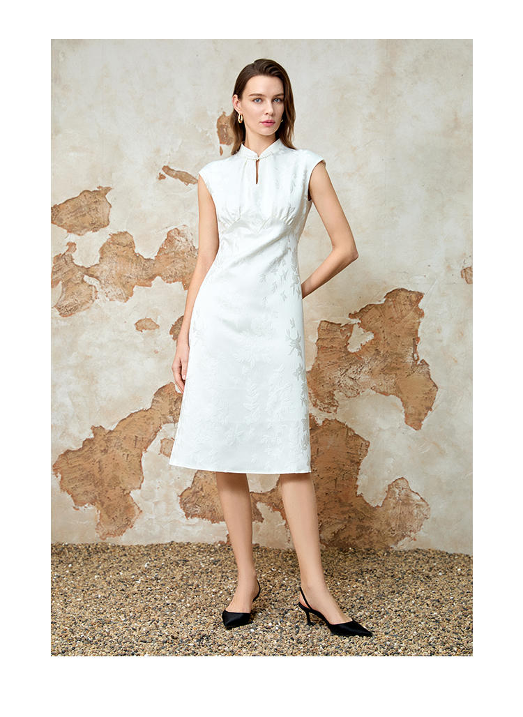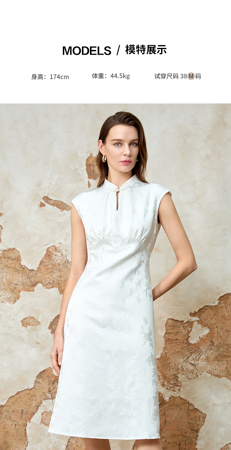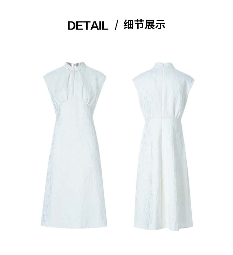 EITIE爱特爱气质新中式立领暗纹收腰显瘦连衣裙春季新款8107828