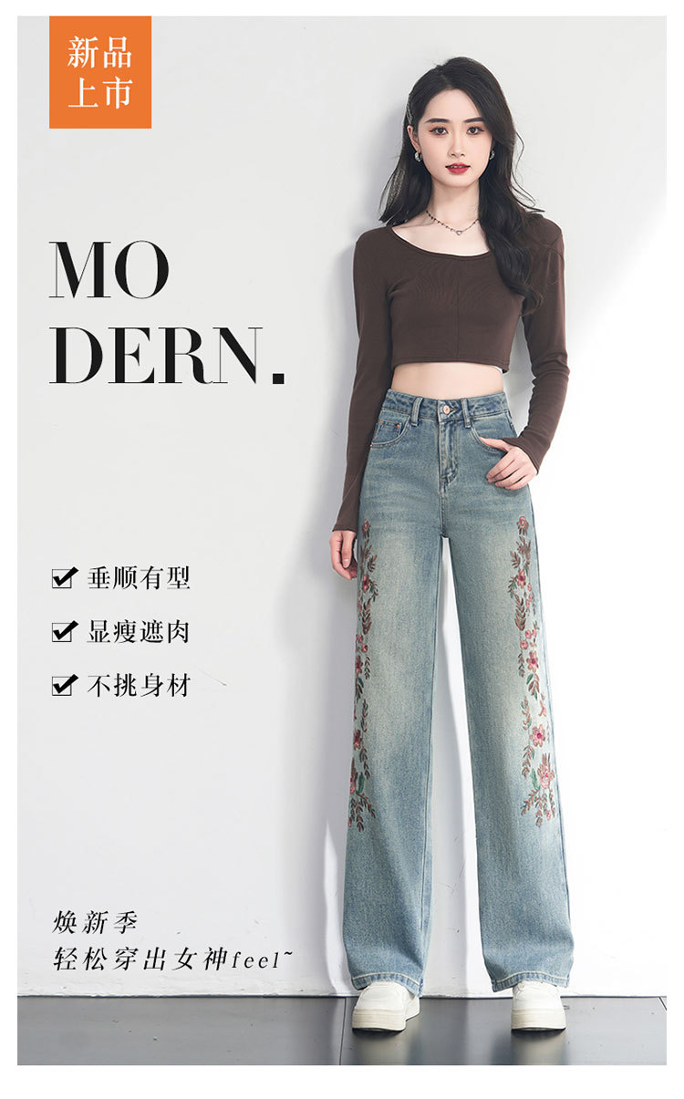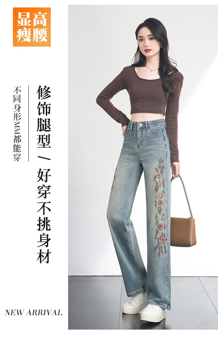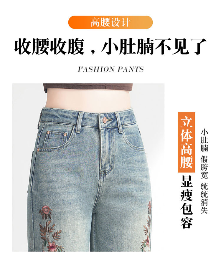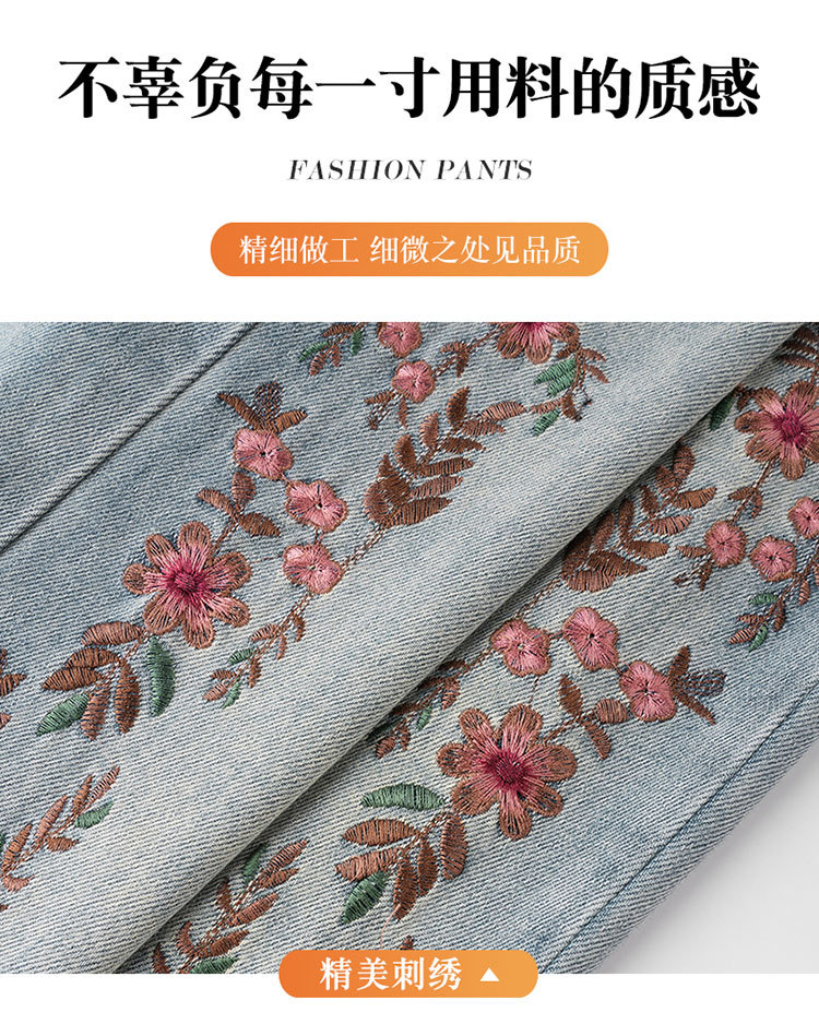 国风绣花时尚牛仔直筒裤垂感修身2025年春夏款MYX-1228-L