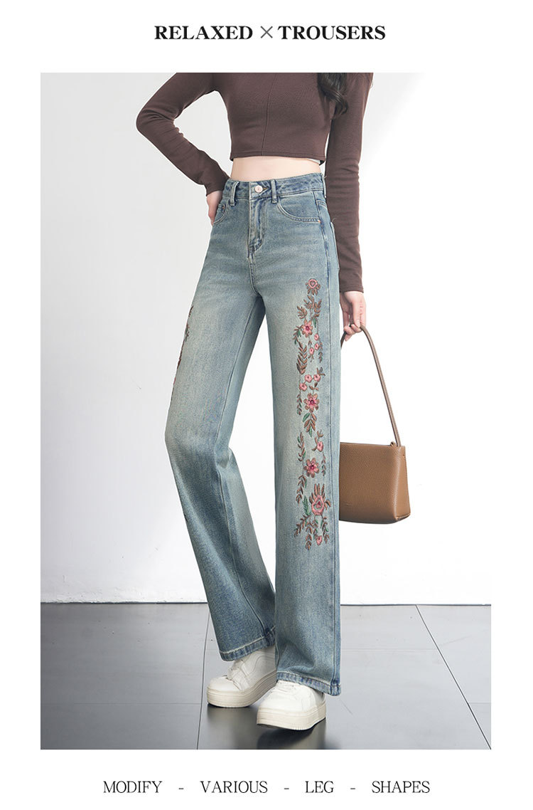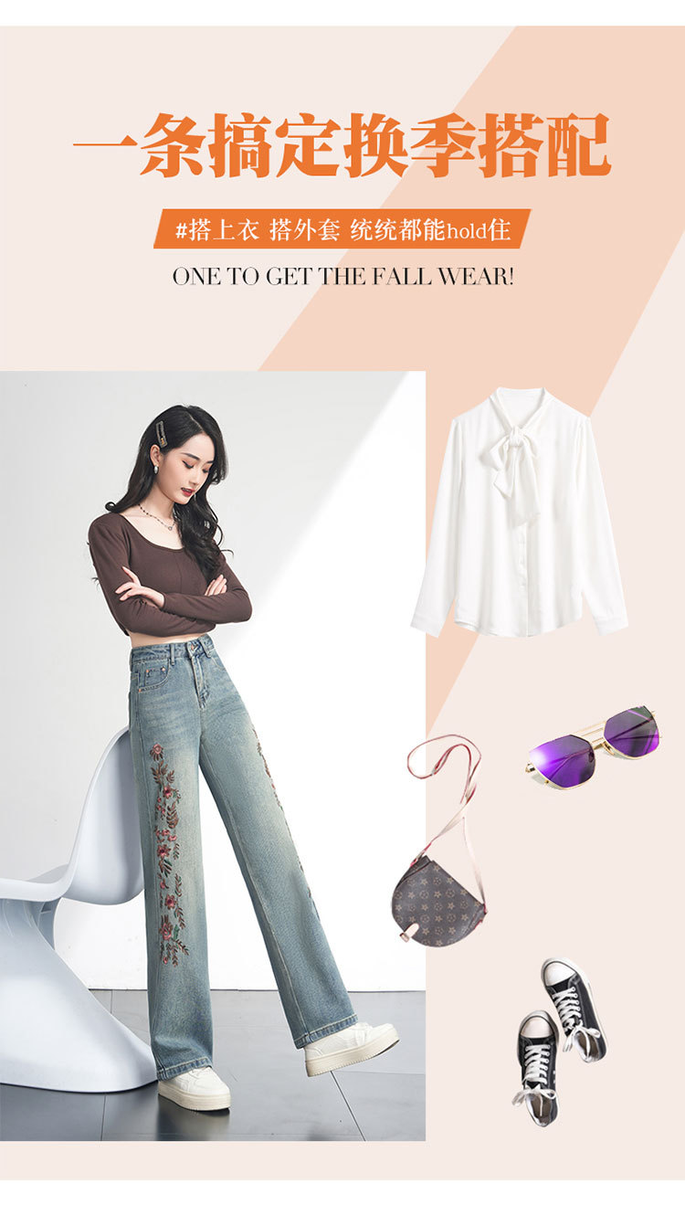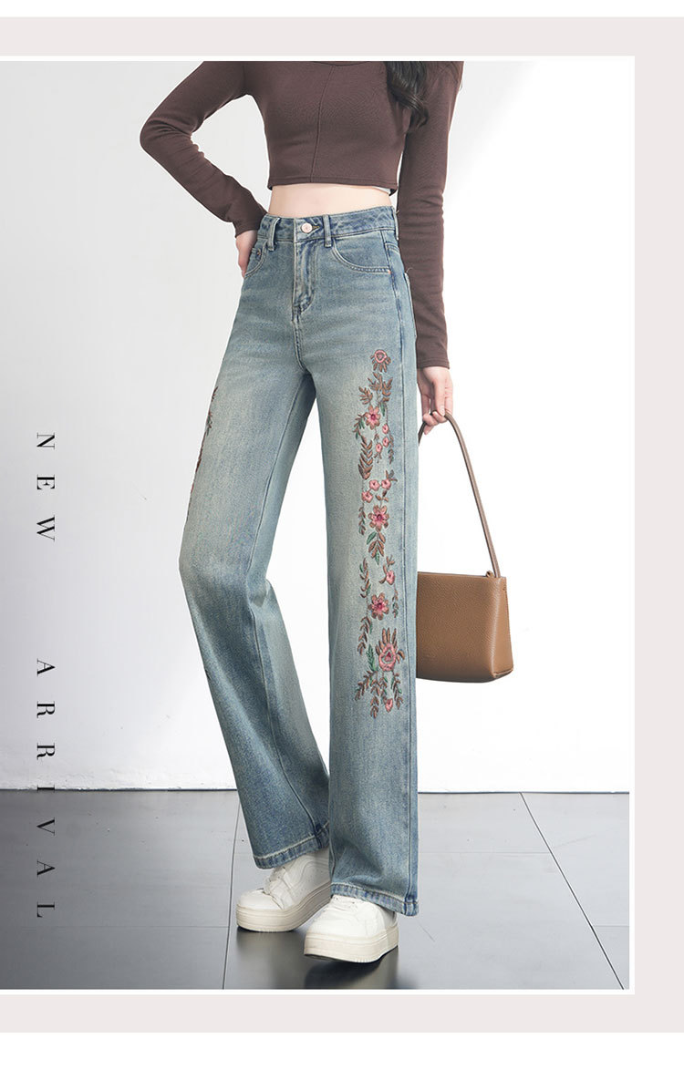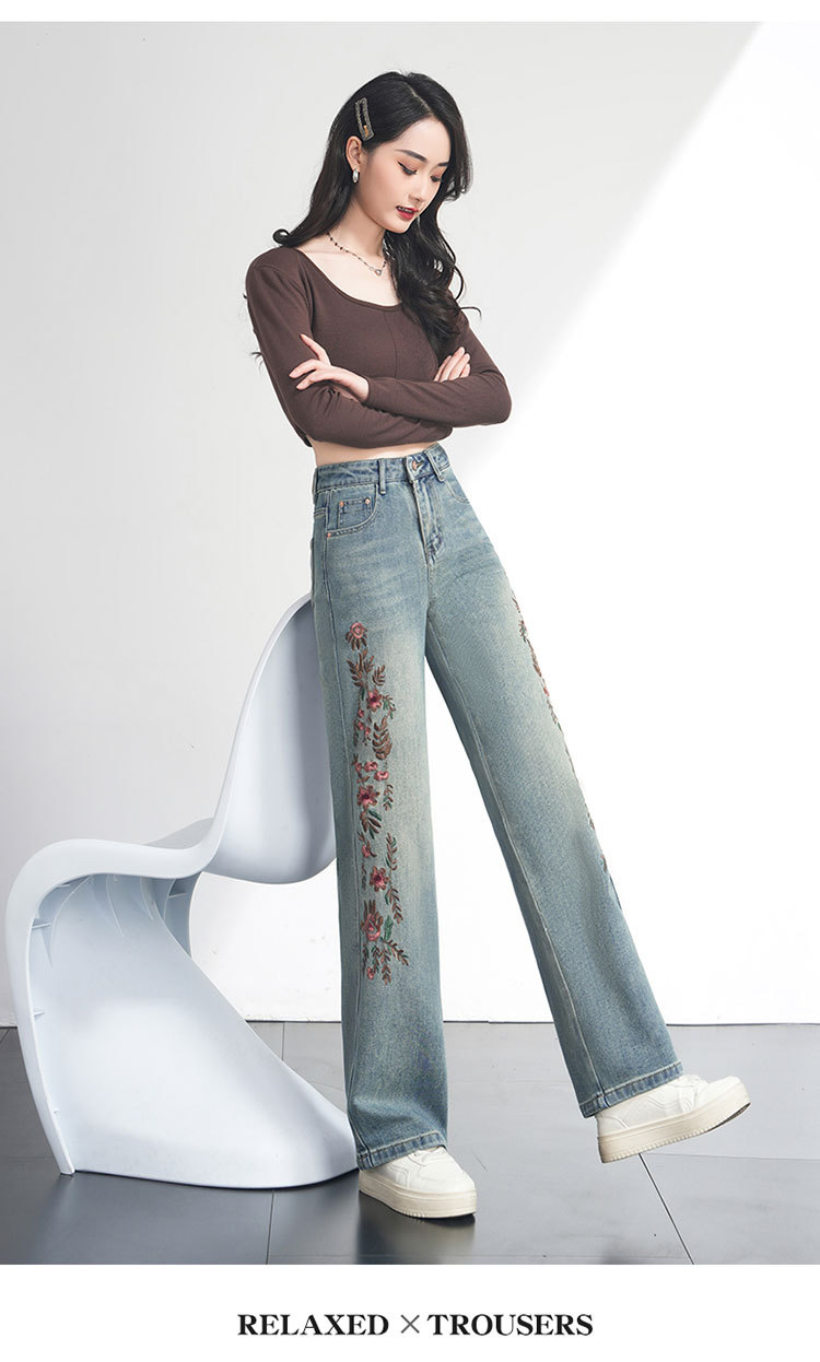 国风绣花时尚牛仔直筒裤垂感修身2025年春夏款MYX-1228-L