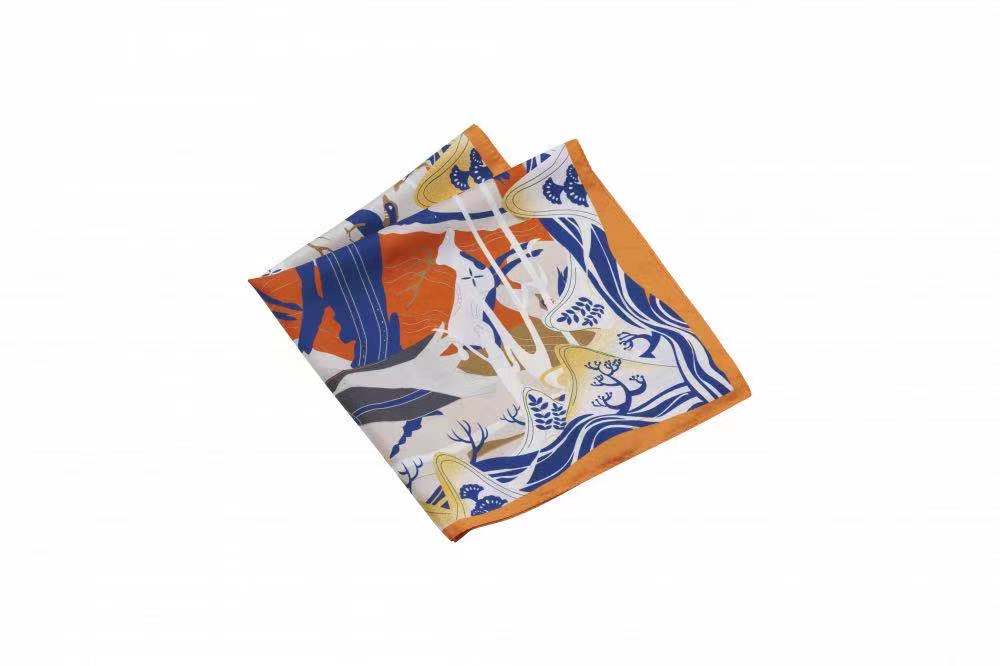 方巾为12姆米斜纹绸,质感密实,垂坠感好。