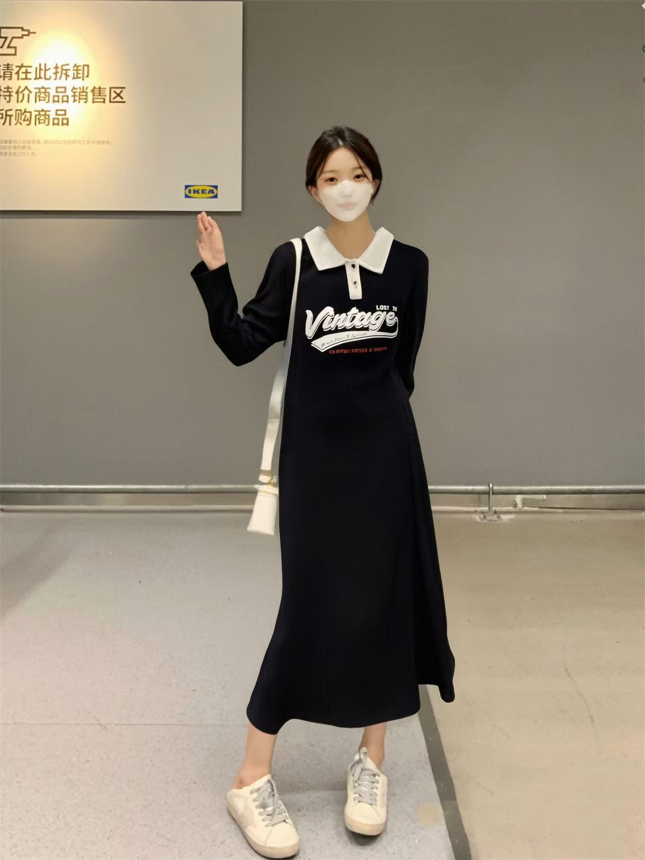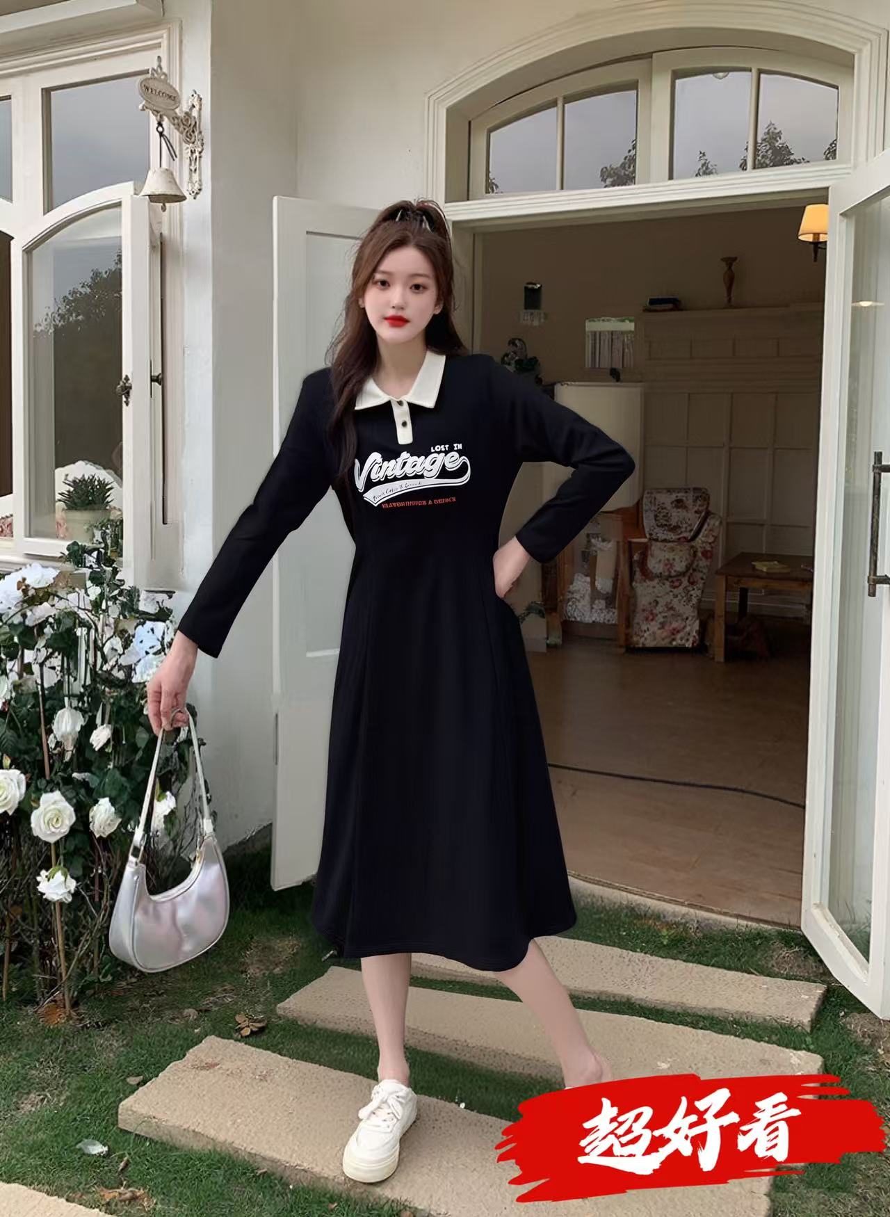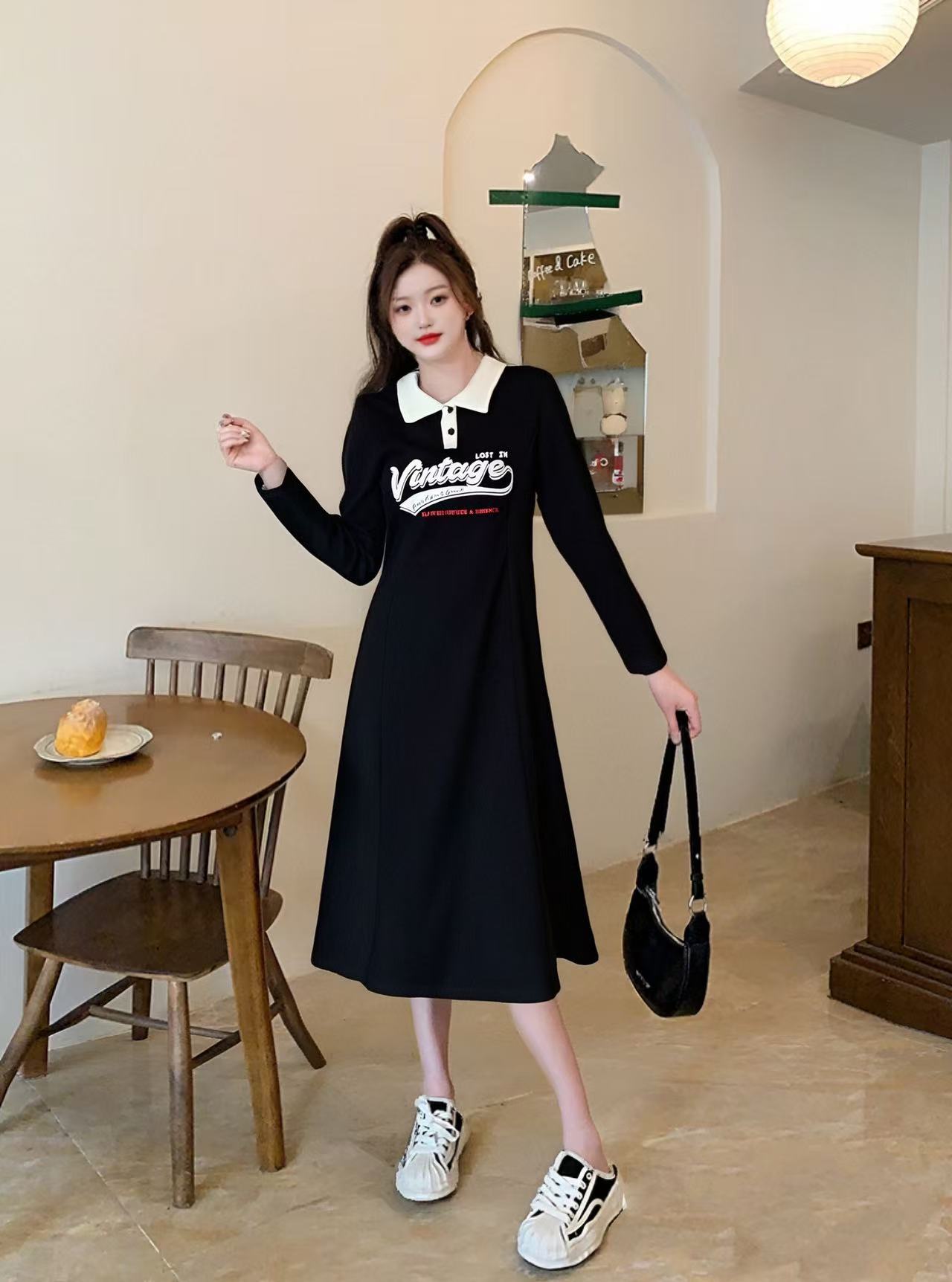 双十二福利!【诗铭洛可】XC7818连衣裙翻领POLO拼色长袖品质裙