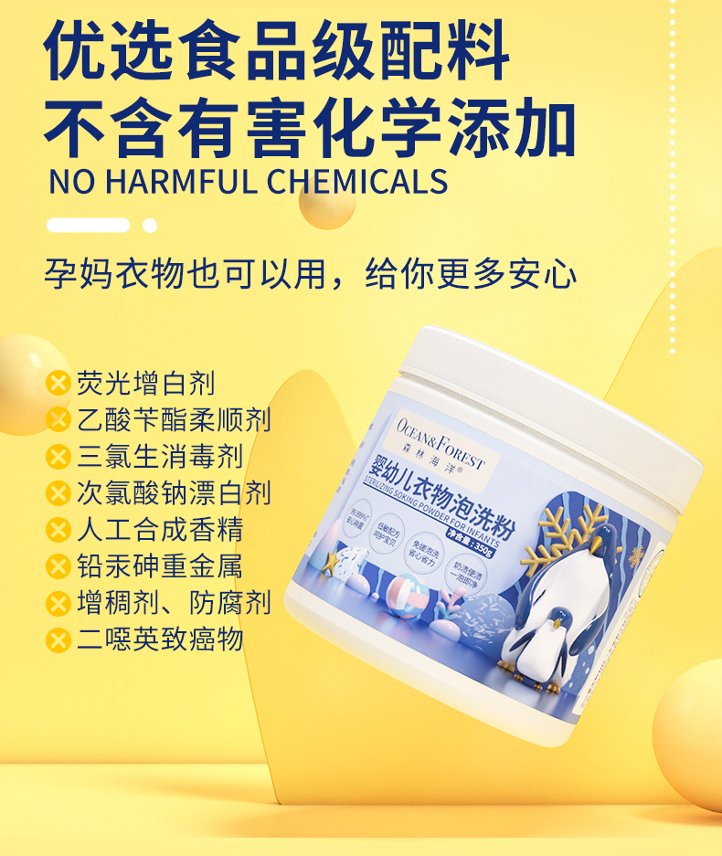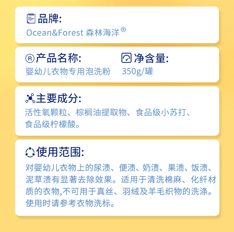 森林海洋 婴幼儿衣物泡洗粉宝宝有氧洗衣粉抑菌免搓洗天然无香精