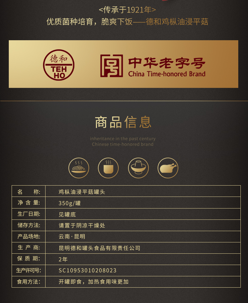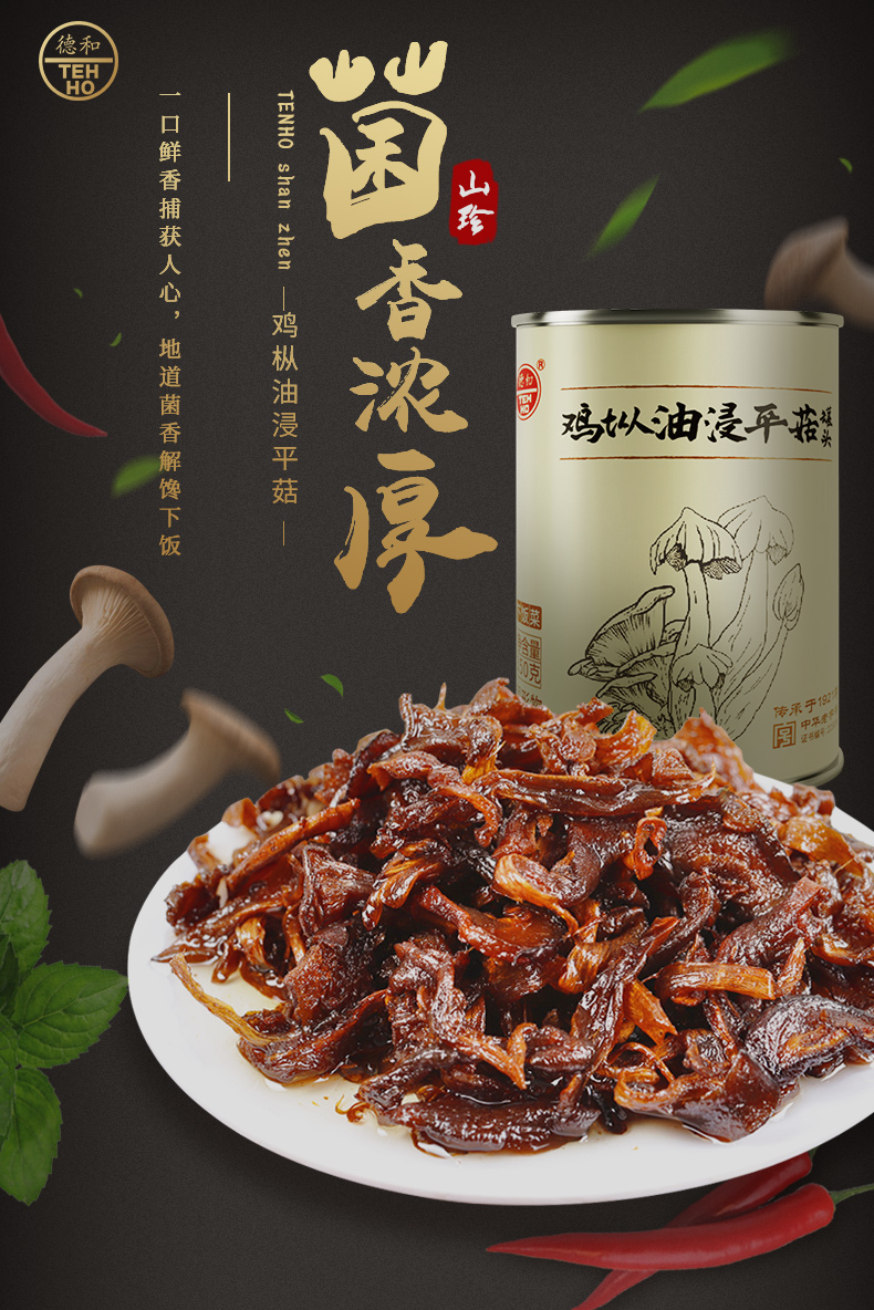 德和鸡枞油浸平菇350g/罐 即食菌子下饭菜 云南特产#云南菌子