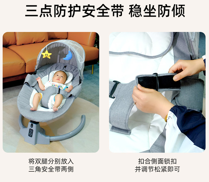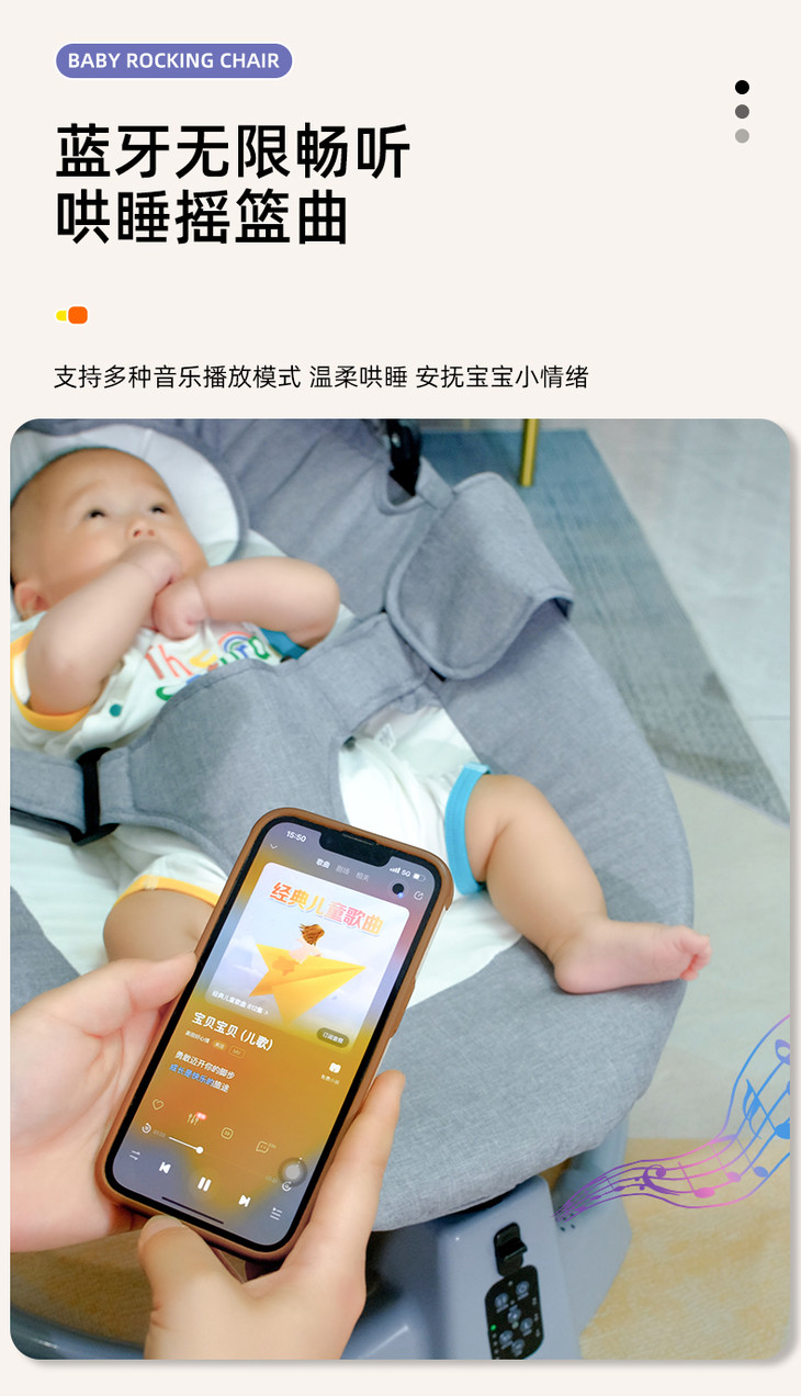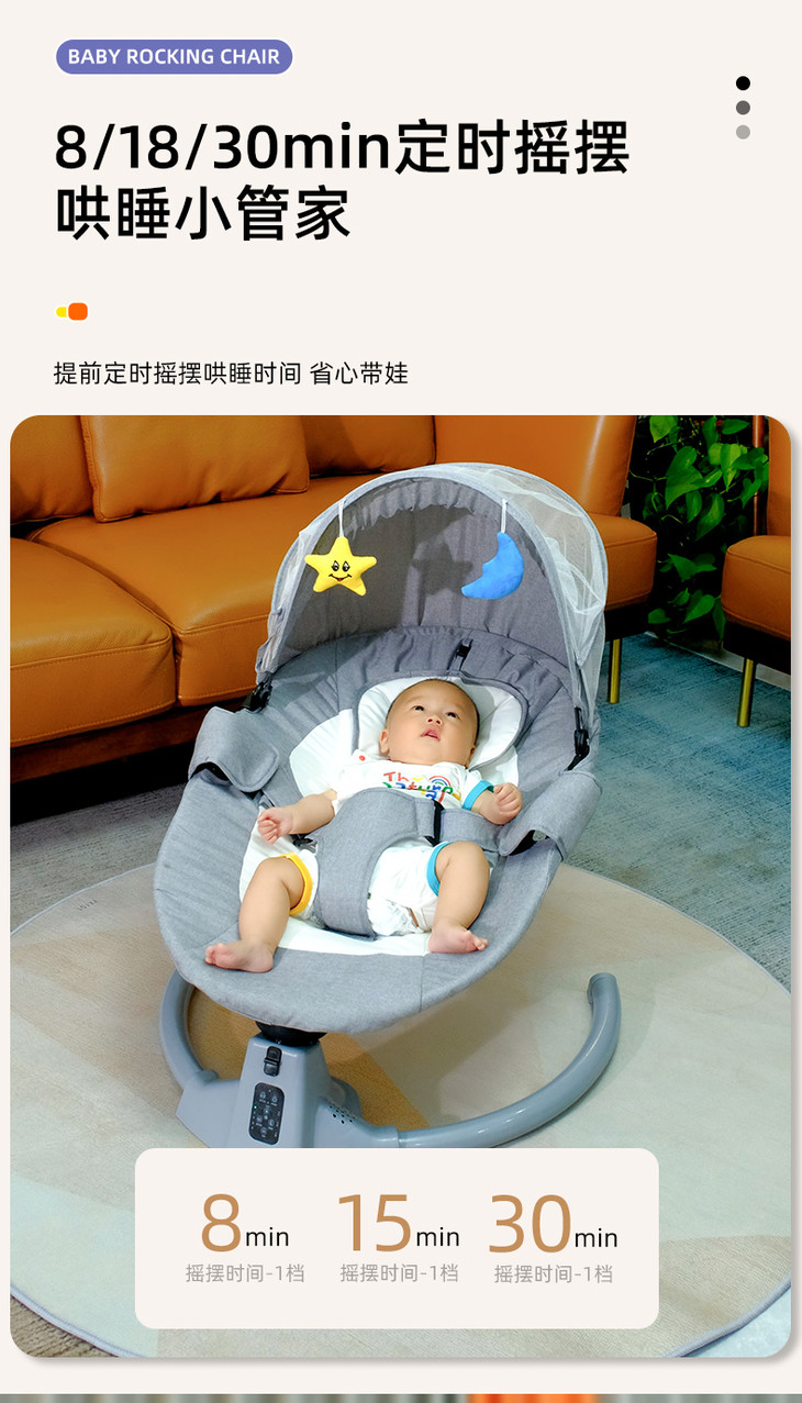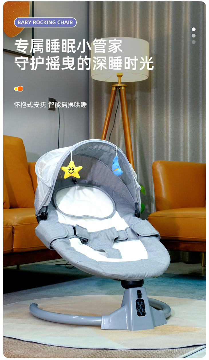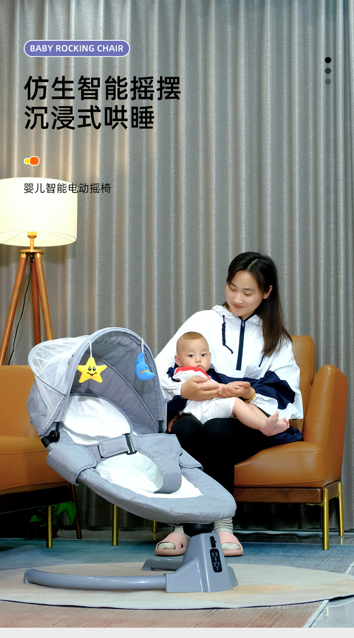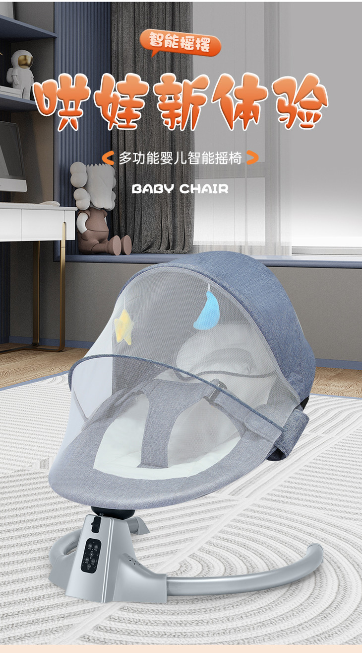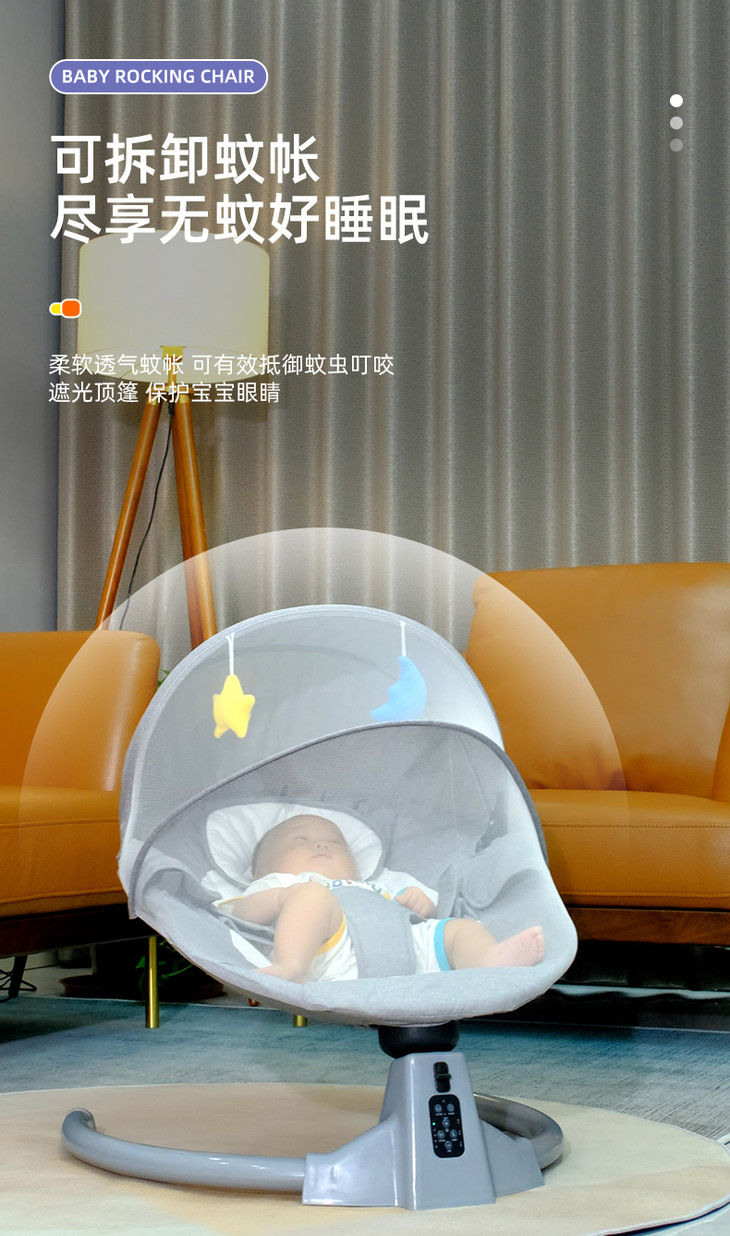 (带遥控电动)婴儿电动哄娃神器摇摇椅哄睡摇床安抚游戏蚊帐多配置可定时带蚊帐