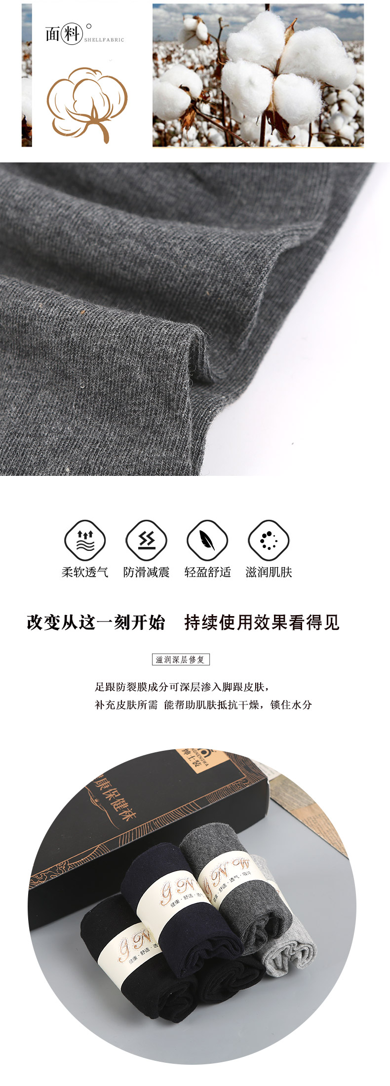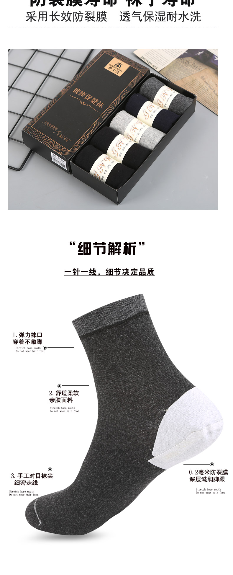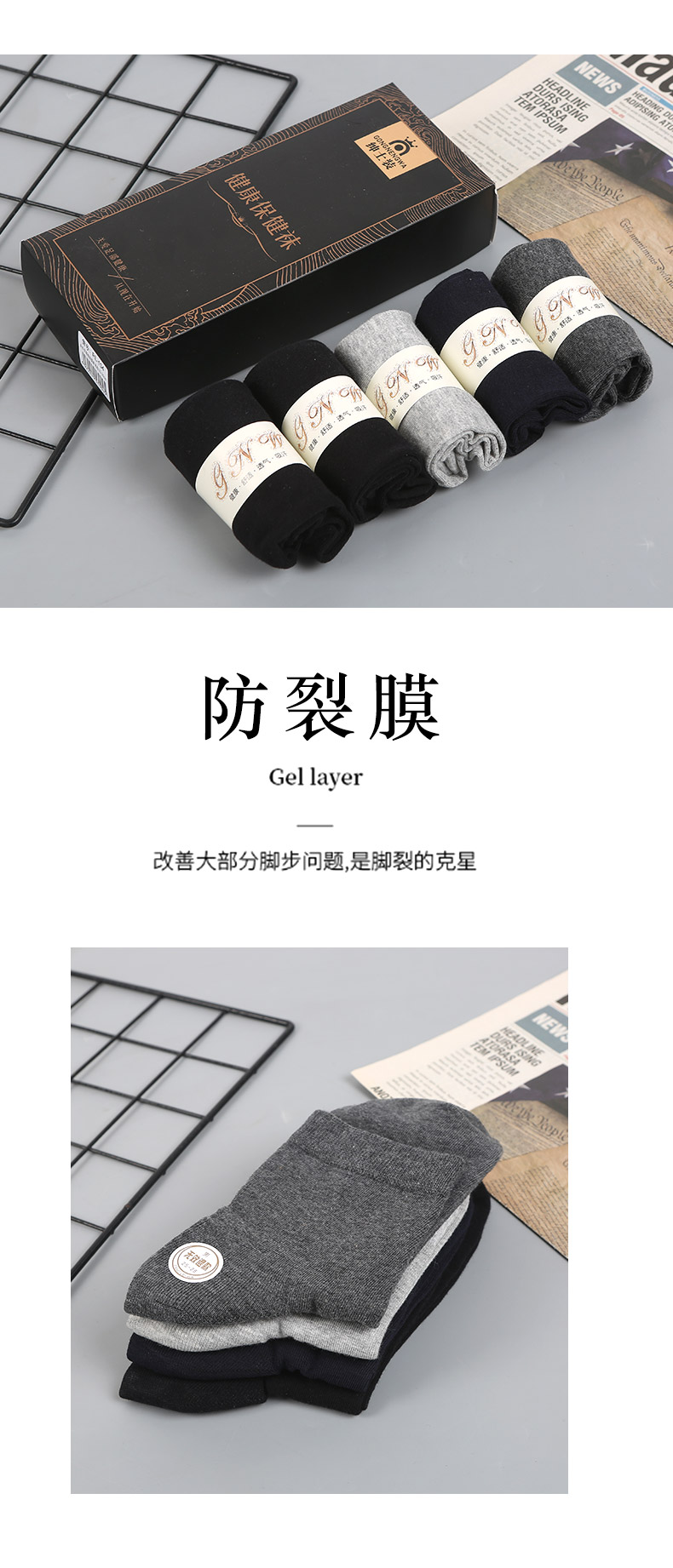 男士防裂袜足跟型 中筒袜 纯色乳胶防裂四季款棉袜 缓解干裂脚跟疼痛 告别脚裂脚干烦恼 5双/盒装
