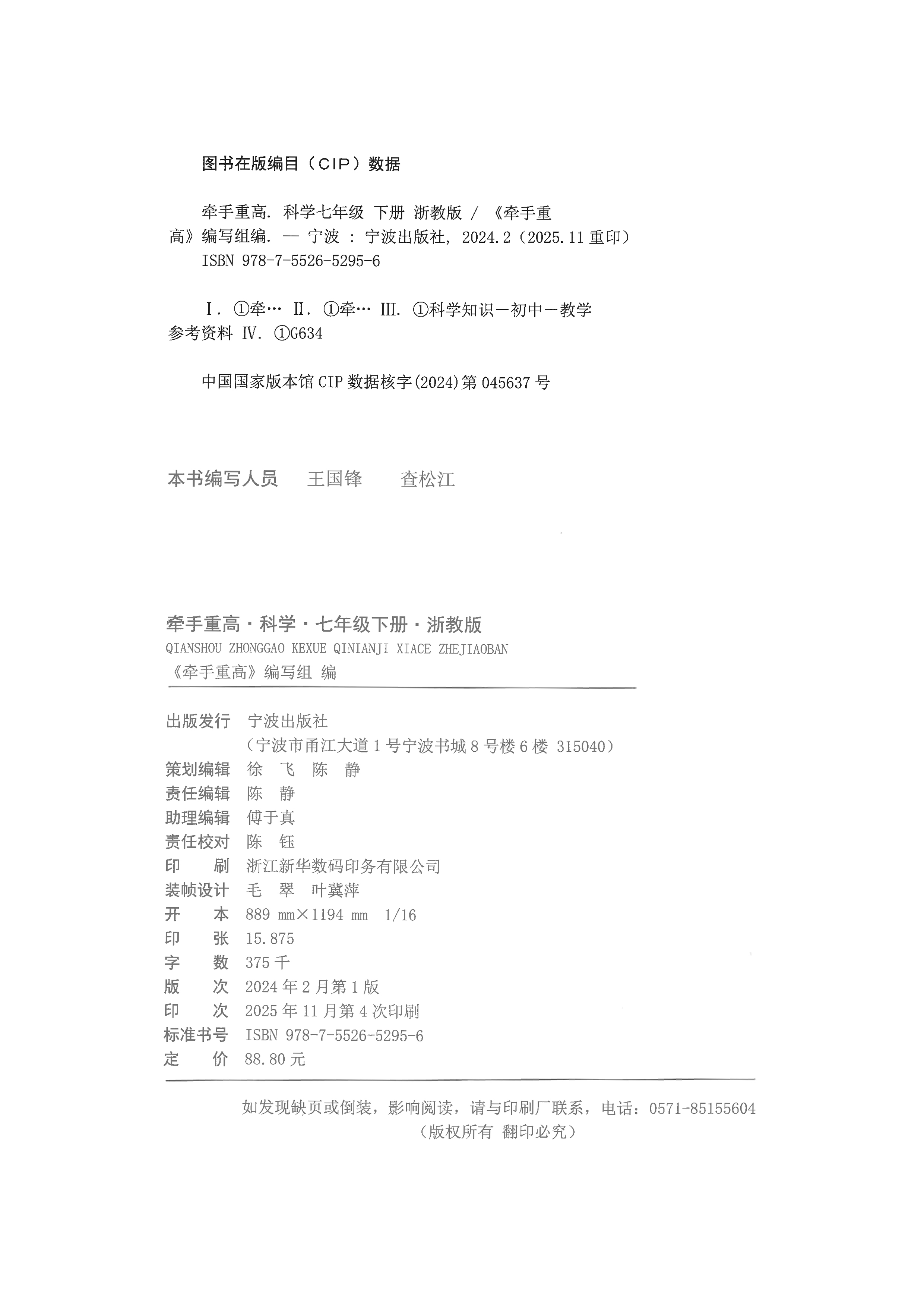 【七折优惠】25新版 牵手重高科学七年级下册 浙教版 提分笔记教辅一本通