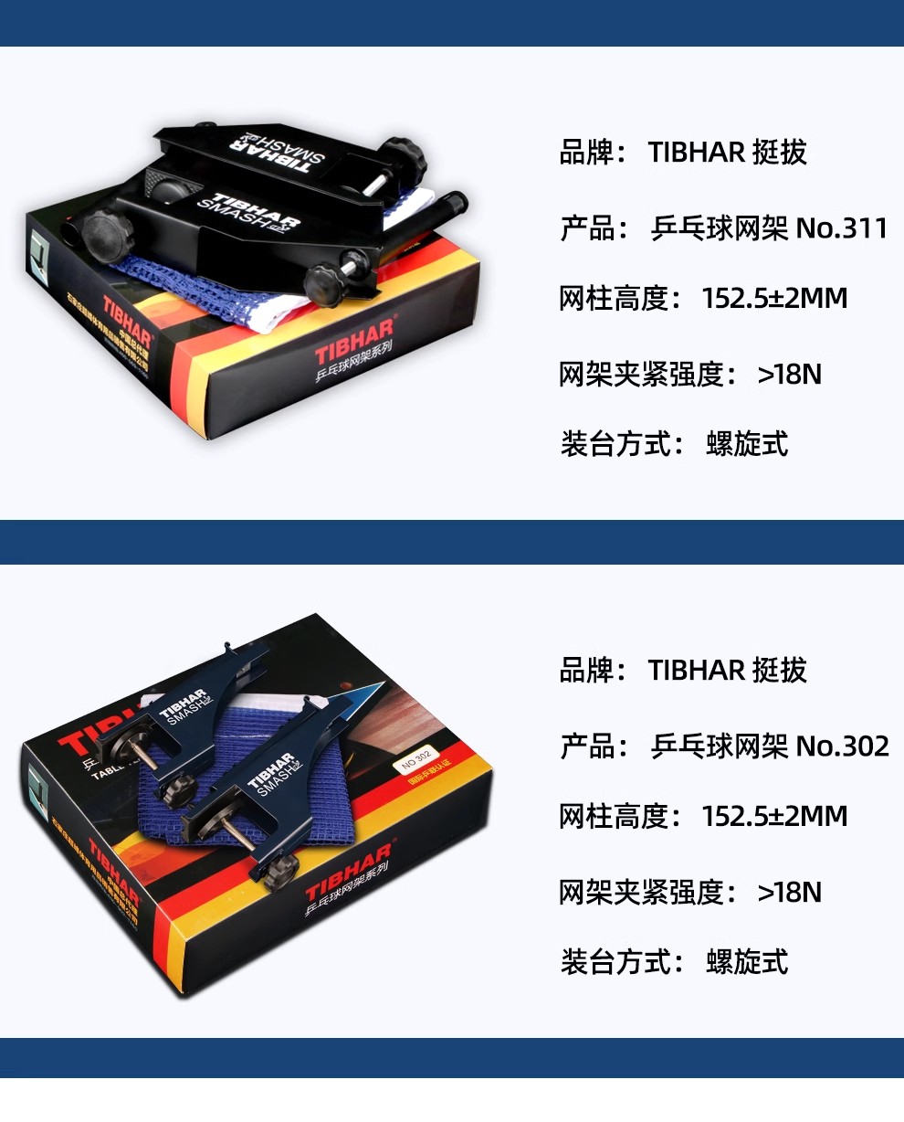 挺拔TIBHAR乒乓球网便携式外网标准乒乓球台网架带网网架通用球网