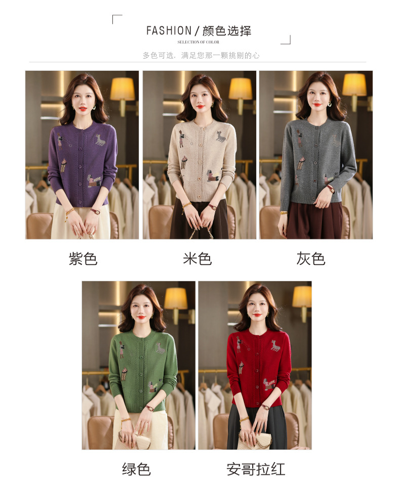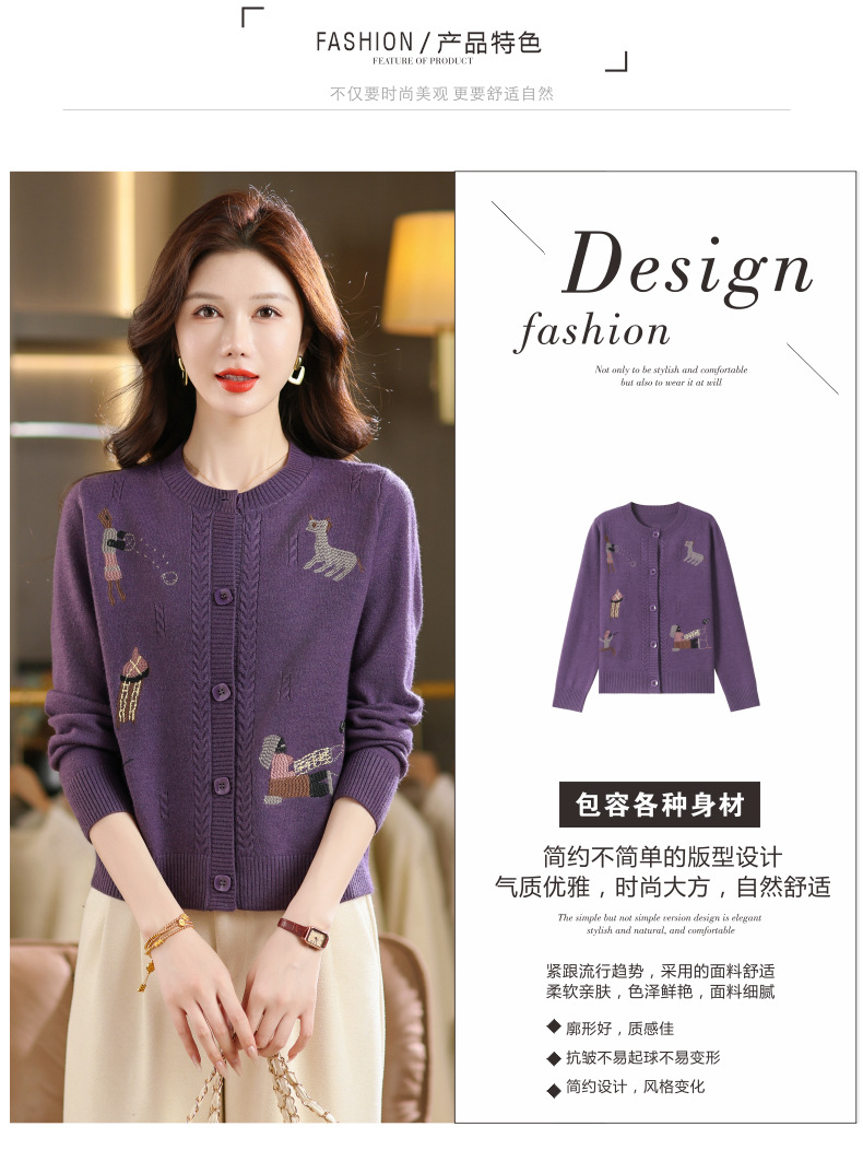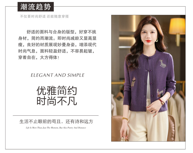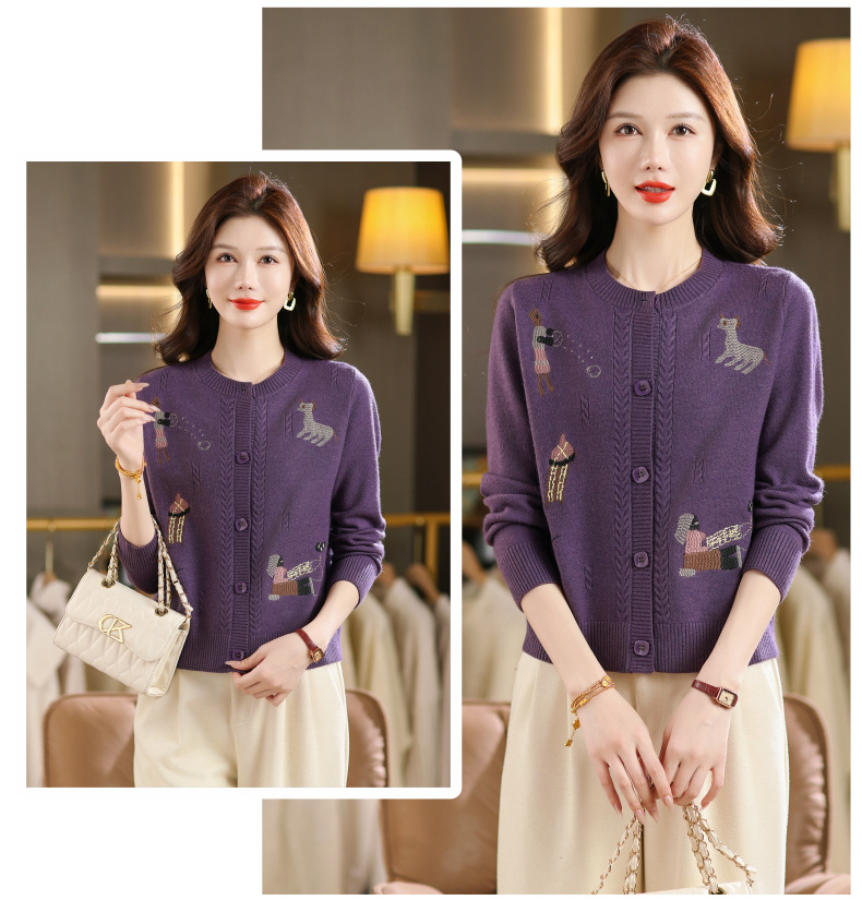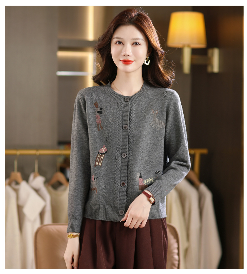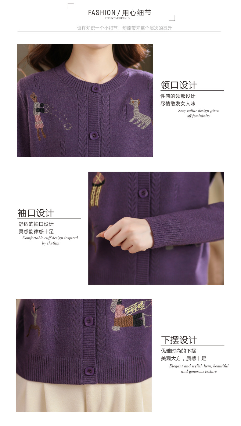 CC高腰短款刺绣针织开衫女士长袖外搭秋装2025新款圆领毛衣外套