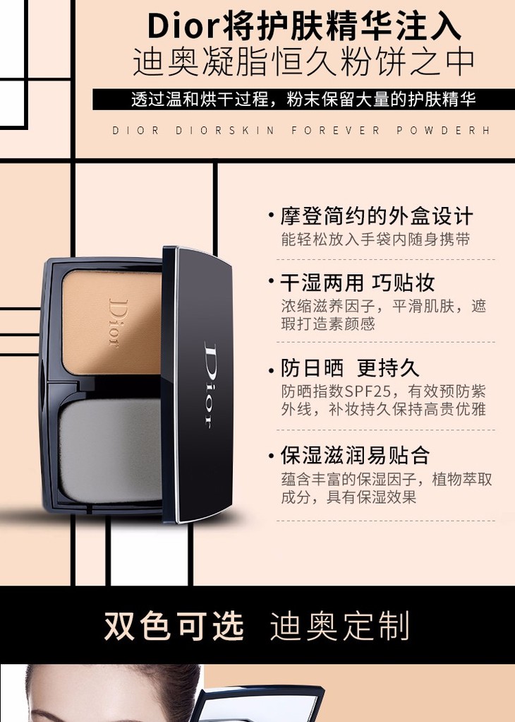 法国迪奥Dior凝脂恒久钻肌保湿遮瑕粉饼10g