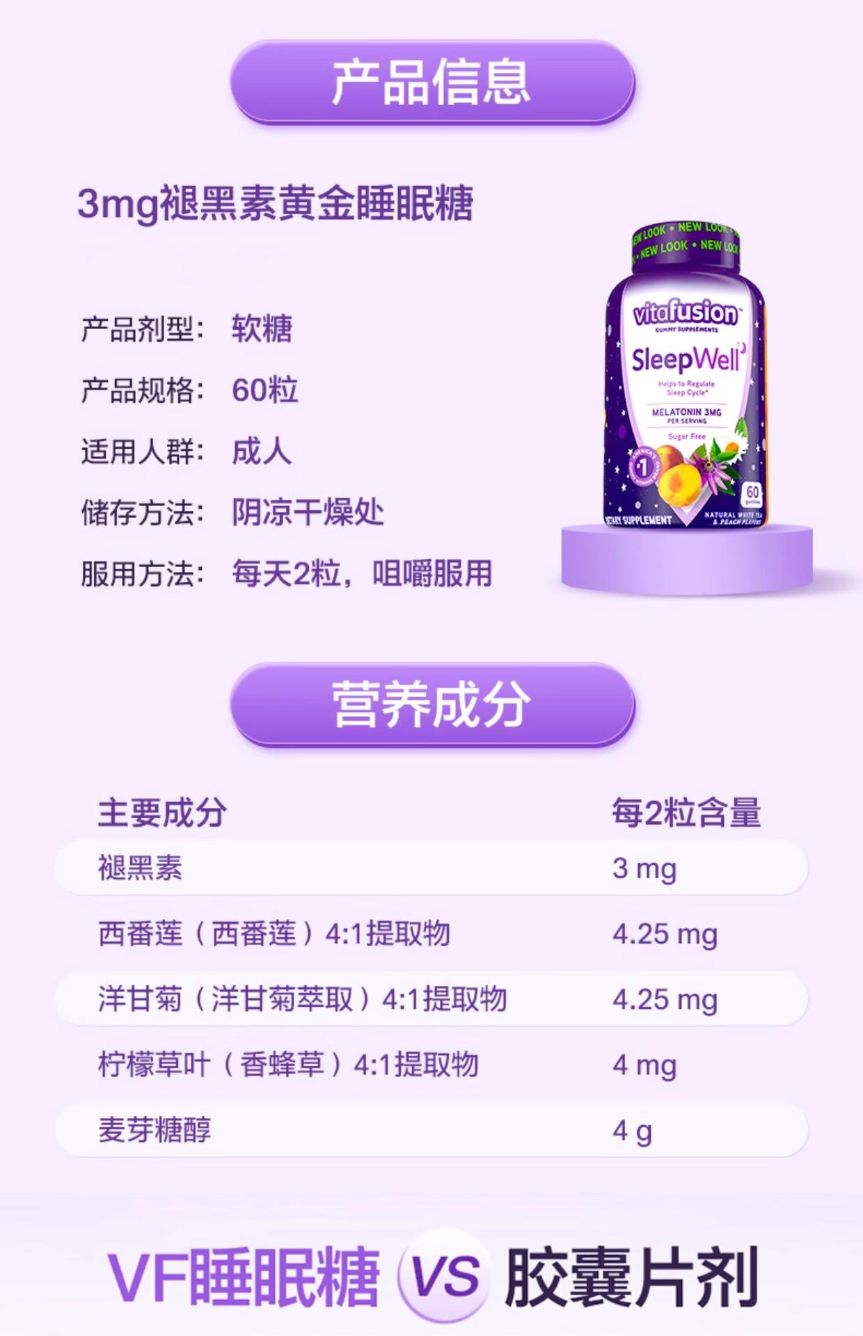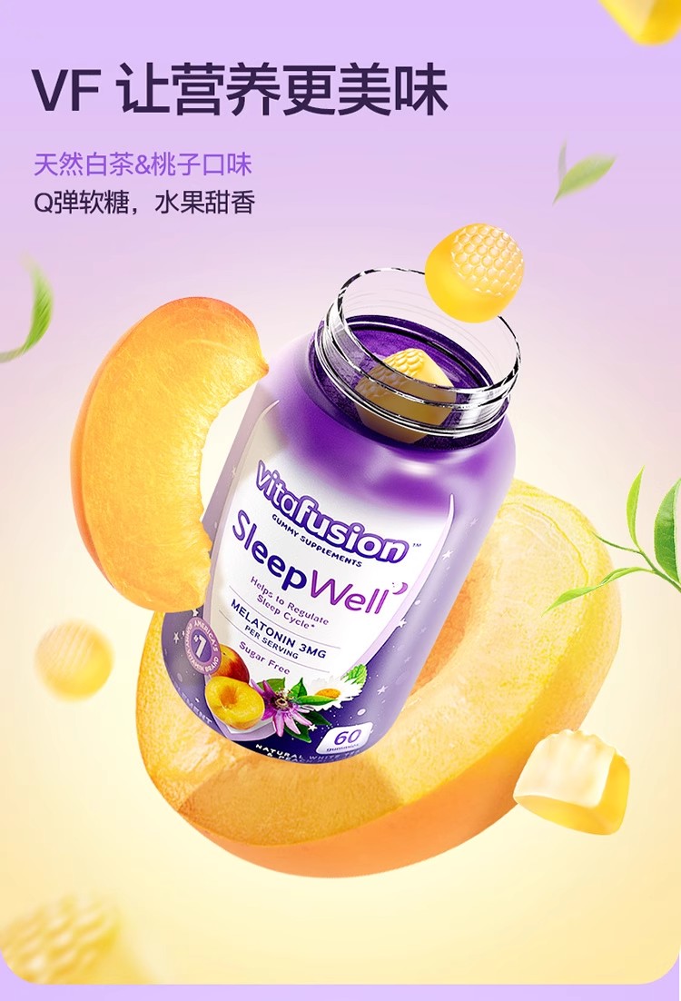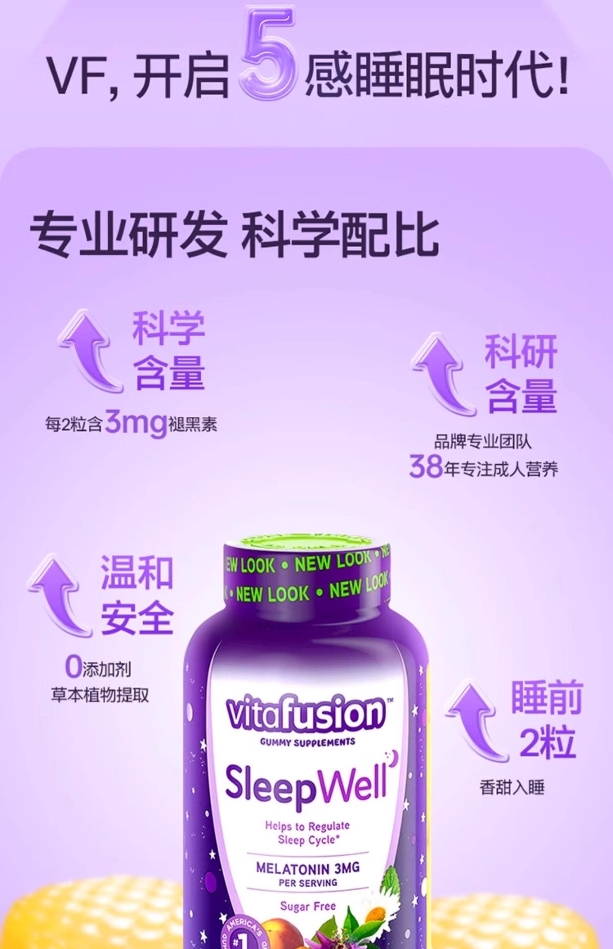 【保税直发】包邮包税 27年5月 美国vitafusion 成人褪黑素软糖 60粒-新包装