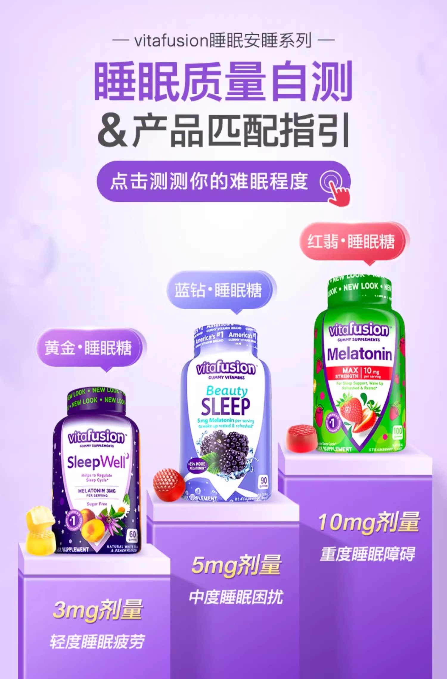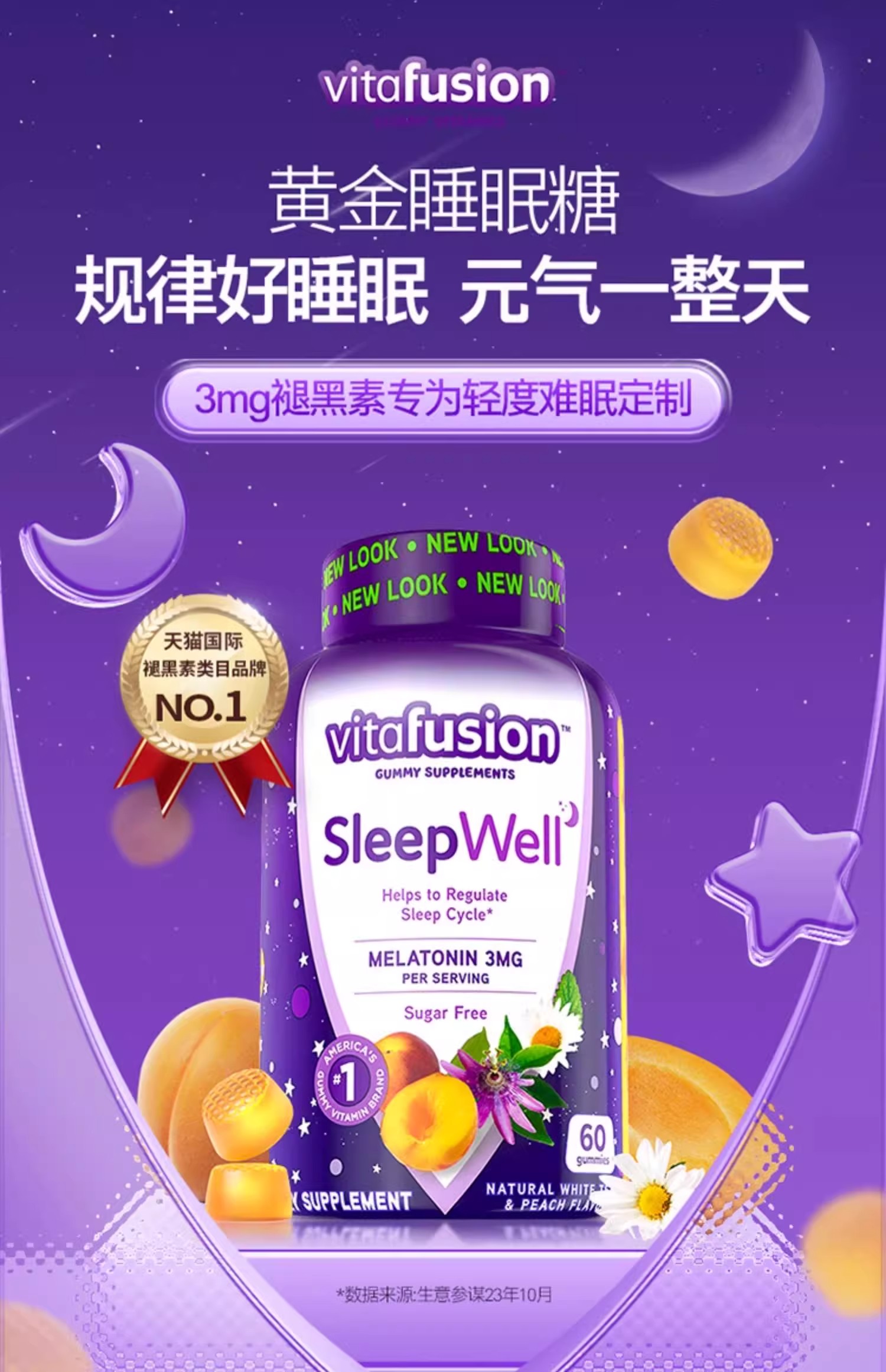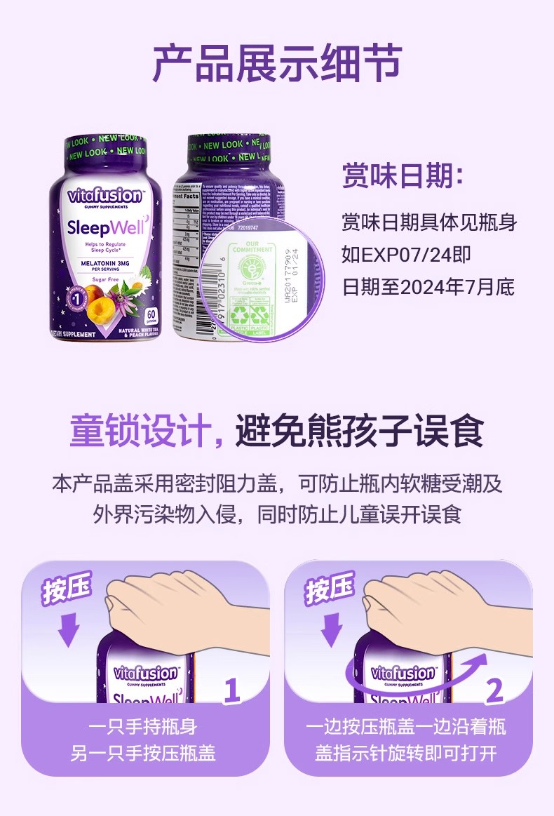 【保税直发】包邮包税 27年5月 美国vitafusion 成人褪黑素软糖 60粒-新包装