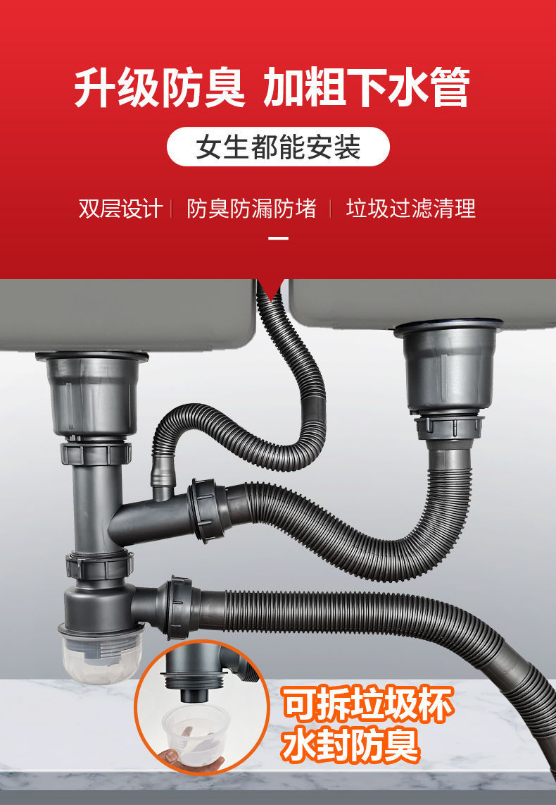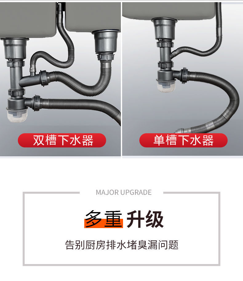 厨房水槽下水器套装洗菜盆防臭下水管排水管单槽双槽不锈钢落水器
