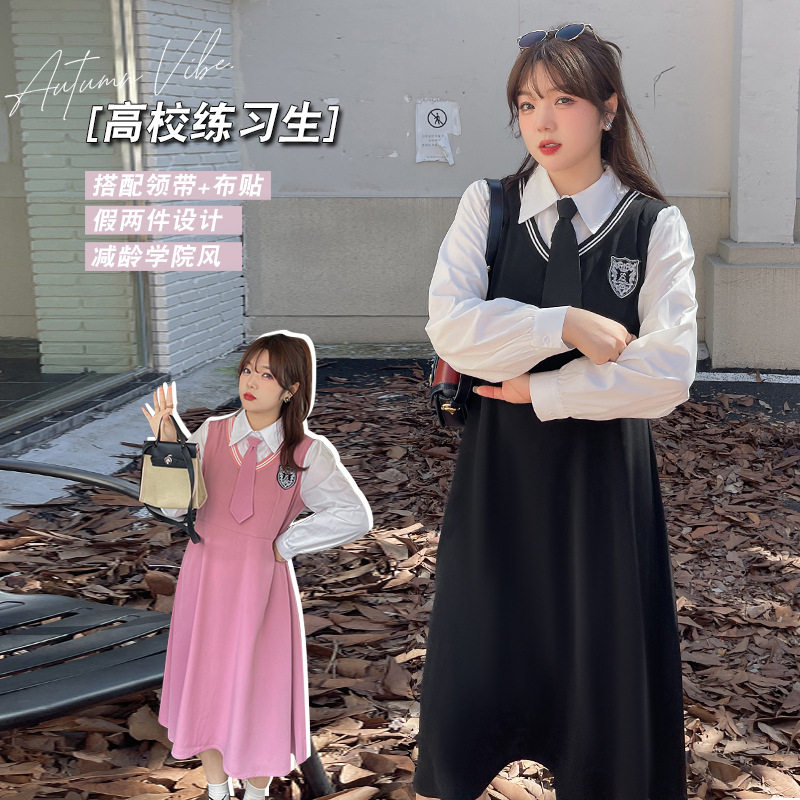 双十二福利 【诗铭洛可】XCA0028连衣裙假两件甜美学院风裙子
