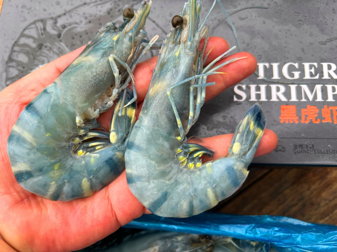 看着还活蹦乱跳的黑虎虾进去速冻机!!