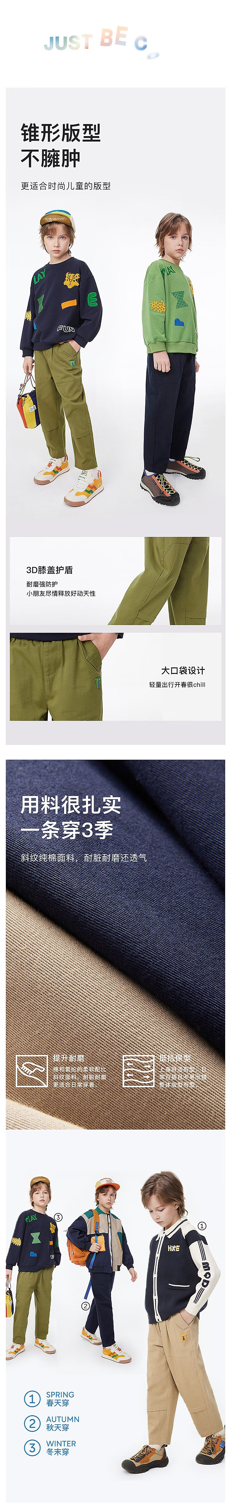 【MQD】童装男童休闲裤新款复古潮酷儿童户外工装风运动长裤子