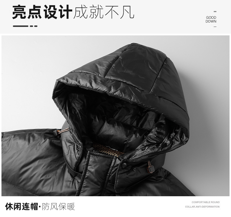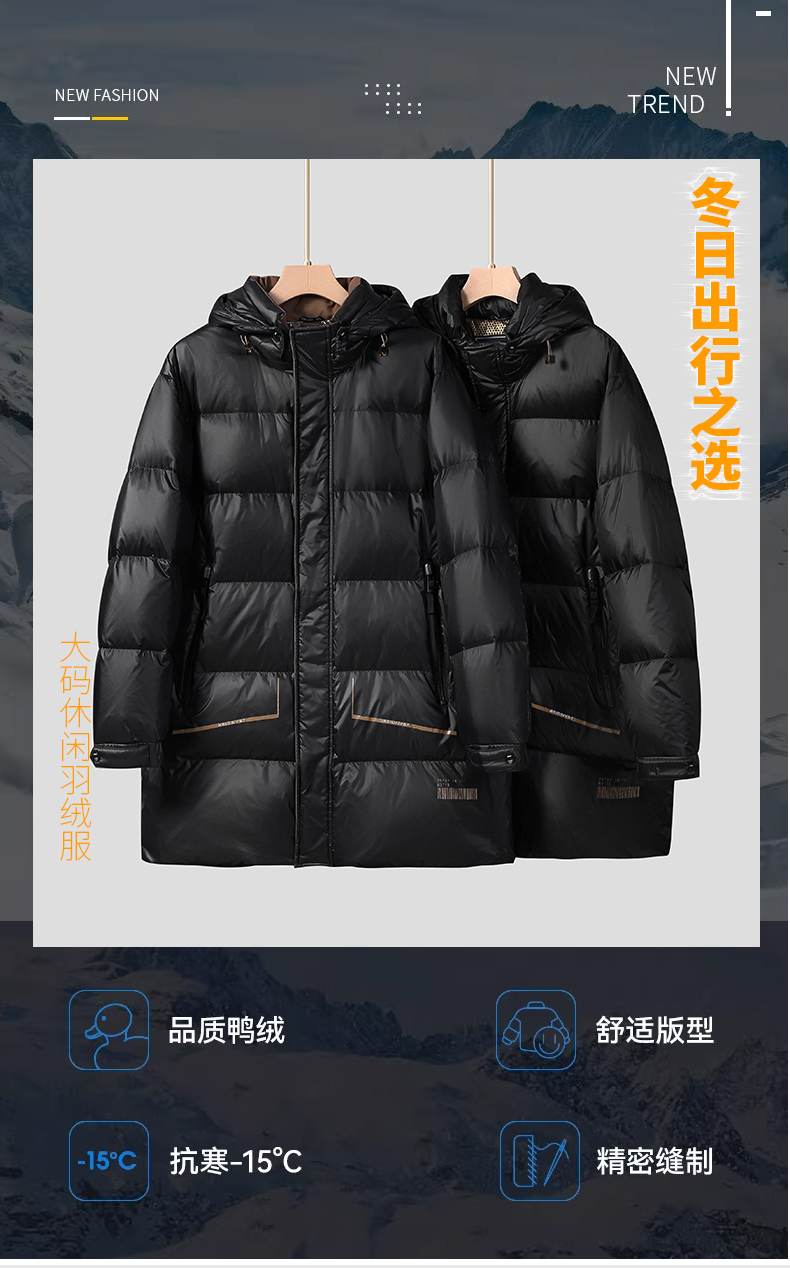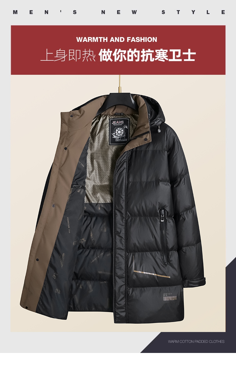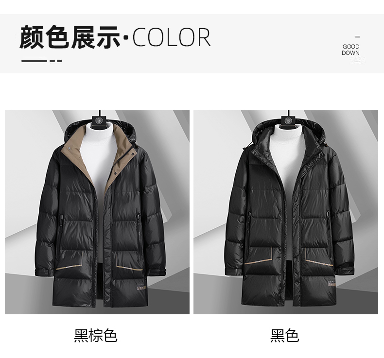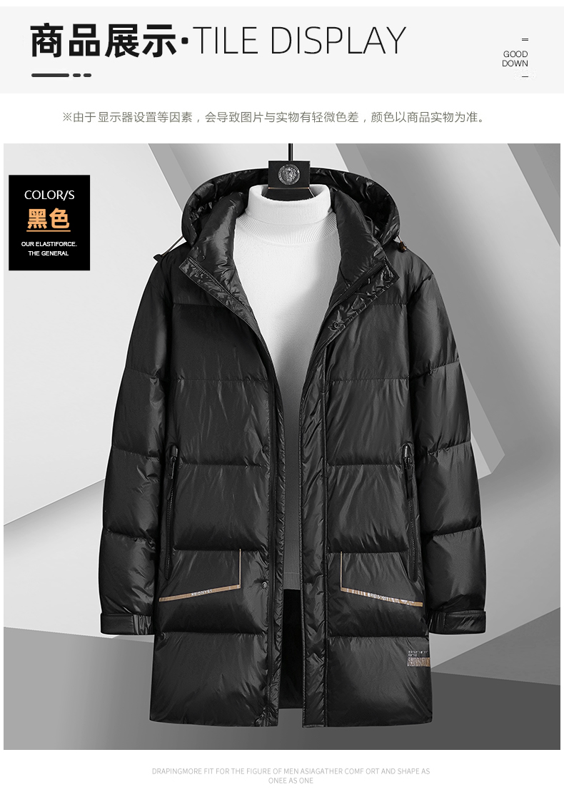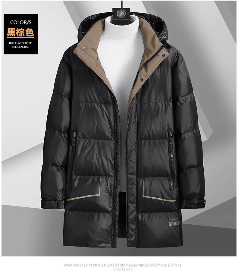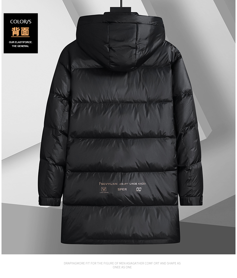 【白鸭绒】【新款DSF】大依优型大码连帽黑金羽绒服白鸭绒羽绒服中长款保暖加厚加肥加大上衣男士外套胖子