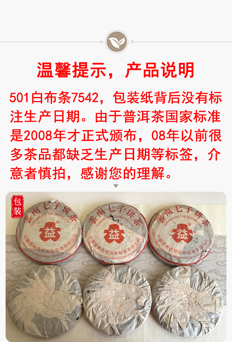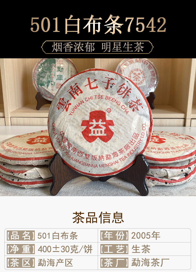 2005年勐海茶厂501白布条7542 烟香好仓真品 白布条版面比较多只认内票有限责任公司 随机发货 品牌明星茶支持鉴定真品好茶