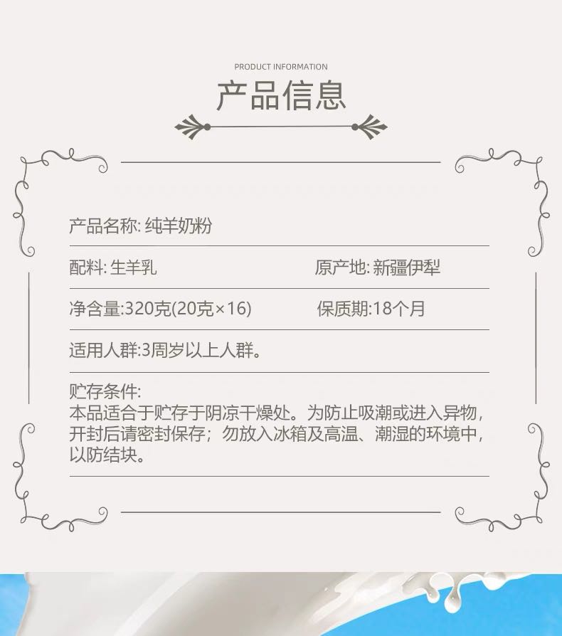 纯羊奶粉 新疆食尚丝路320g /盒(16袋*25g )独立包装 中老年人的健康奶粉