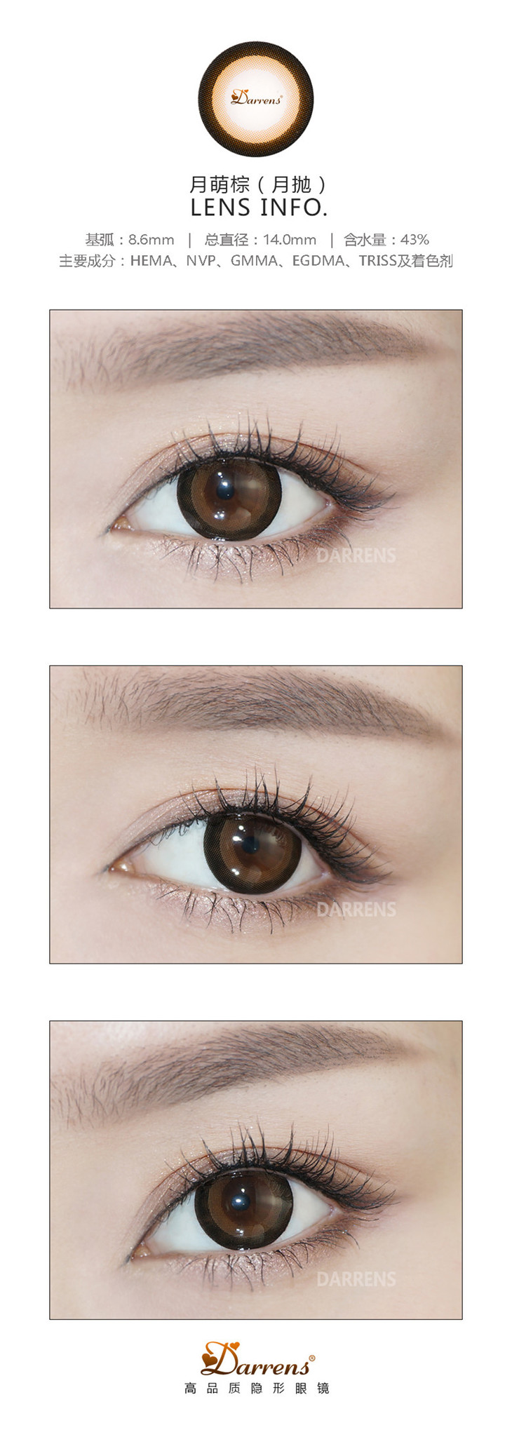 Darrens 月萌系列棕色 月抛一盒3片 无售后