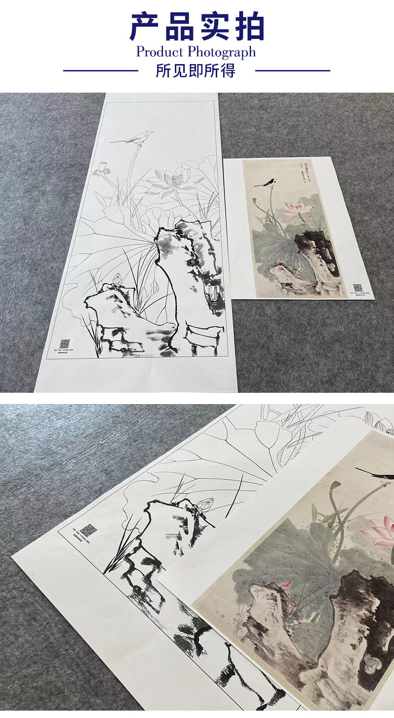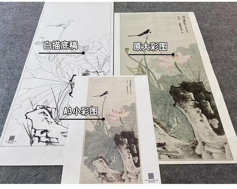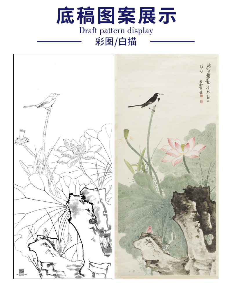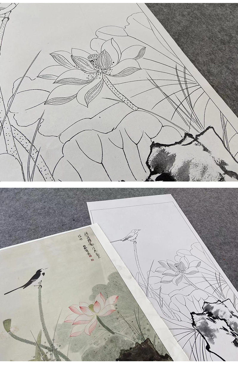 【大彩图】谢稚柳工笔画白描底稿荷花临摹勾线花鸟线稿HN23