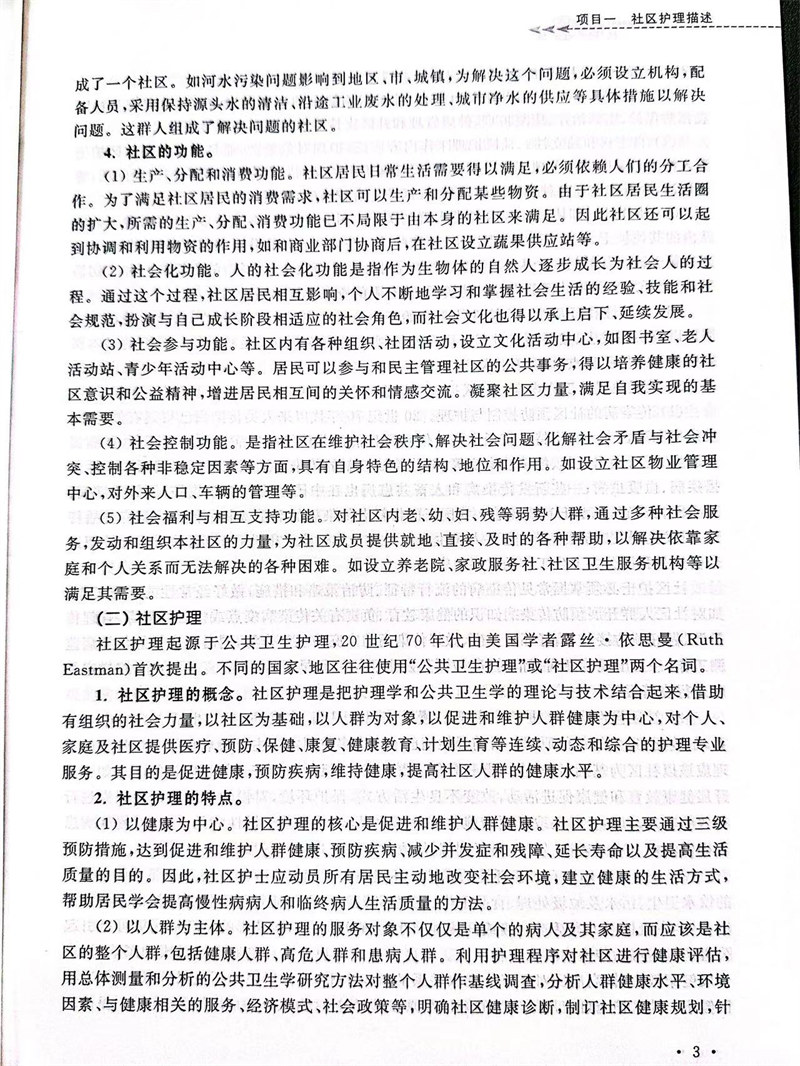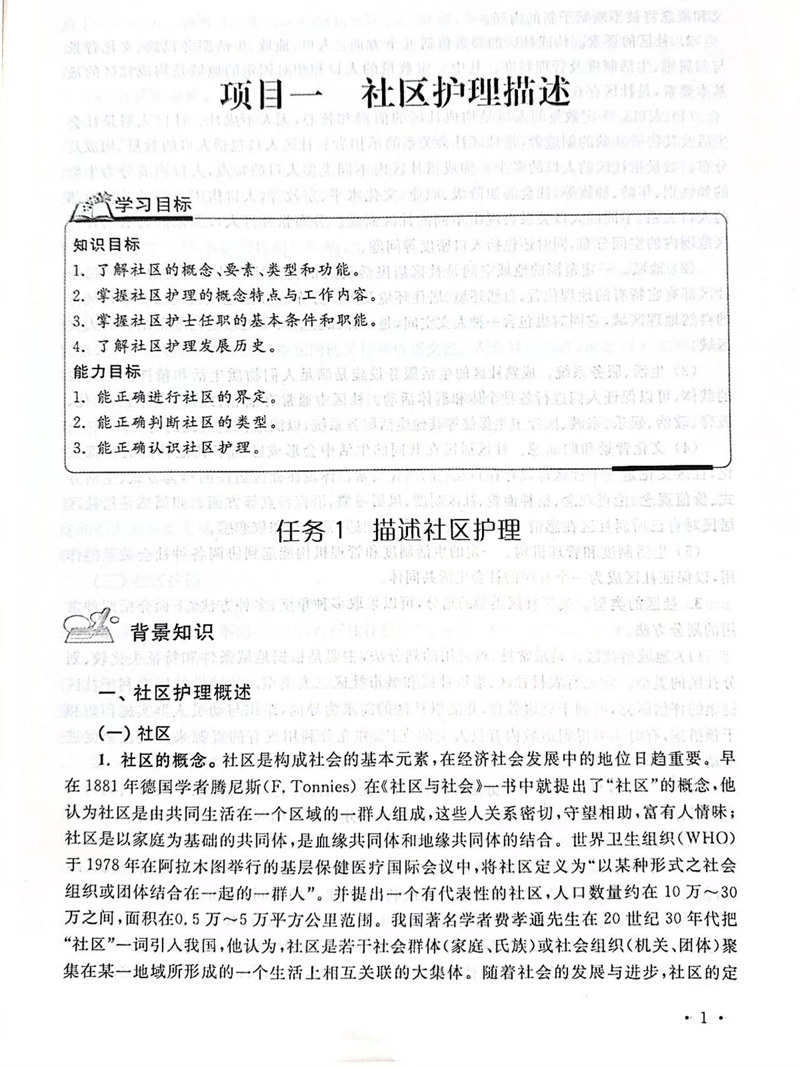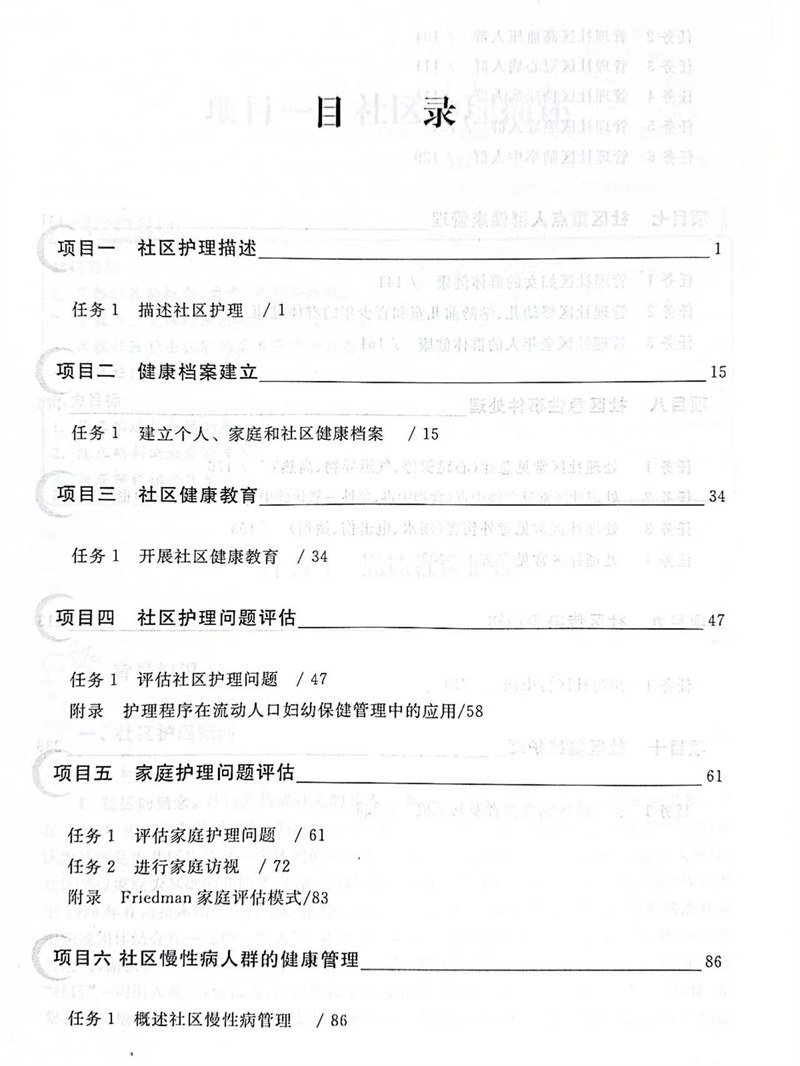 本教材是高职专科层次护理专业的必修课程社区护理的应用性教材,教材的着眼点是使学生掌握在社区护理工作环境中必须具备的基本理论知识、技能和职业素养。通过项目化教学的内容,学生掌握评估社区护理问题;解决家庭护理问题;建立和管理社区居民健康档案;进行针对性的健康教育;处理社区常见意外伤害和急症;预警社区传染病等技能,同时进一步强化学生的沟通、管理和评判思维等综合职业能力。教材以社区案例展开,以护理程序为工作方法,设计工学结合的教学形式,有利于学生学用结合,提高岗位适应能力。