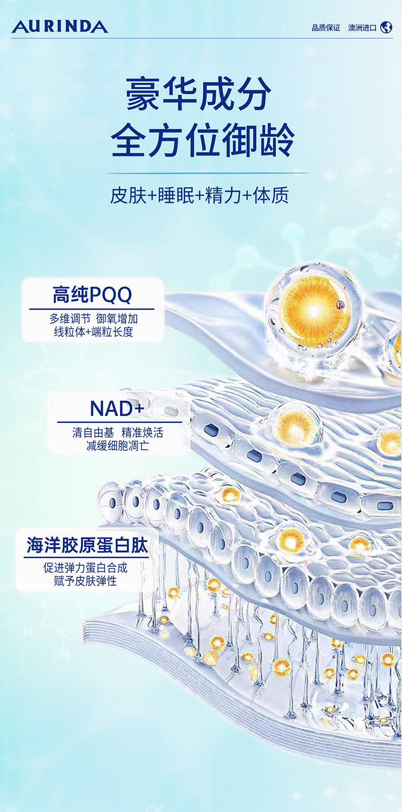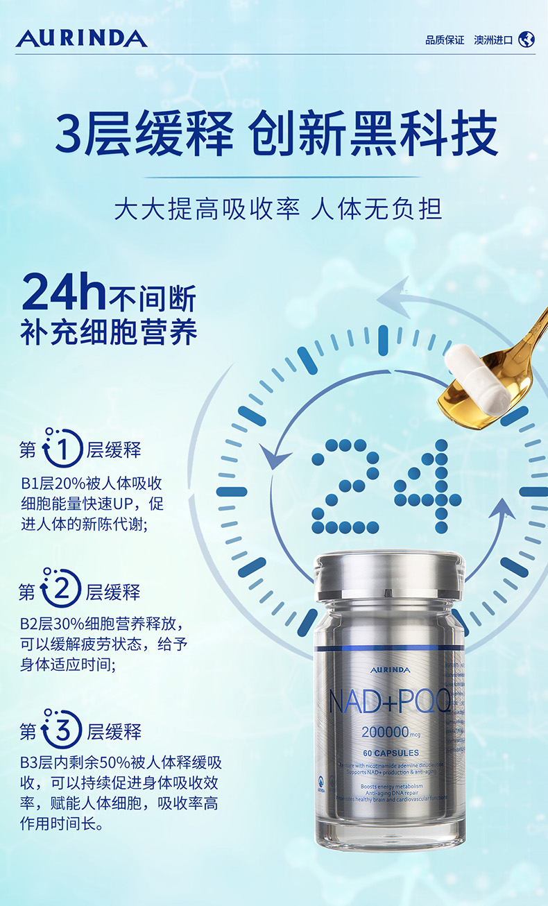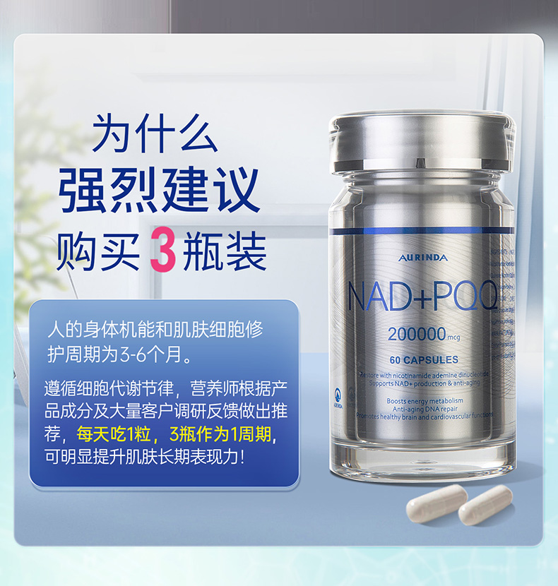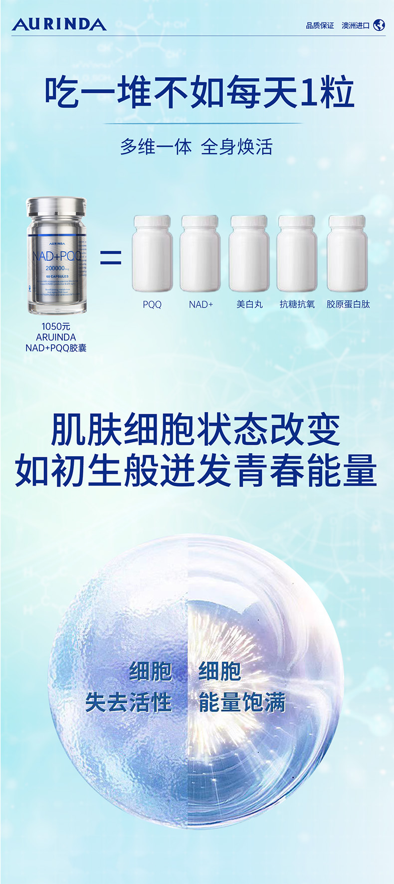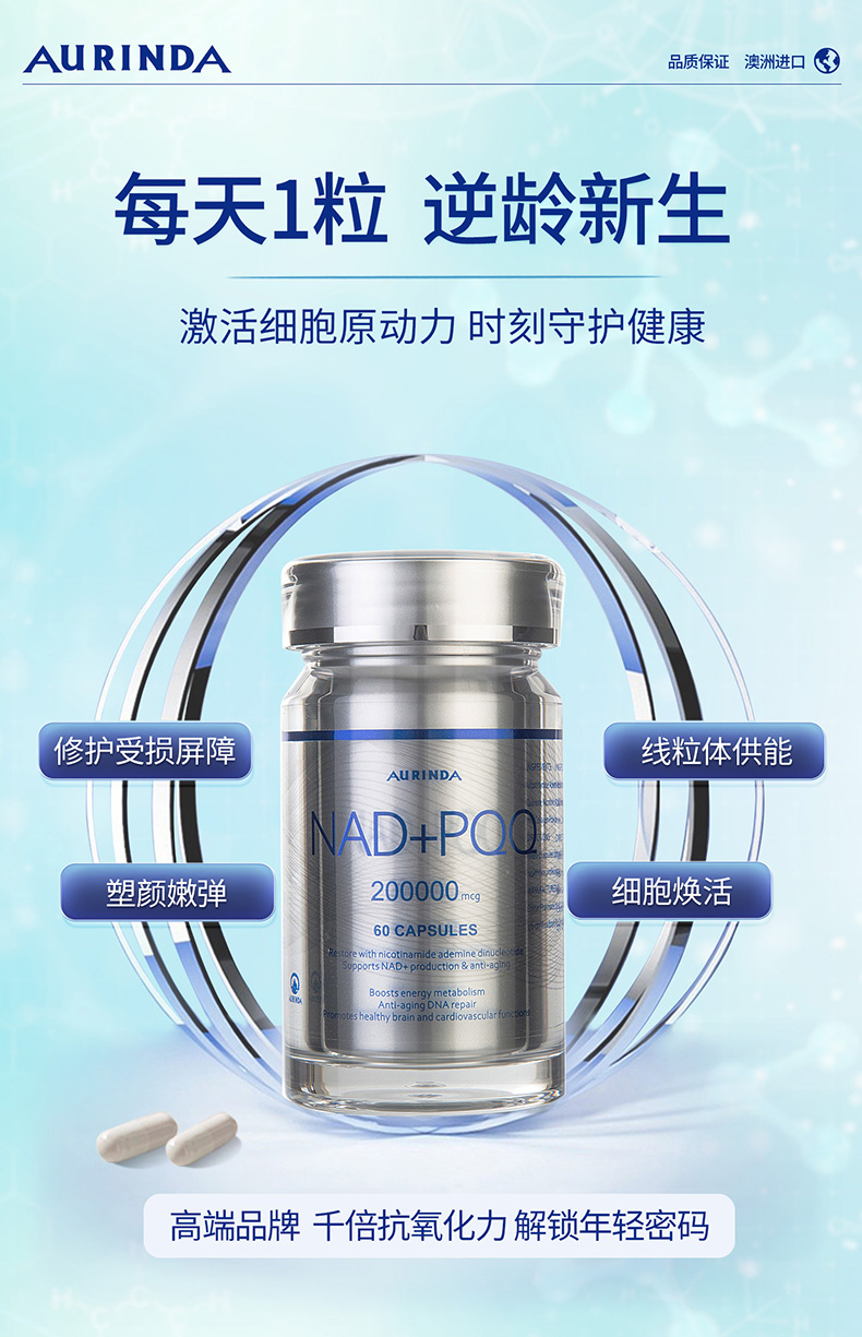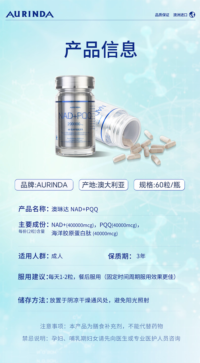 【半价清仓】Aurinda澳琳达澳洲进口升级细胞能量NAD+PQQ*1瓶营养补充剂羊胎素