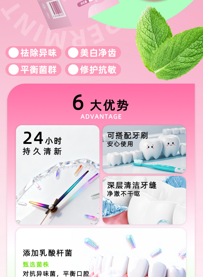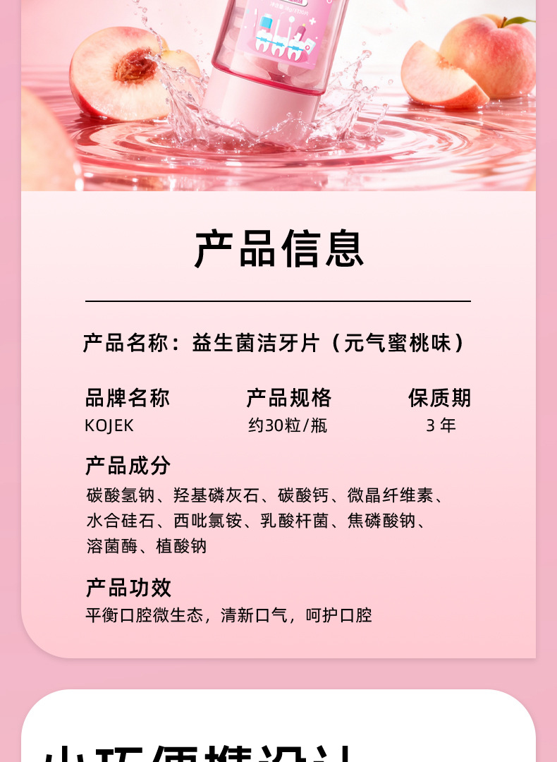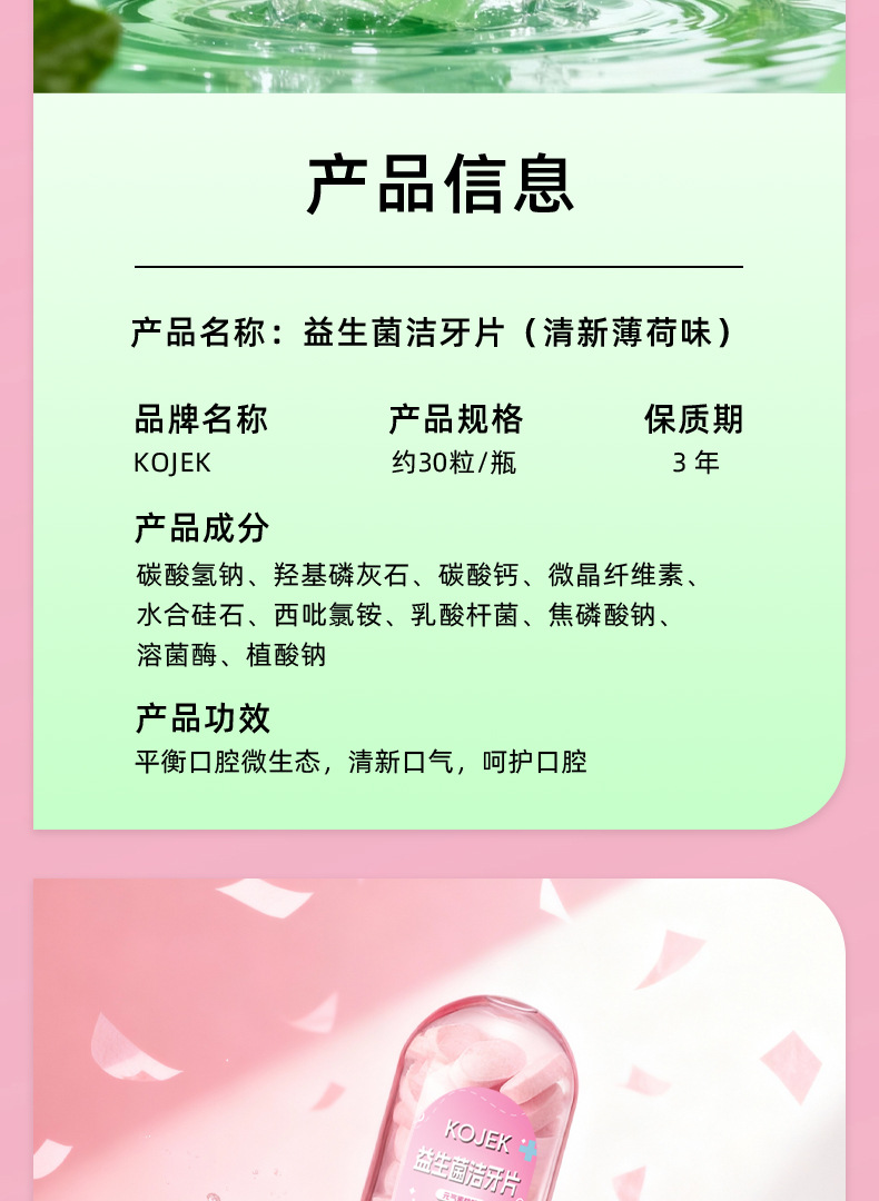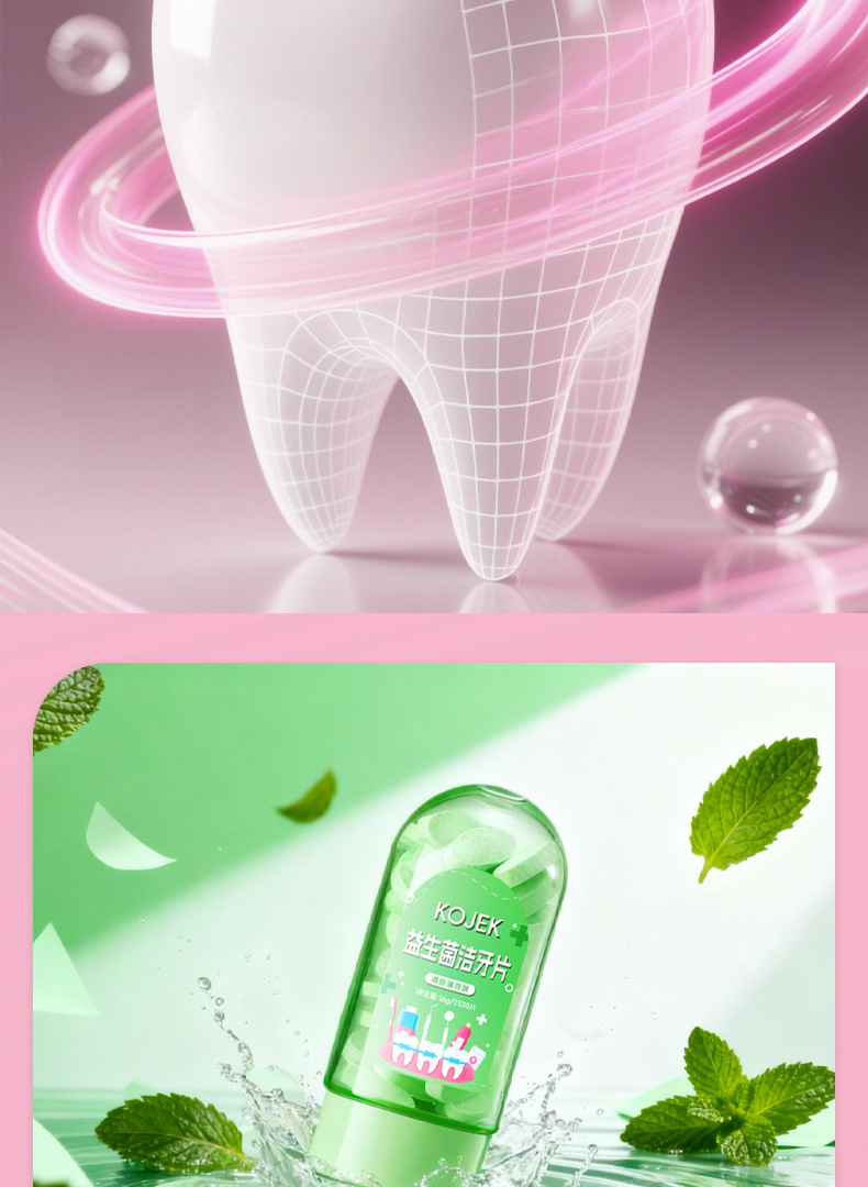 【高效清新!一嚼搞定】KOJEK益生菌洁牙片 持久留香美白去渍牙菌斑溶菌酶小苏打固体牙膏。xa