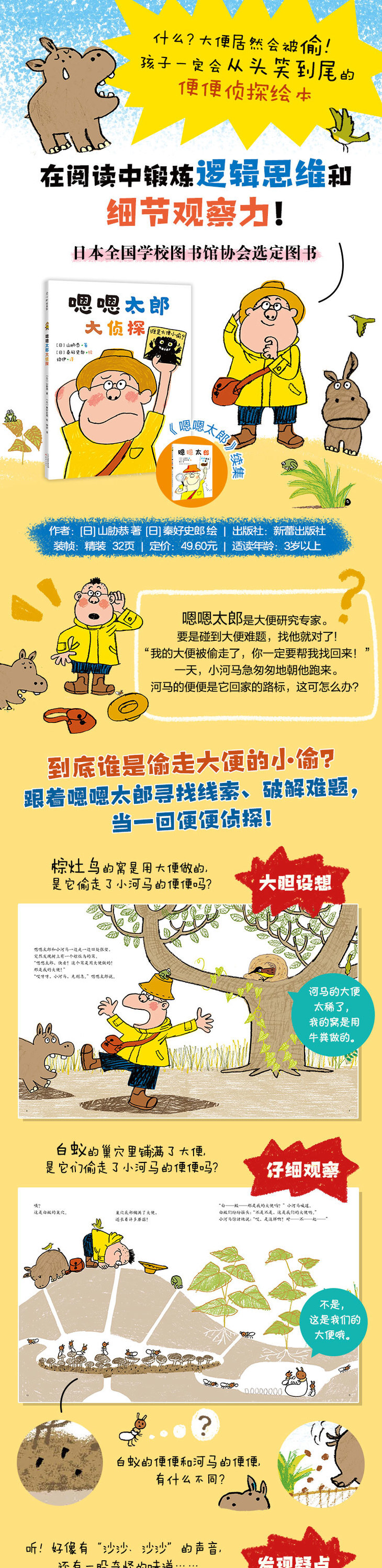 ★《嗯嗯太郎》续集,孩子一定会从头笑到尾的便便侦探绘本。在阅读中锻炼逻辑思维、细节观察力和想象力。