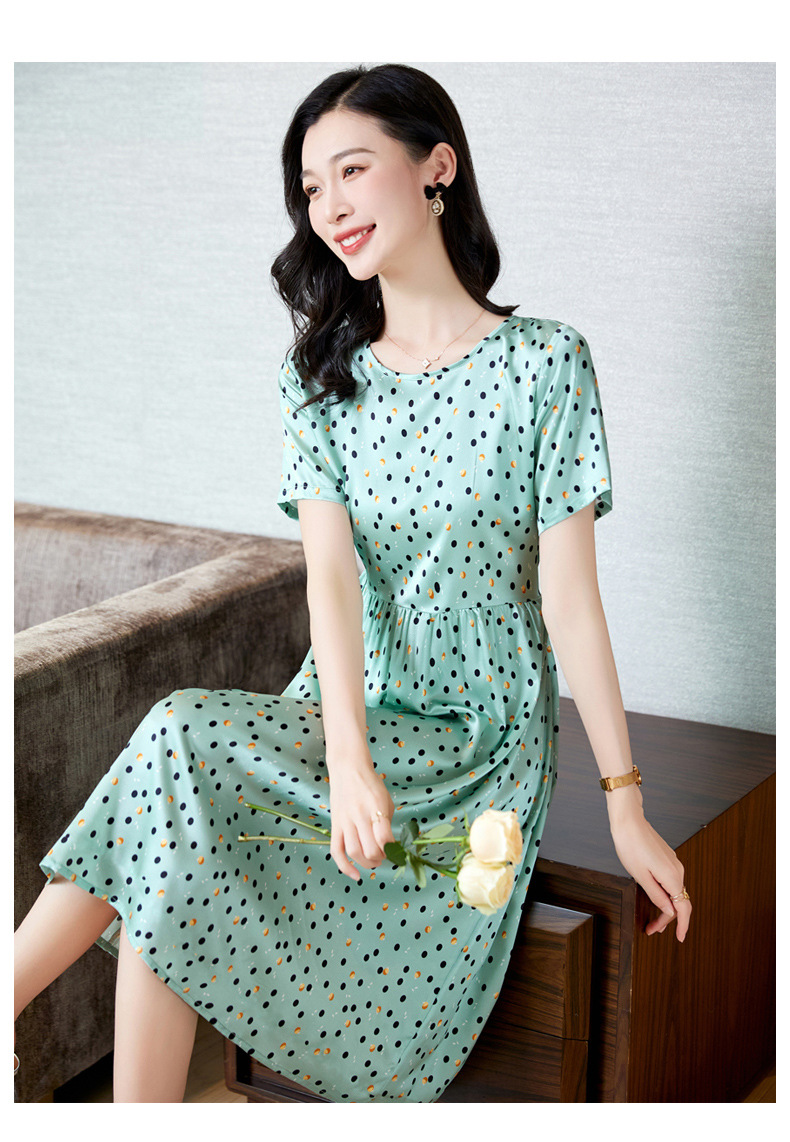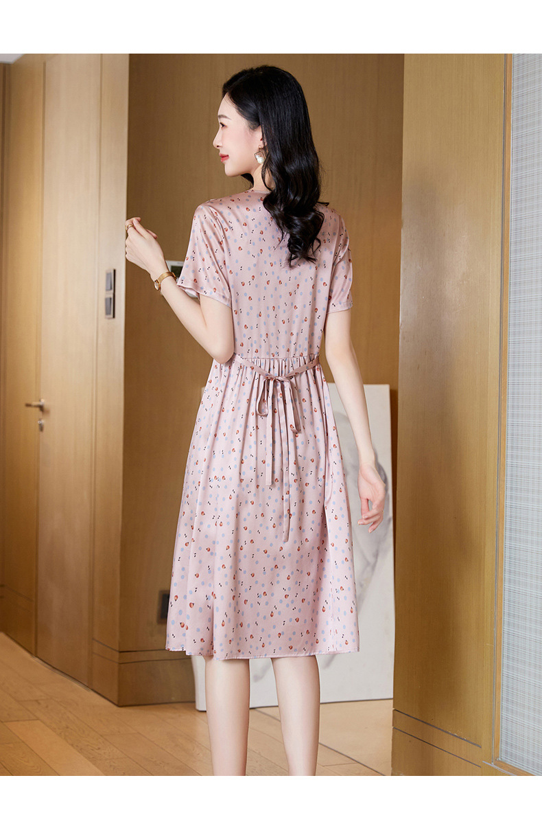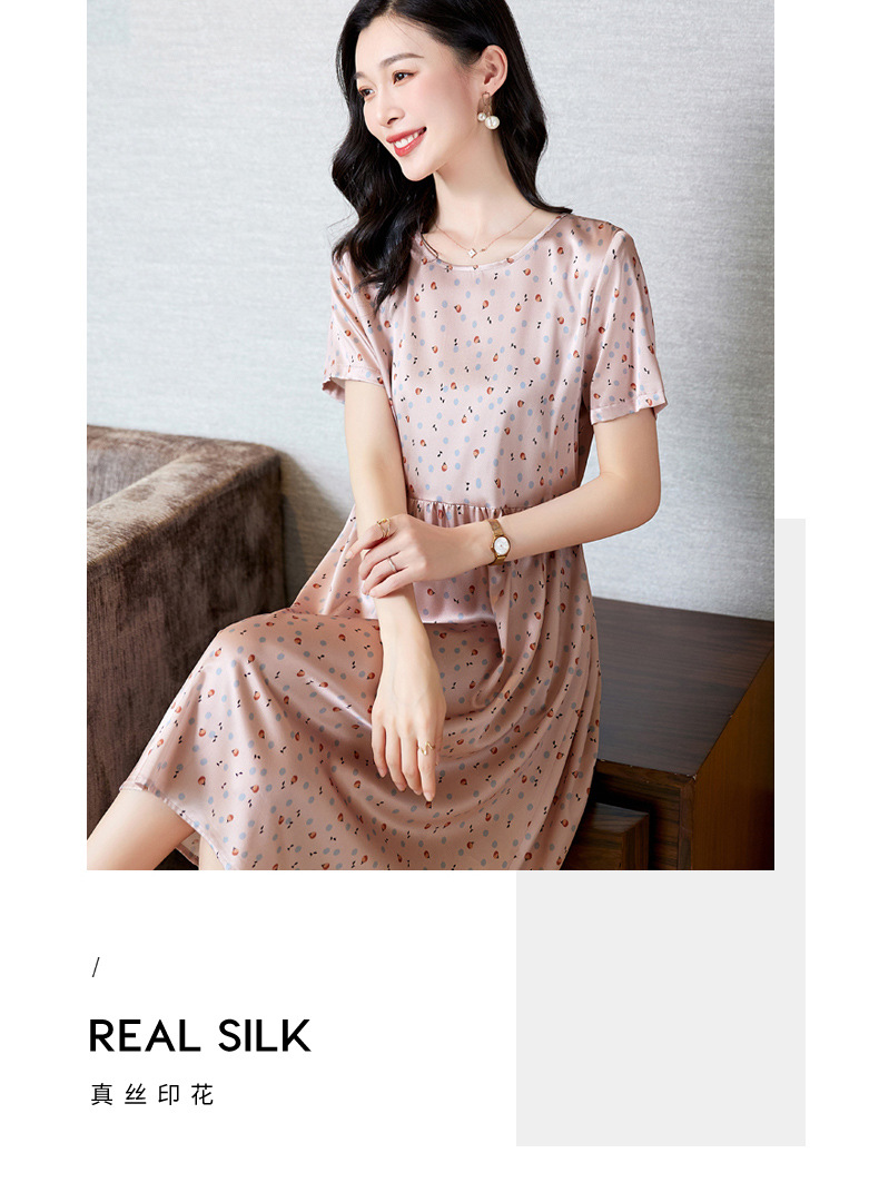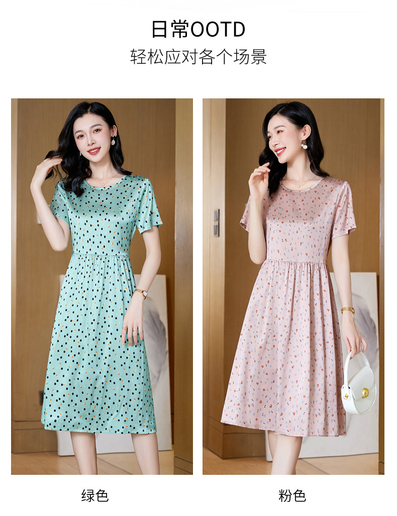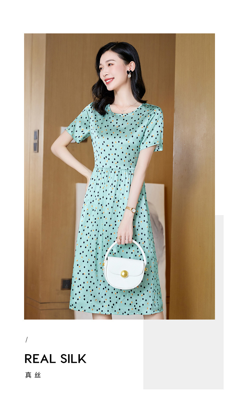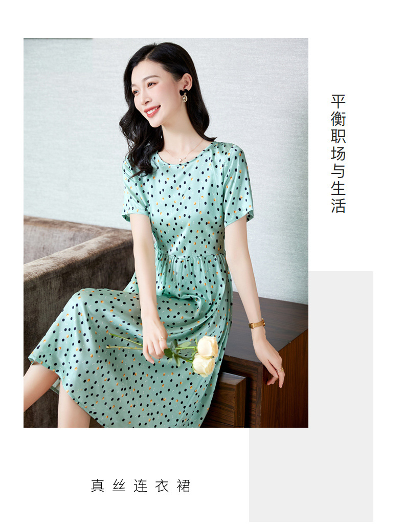 ASE-23058圆领气质时尚优雅知性真丝连衣裙
